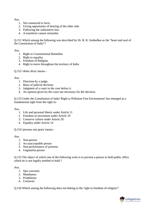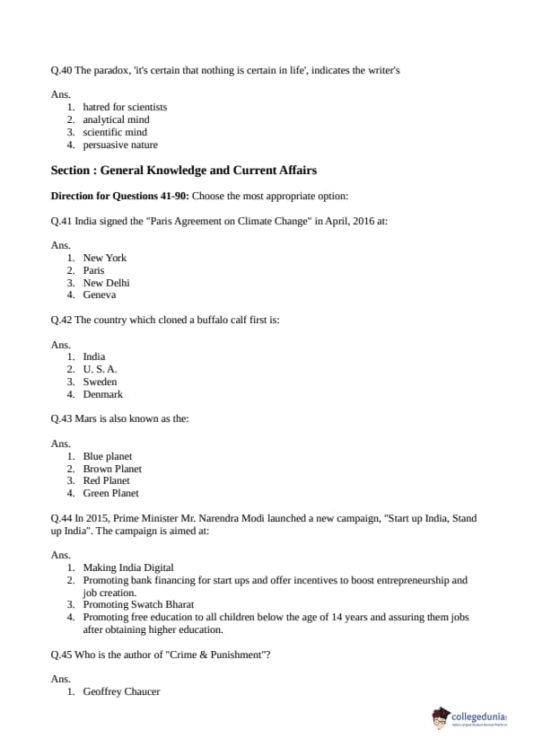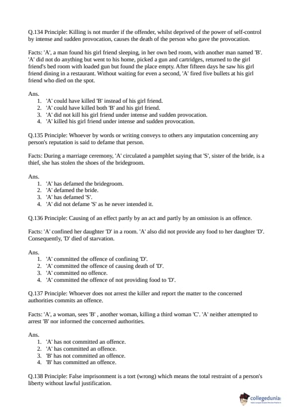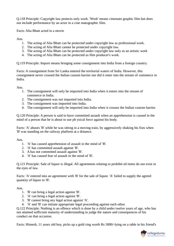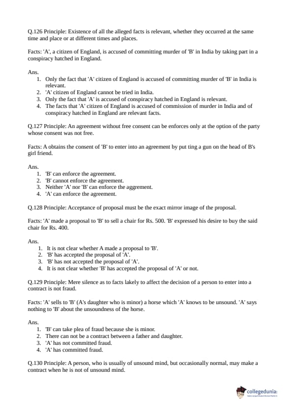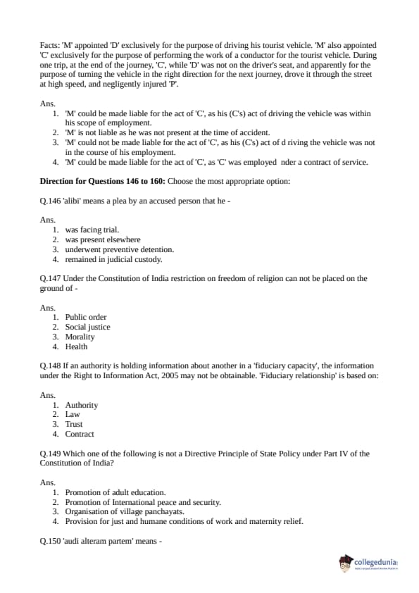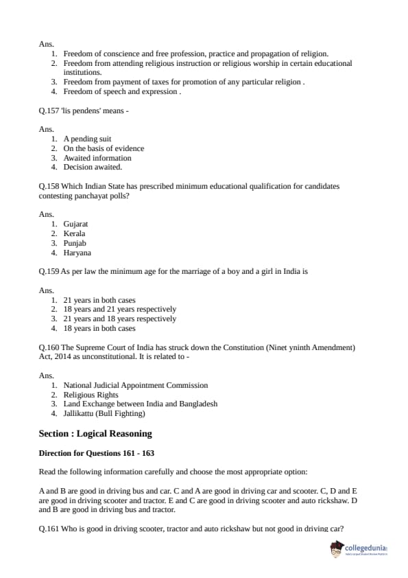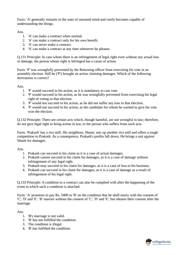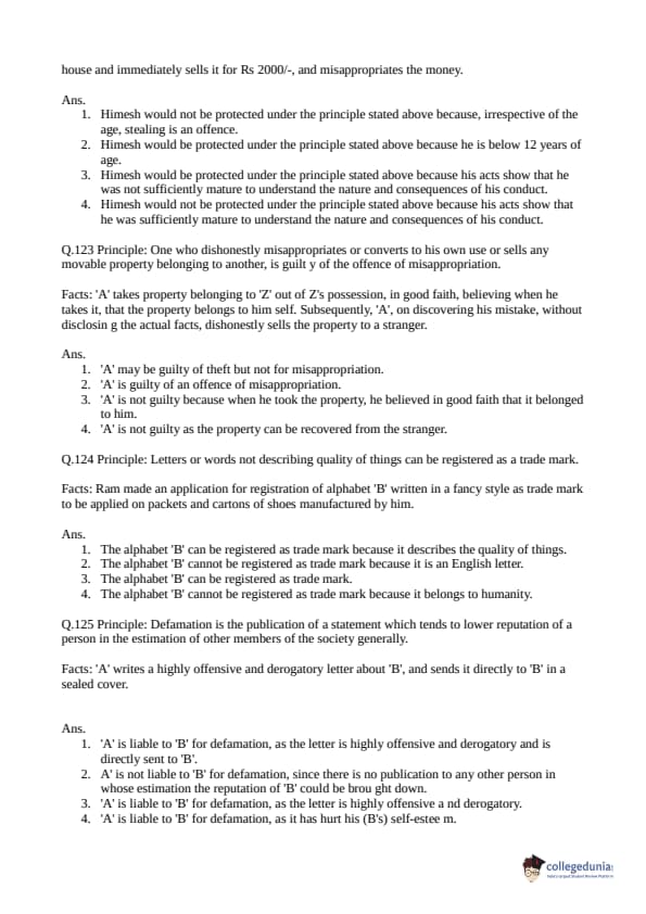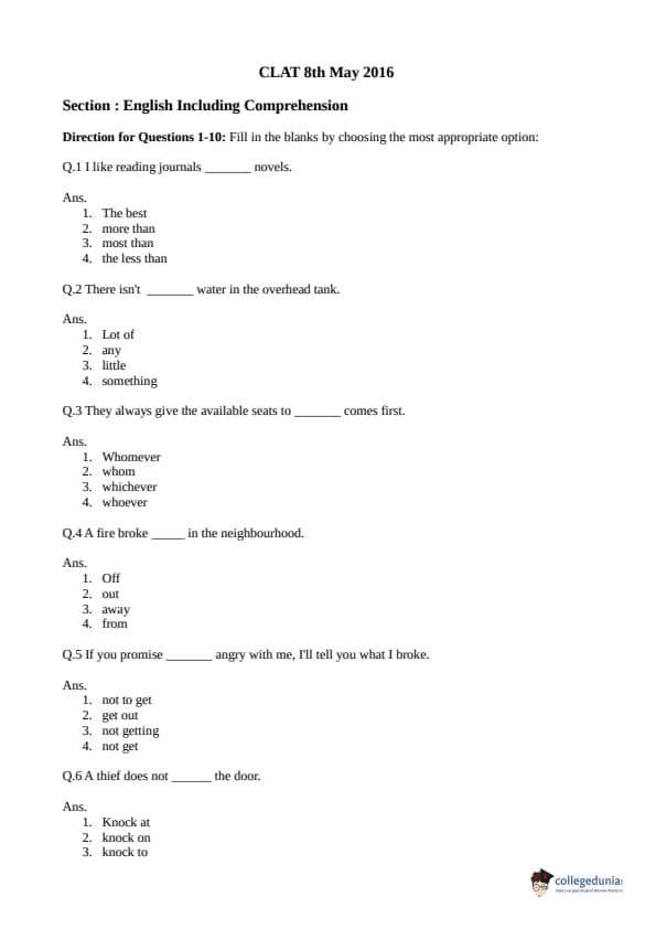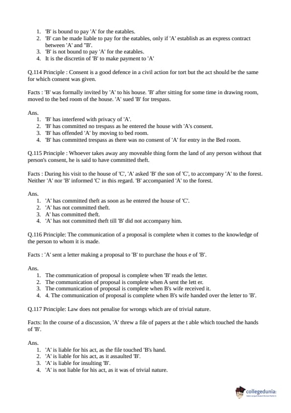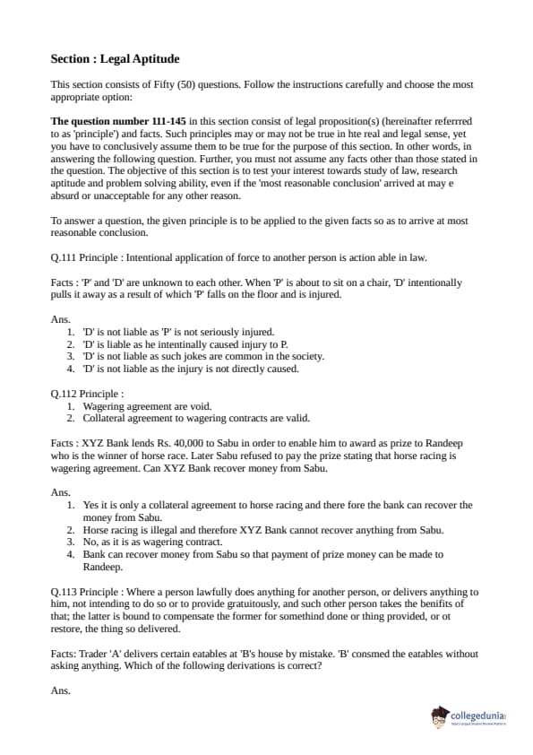 Collegedunia has provided CLAT Previous Year Question paper pdf with answer key in the links given below: