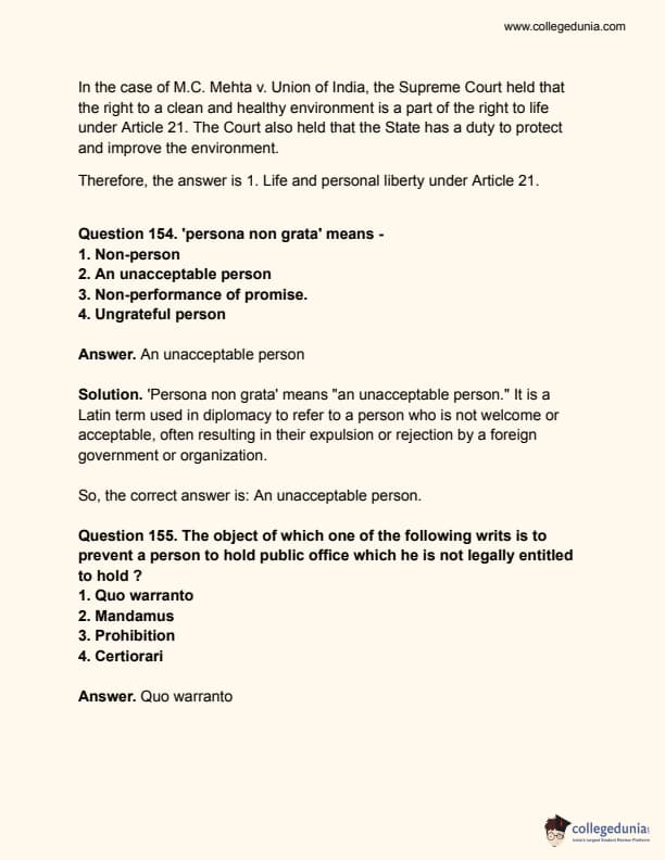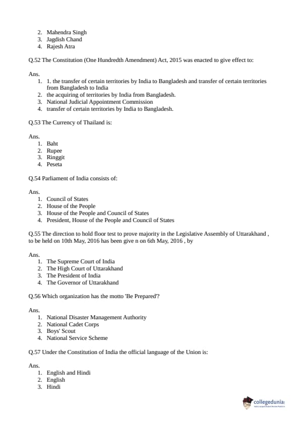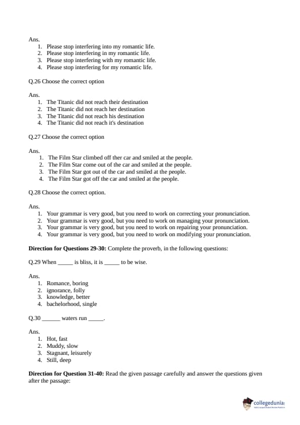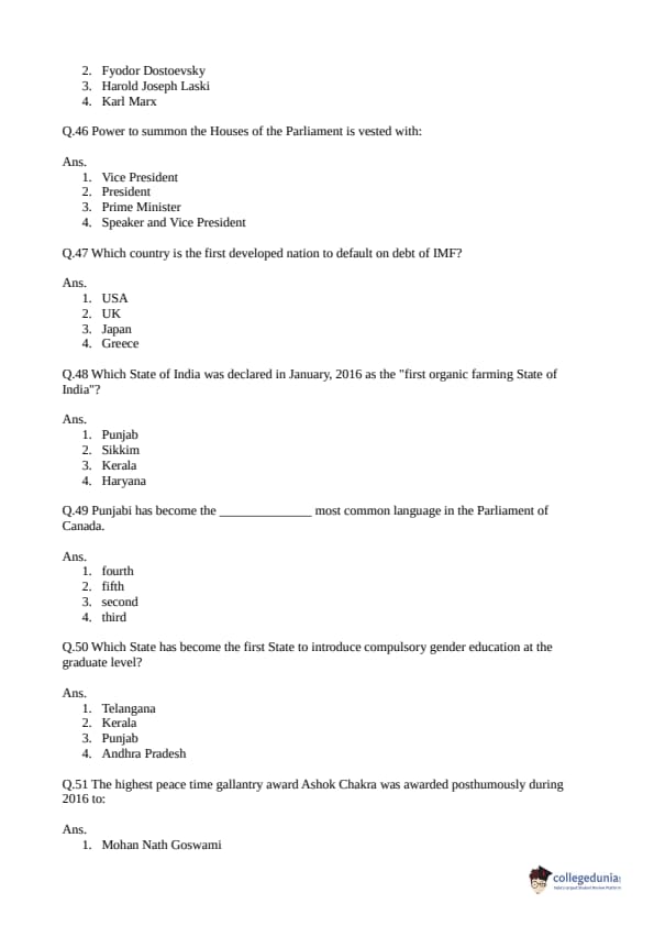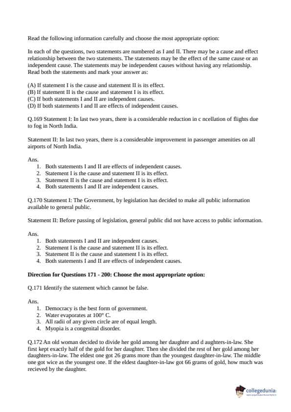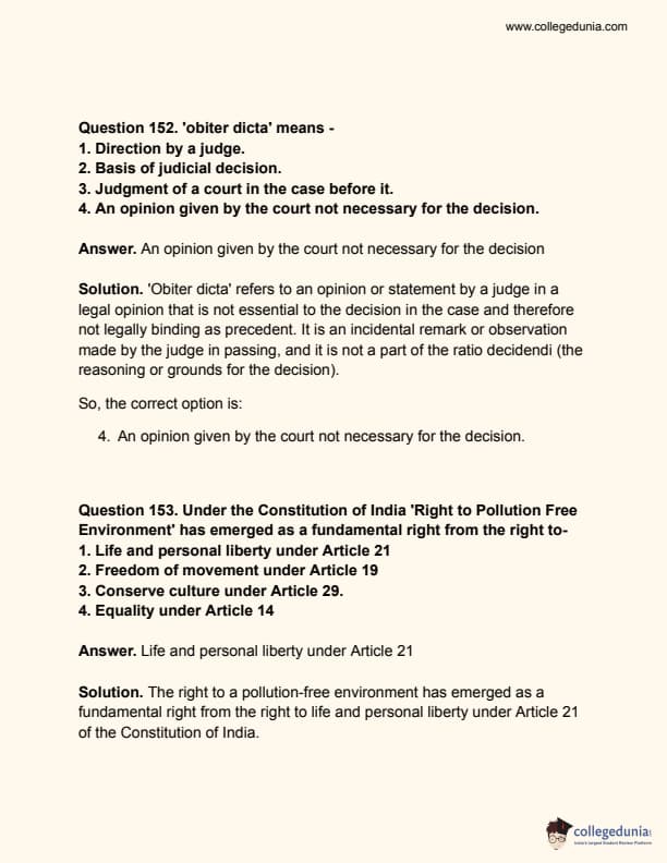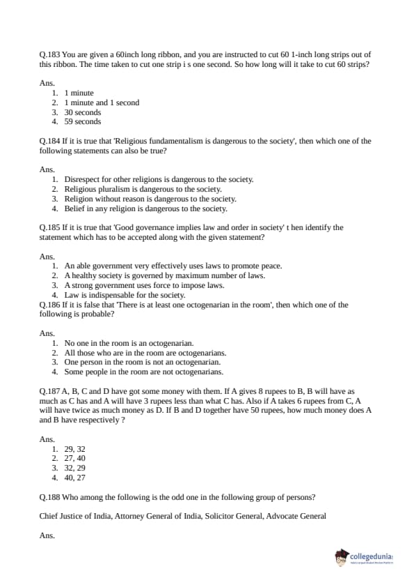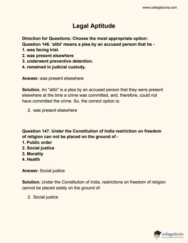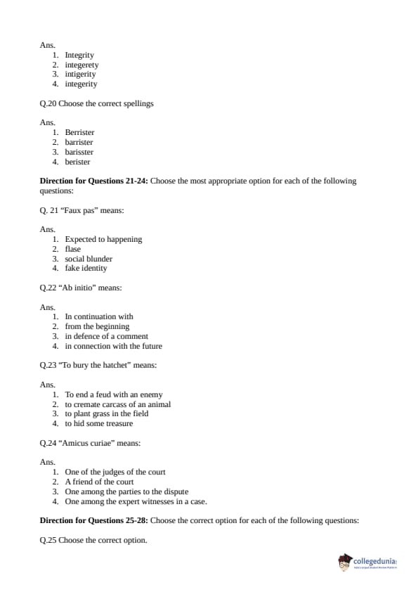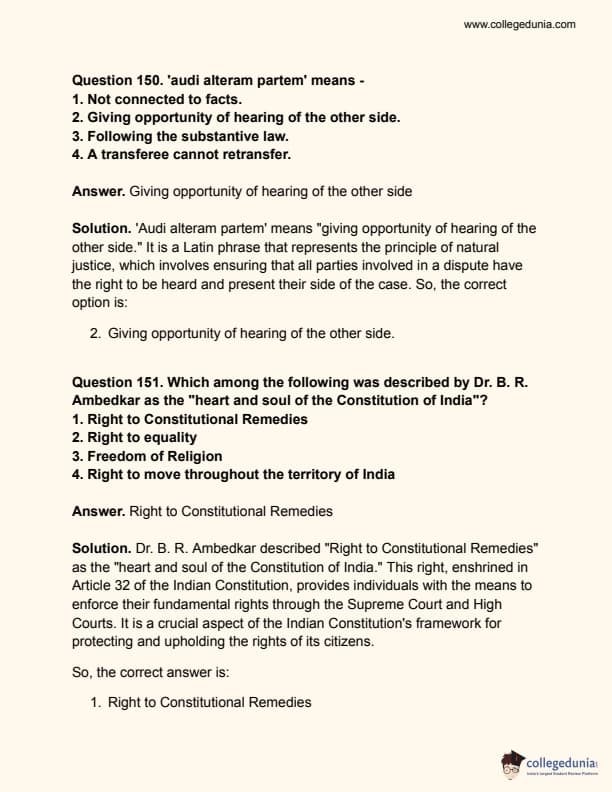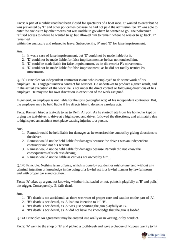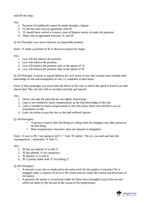Collegedunia has provided CLAT Previous Year Question paper pdf with answer key in the links given below: