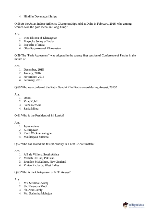 CLAT 2016 Common Question Paper with Answer Key PDF for Afternoon Session
