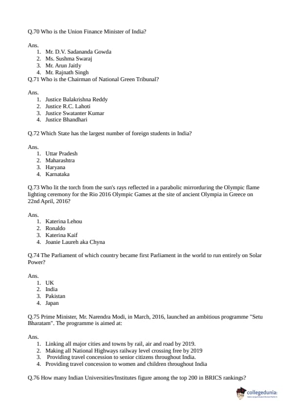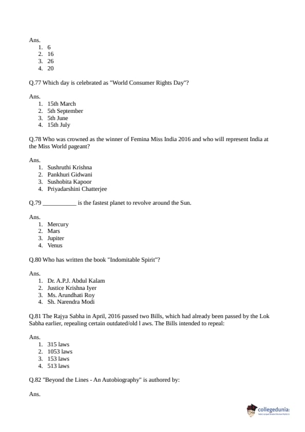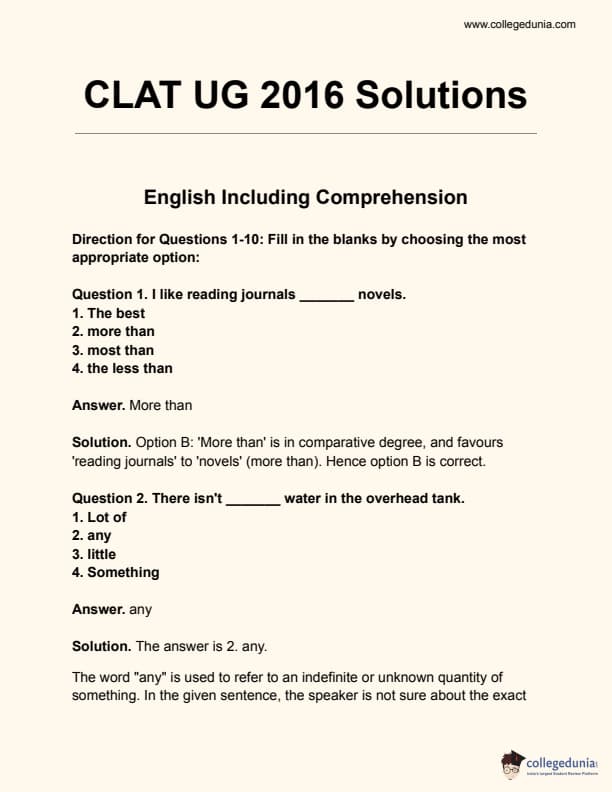 CLAT 2016 Common Question Paper PDF CLAT 2016 Common Solutions PDF