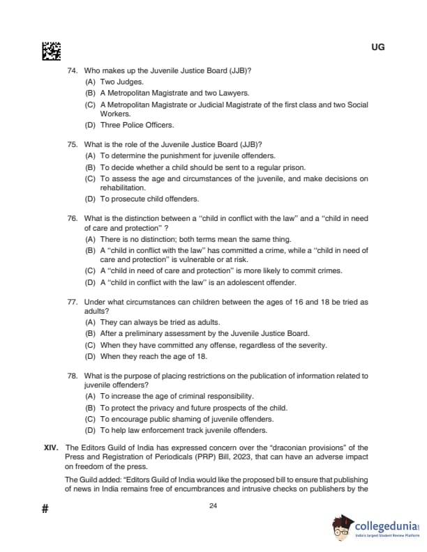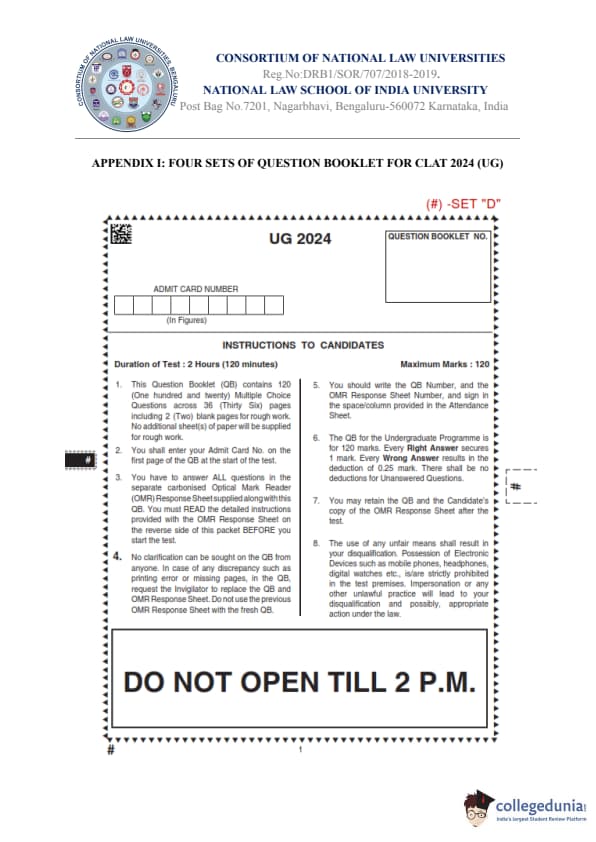 CLAT 2024 UG Question Paper with Solution PDF – Set D