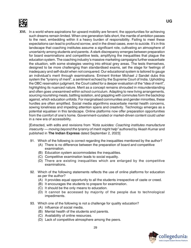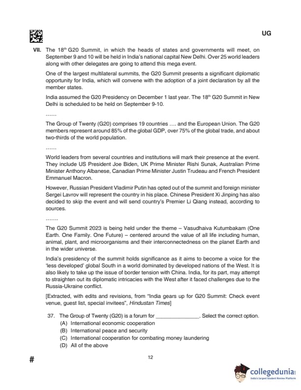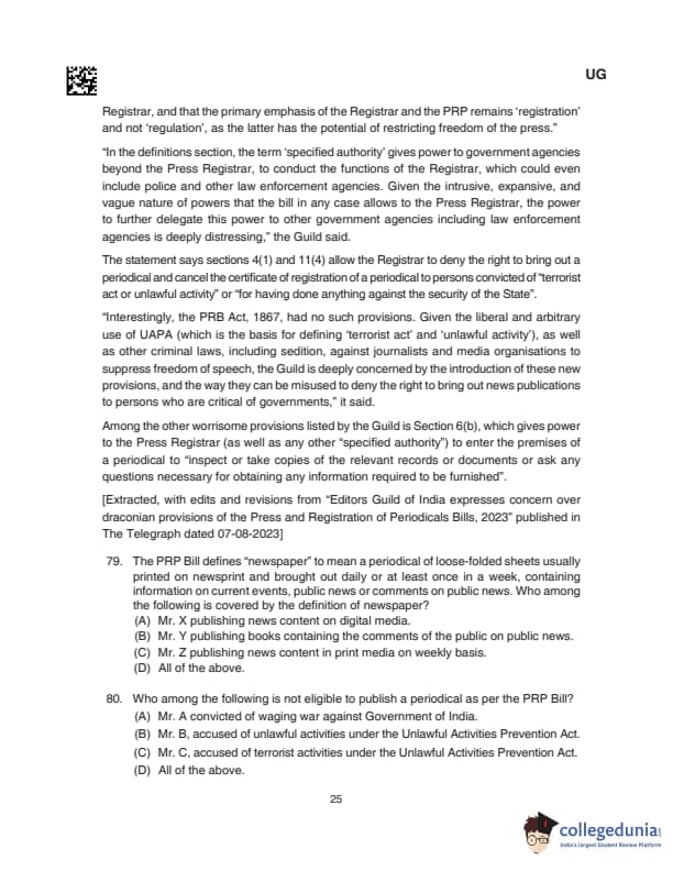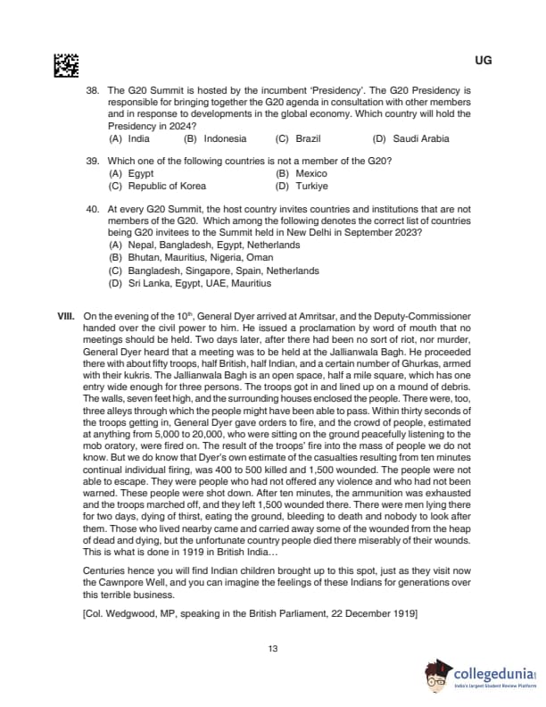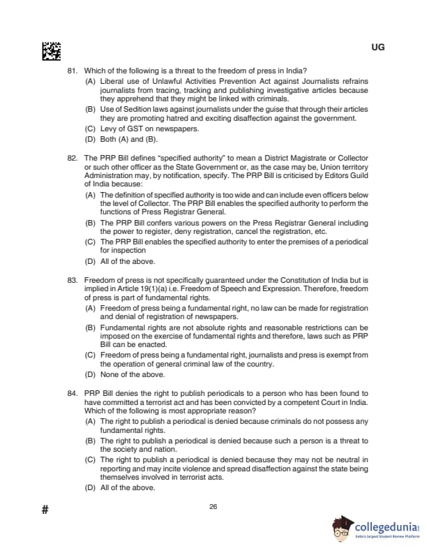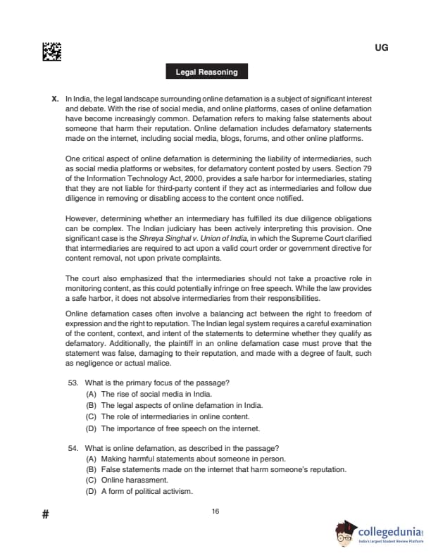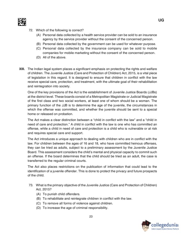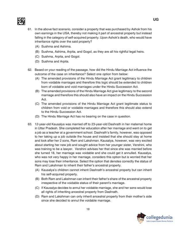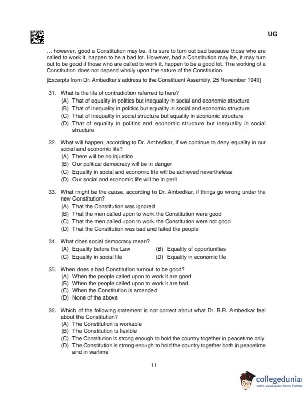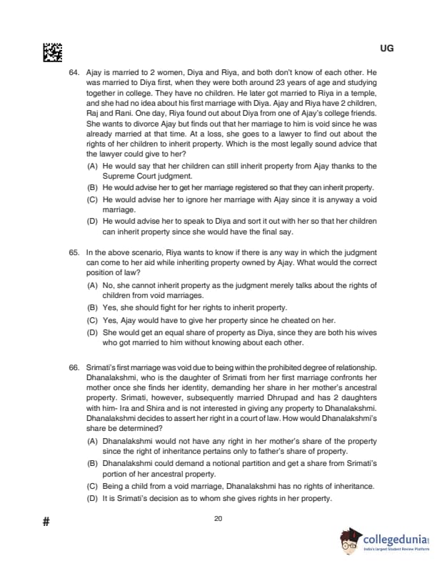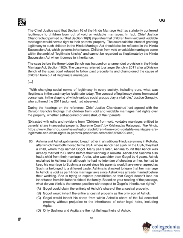 CLAT UG 2024 Questions with Solution (Set D)