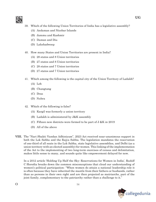 Passage VIII: The "Nari Shakti Vandan Adhiniyam", 2023 Act received near-unanimous support in both the Lok Sabha and the Rajya Sabha. The legislation mandates the reservation of one-third of all seats in the Lok Sabha, state legislative assemblies, and Delhi (as a of one-third of all seats in the Lok Sabha, state legislative assemblies, and Delhi (as a union territory with an elected assembly) for women. This linking of the implementation of the Act to the implementing of two long-term exercises of census and delimitation, makes little sense to many, and sounds quite like empowerment delayed for now.