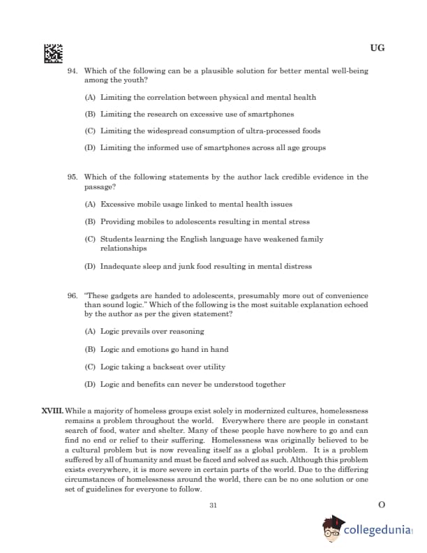 Passage XVIII: While a majority of homeless groups exist solely in modernized cultures, homelessness remains a problem throughout the world. Everywhere there are people in constant search of food, water and shelter. Many of these people have nowhere to go and can find no end or relief to their suffering. Homelessness was originally believed to be a cultural problem but is now revealing itself as a global problem. It is a problem suffered by all of humanity and must be faced and solved as such. Although this problem exists everywhere, it is more severe in certain parts of the world. Due to the differing circumstances of homelessness around the world, there can be no one solution or one set of guidelines for everyone to follow. Even the United States constantly struggles with homelessness, despite being one of the wealthiest countries in the world. According to a 2005 survey by the United Nations, 1.6 billion people lack adequate housing. The causes vary depending on the place and person. Common reasons include a lack of affordable housing, poverty, a lack of mental health services, and more. Homelessness is rooted in systemic failures that fail to protect those who are most vulnerable. Approximately 580,000 people experience homelessness on any given night in the United States, as stated by the Housing and Urban Development (HUD) Department of the United States. The number of individuals experiencing homelessness varies by region, with urban areas experiencing higher rates of homelessness compared to rural areas. The COVID-19 pandemic has exacerbated homelessness and housing insecurity, leading to increased rates of eviction, unemployment, and housing instability. Using social distancing measures to curb the virus’s transmission has presented difficulties for homeless shelters and service providers in maintaining their capacity. The economic fallout from the pandemic has further strained resources and support systems for individuals and families experiencing homelessness. (Extracted with revisions and modifications from an article ‘The impact of COVID-19 and housing insecurity on lower-income women’ published in Journal of Social Issues, October 3, 2022)