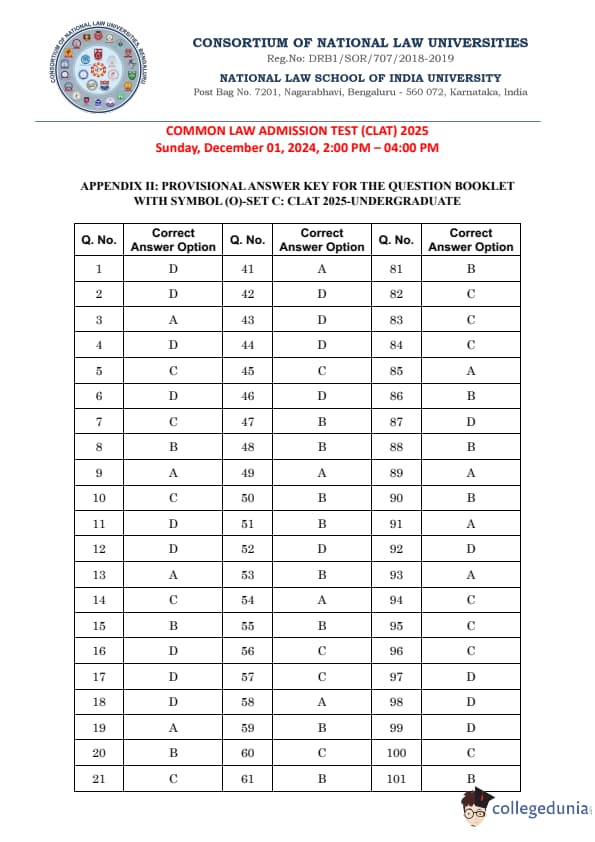 | CLAT 2025 Question Paper with Answer Key PDF (Set C) | Check Solution |