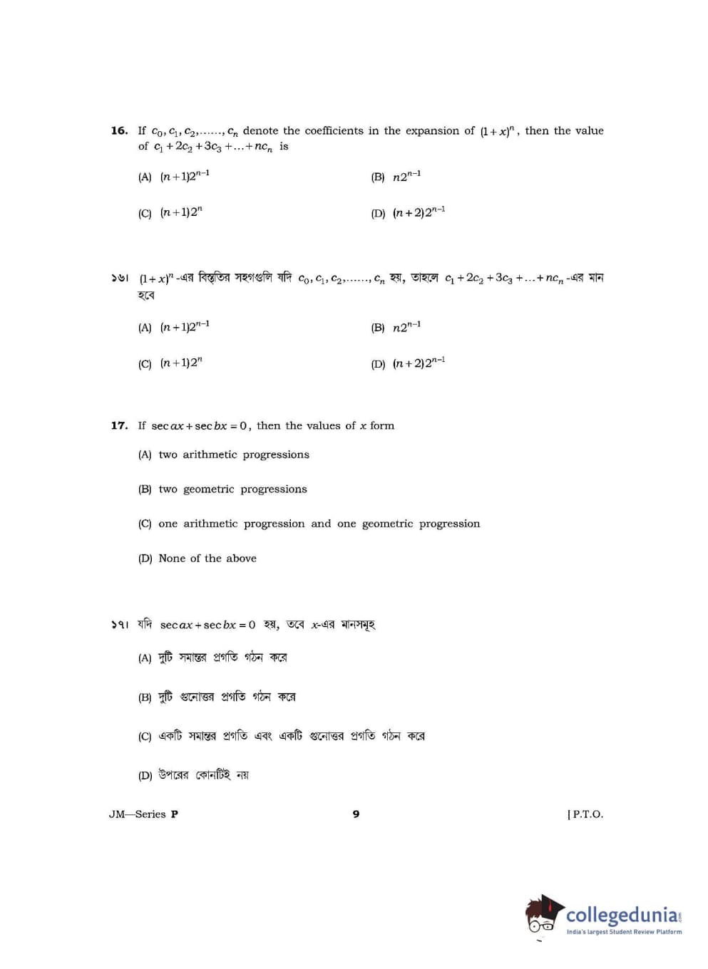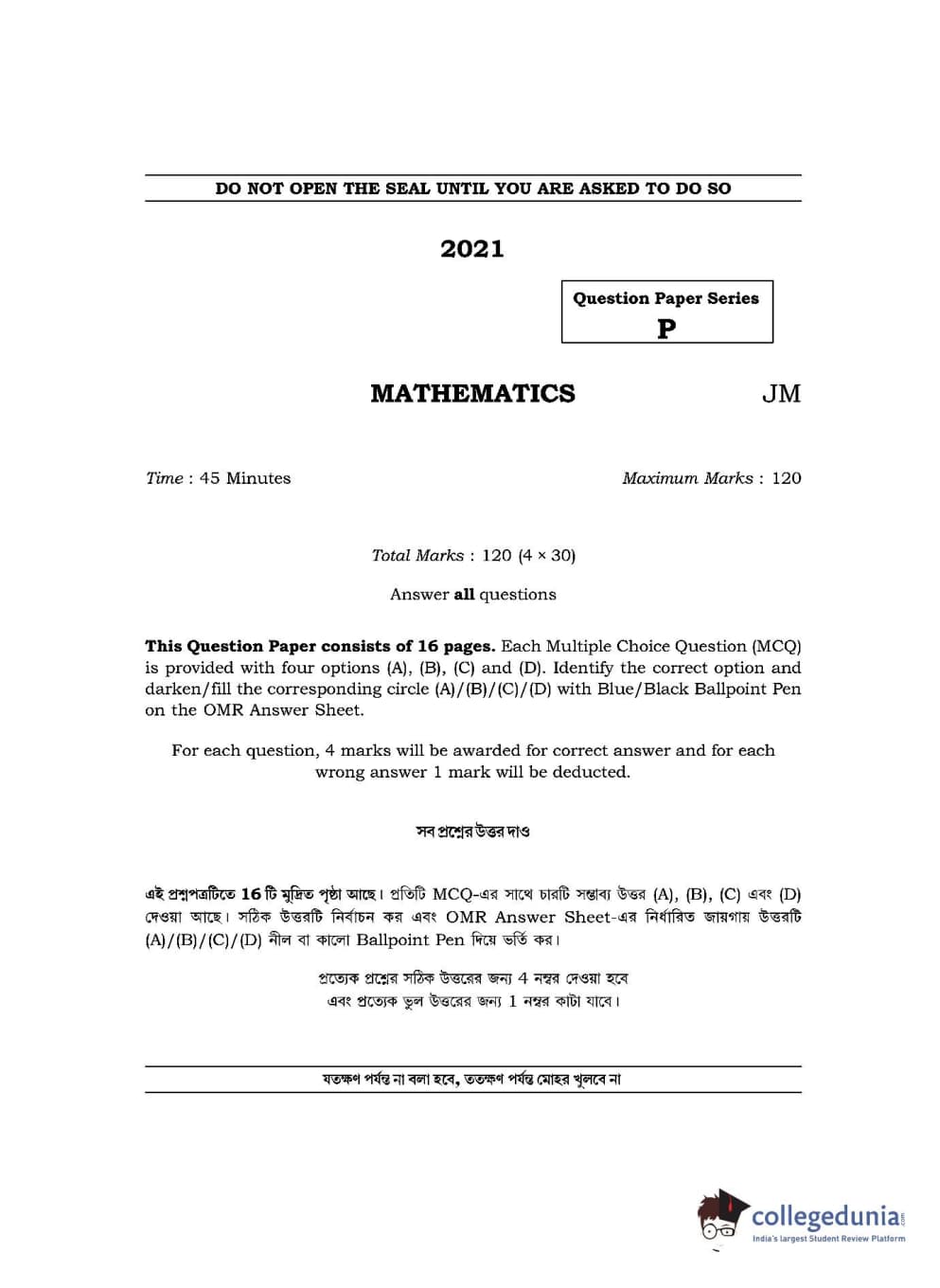 Tripura JEE 2021 Mathematics Question Paper with Answer Key PDFs