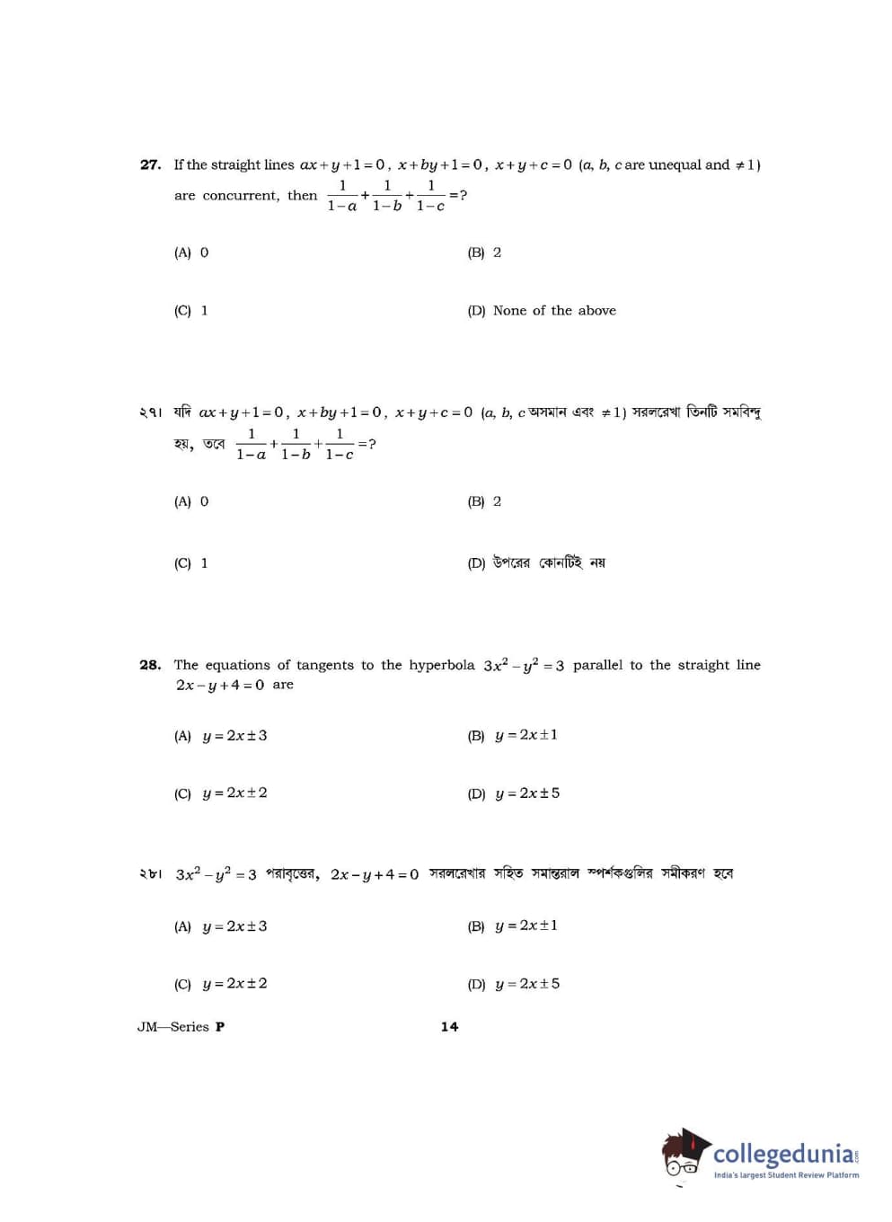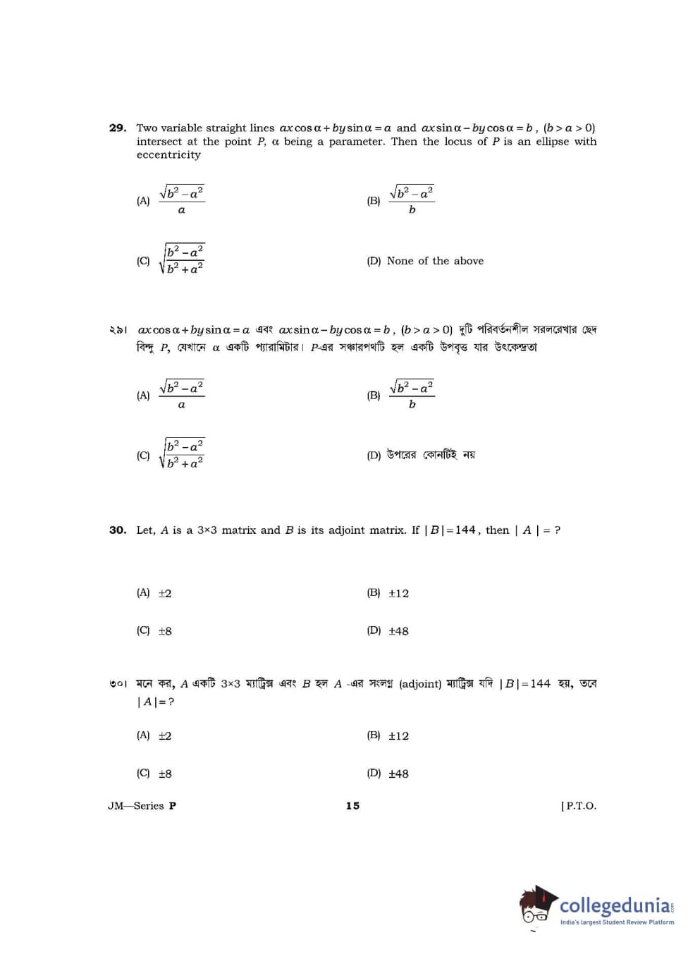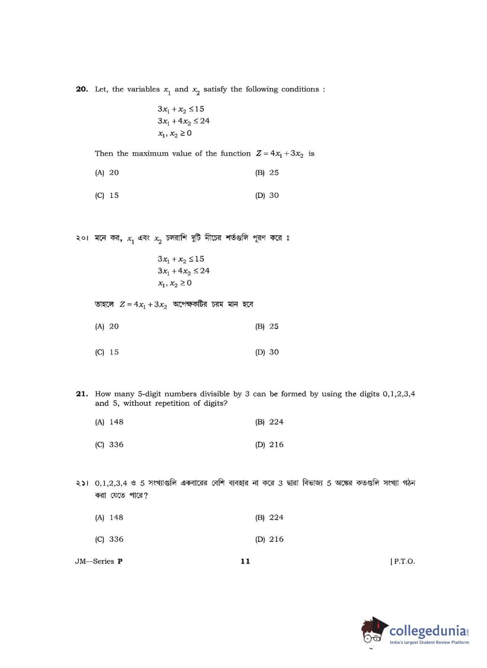 Tripura JEE 2021 Mathematics Question paper with answer key pdf conducted on August 24, 2021 is available for download. The exam was successfully organized by Tripura Board of Joint Entrance Examination (TBJEE). The question paper comprised a total of 30 questions.