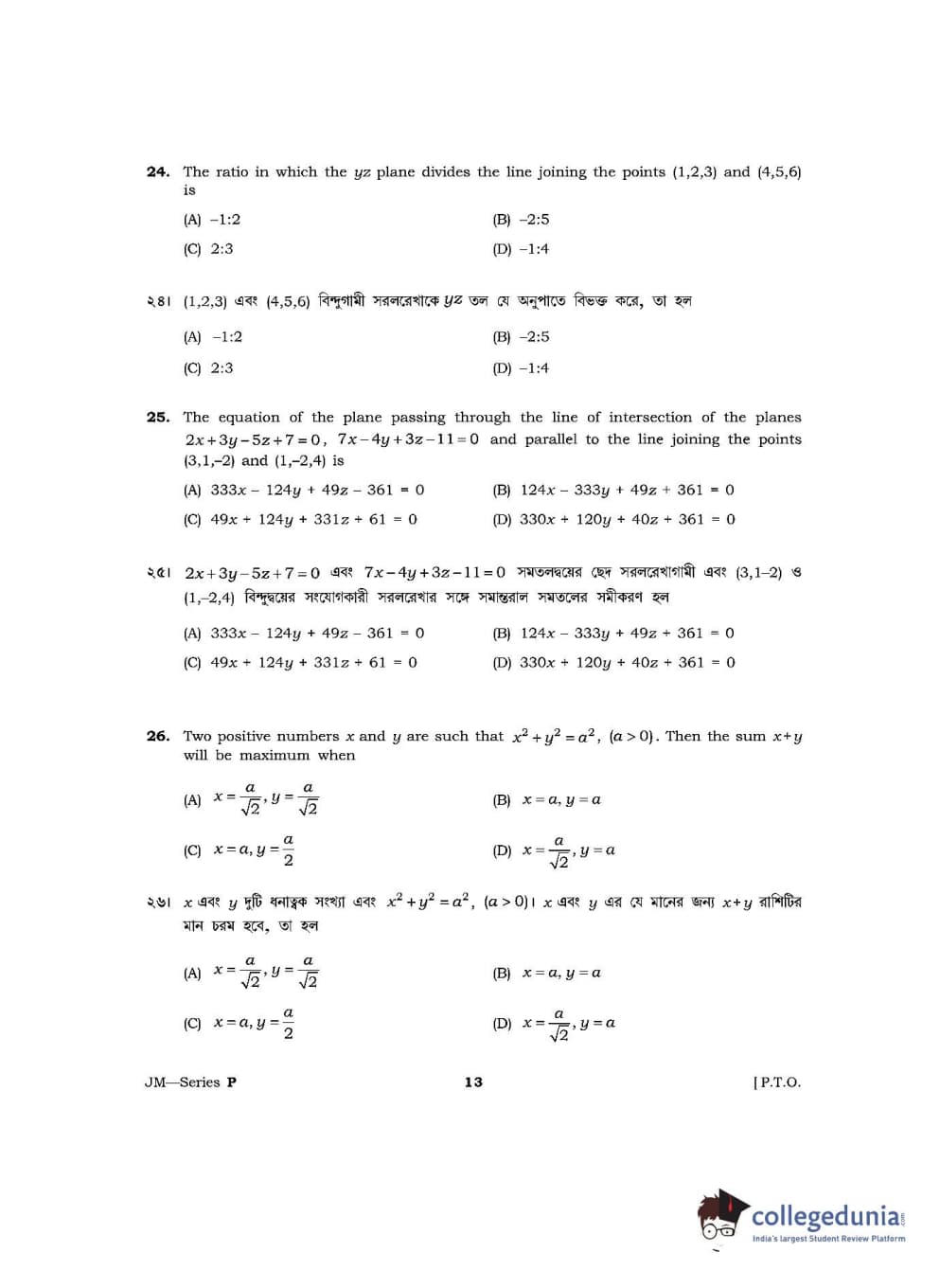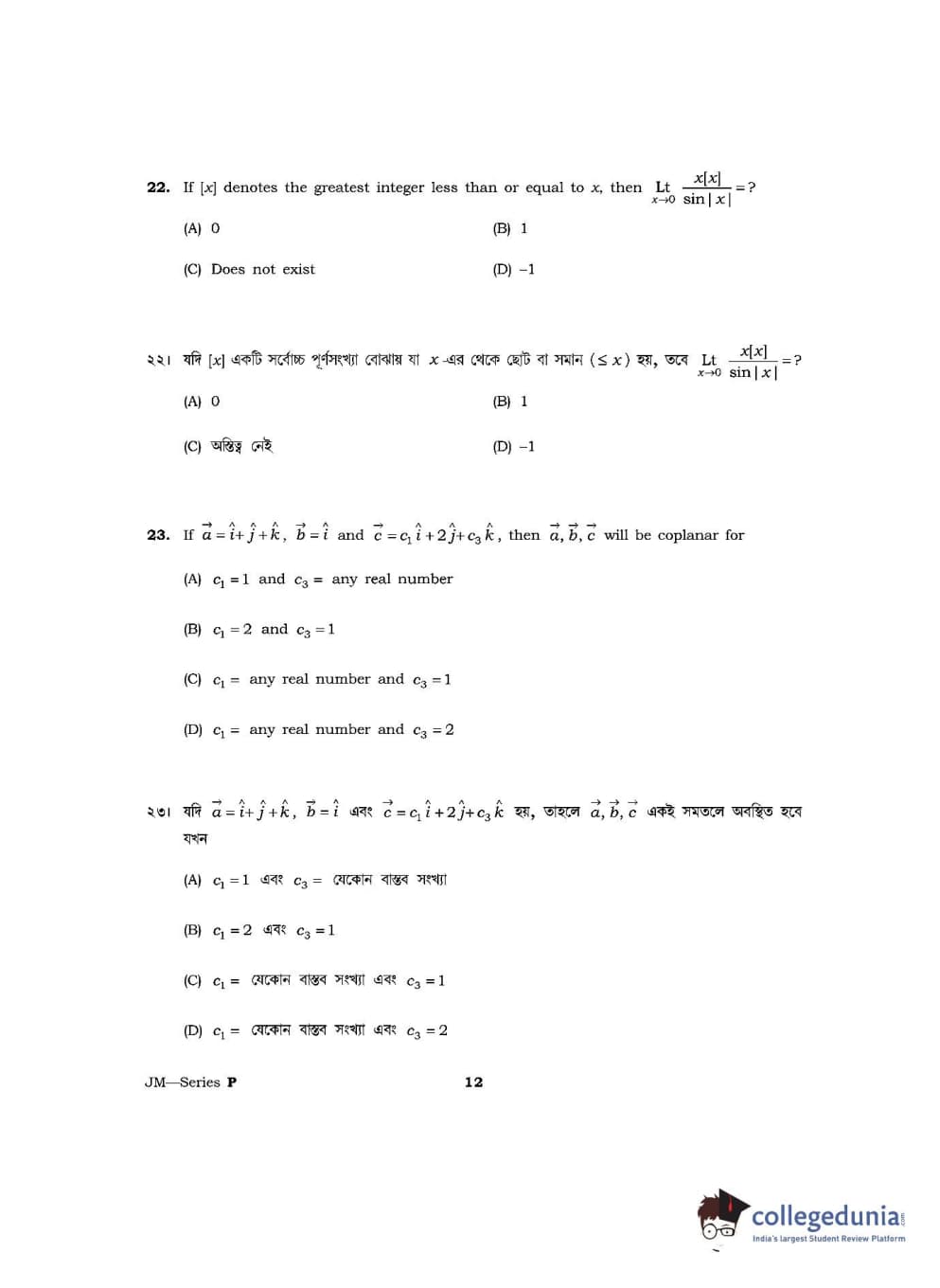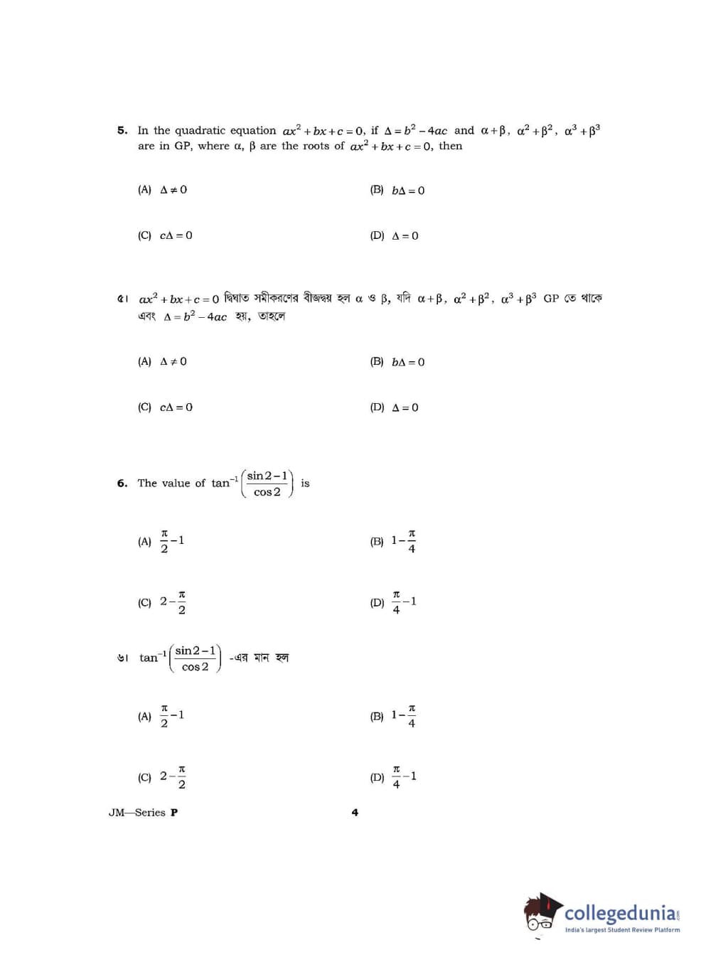 Tripura JEE 2021 Mathematics Question paper with answer key pdf conducted on August 24, 2021 is available for download. The exam was successfully organized by Tripura Board of Joint Entrance Examination (TBJEE). The question paper comprised a total of 30 questions.