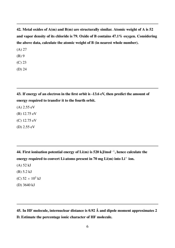 | Tripura JEE 2024 Chemistry Question Paper with Answer Key | Check Solution |