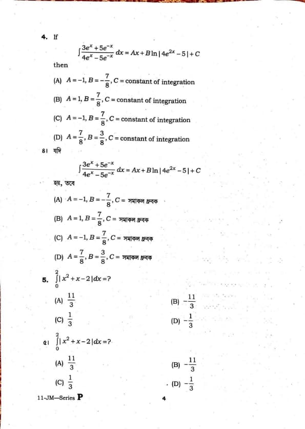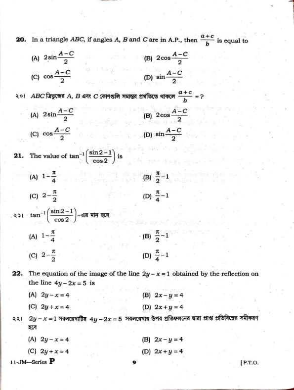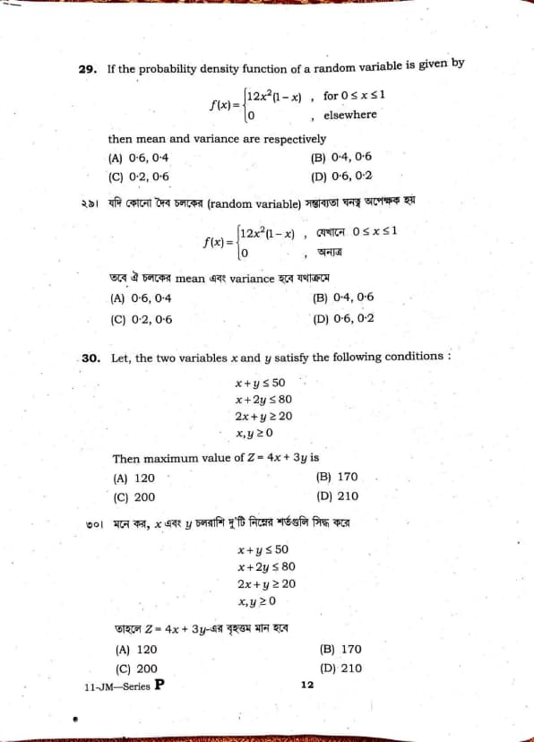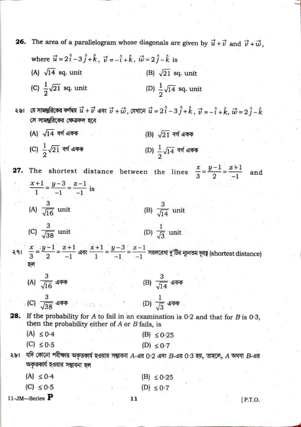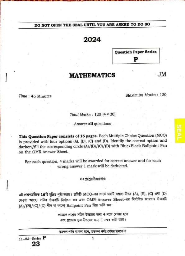Tripura JEE 2024 Mathematics Set P Question paper with answer key pdf is available for download. The exam was successfully organized by Tripura Board of Joint Entrance Examination (TBJEE). The question paper comprised a total of 30 questions. There is Multiple Choice Questions (MCQs) in exam.Each question will carry 4 (four) marks, i.e. total marks will be of 120 (30×4) for each subject.