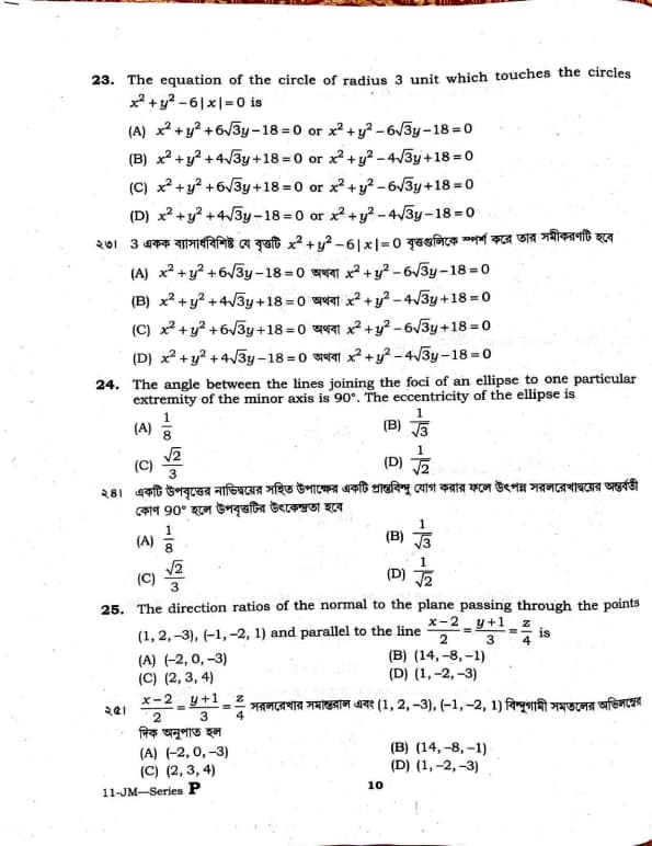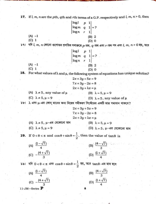 Tripura JEE 2024 Mathematics Set P Question Paper with Answer Key PDFs