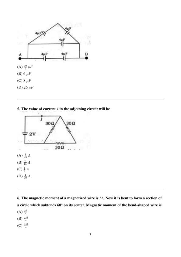 The magnetic moment of a magnetized wire is \( M \). Now it is bent to form a section of a circle which subtends 60° on its center. Magnetic moment of the bend-shaped wire is