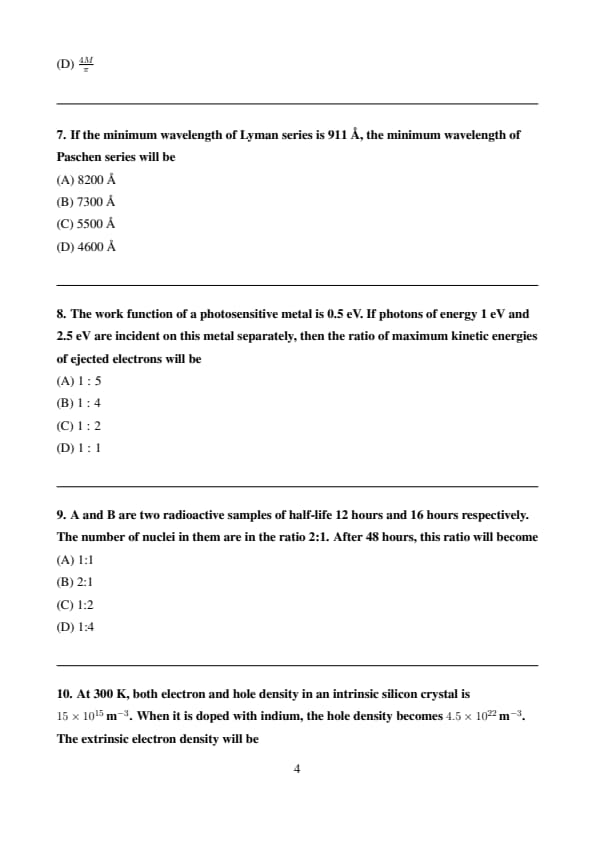 If the minimum wavelength of Lyman series is 911 Å, the minimum wavelength of Paschen series will be