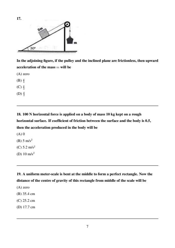 In the adjoining figure, if the pulley and the inclined plane are frictionless, then upward acceleration of the mass \( m \) will be