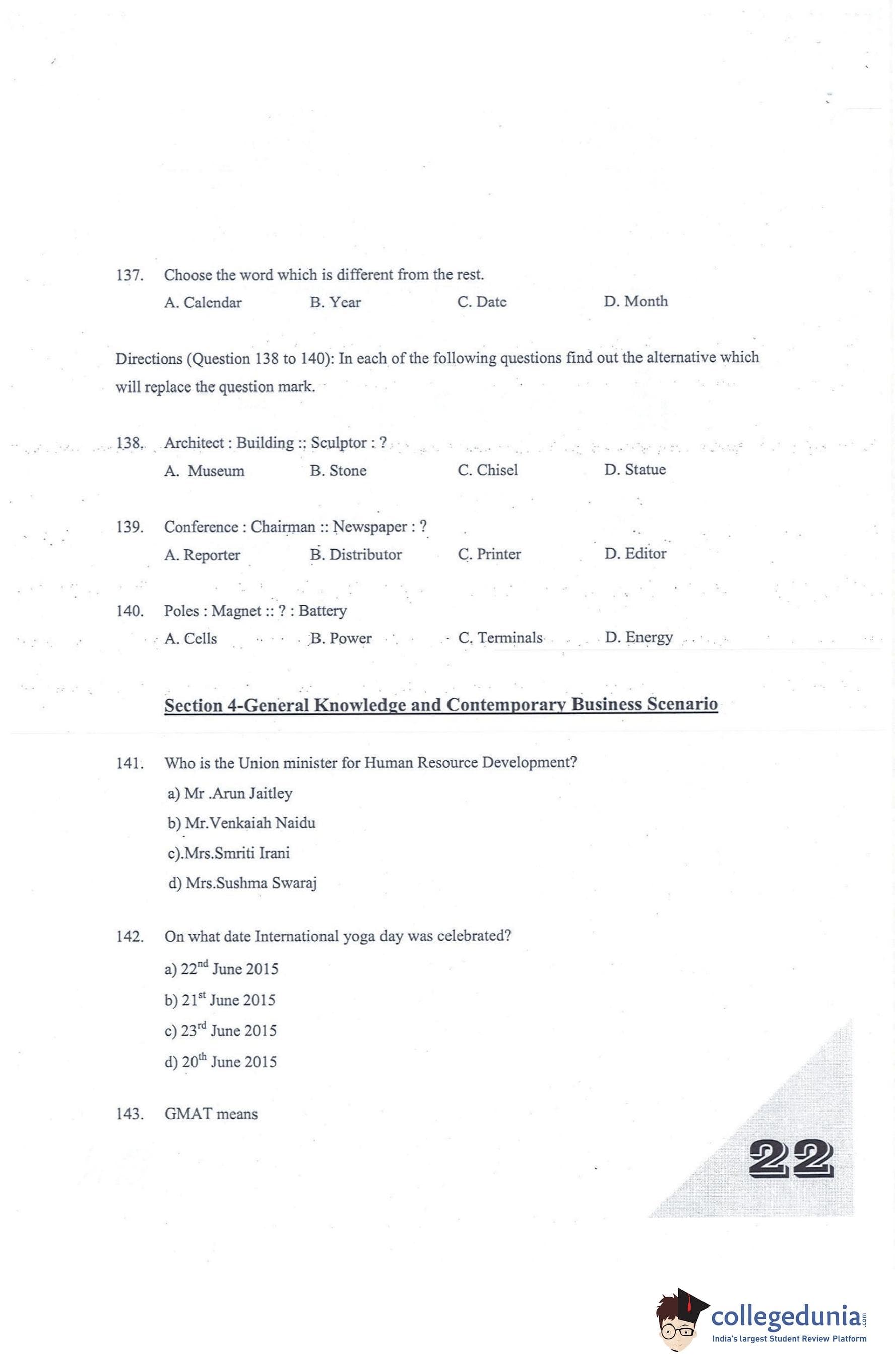 KMAT Kerala 2015 Question Paper with Answer Key PDF