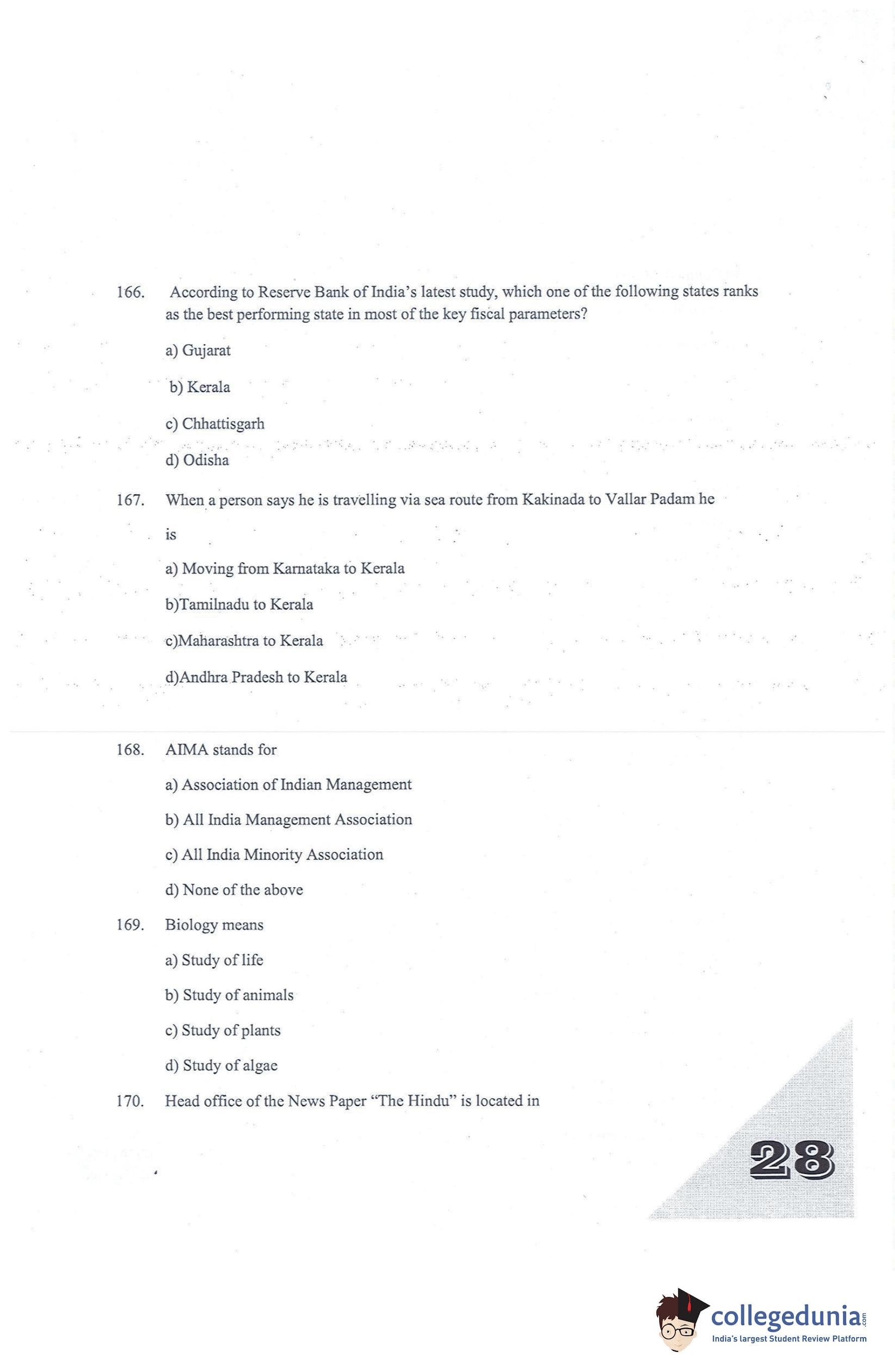 KMAT Kerala 2015 Question Paper with Answer Key pdf is available for download. The exam was conducted by Kerala University of Fisheries and Ocean Studies (KUFOS) on July 26, 2015. The question paper comprised a total of 180 questions.