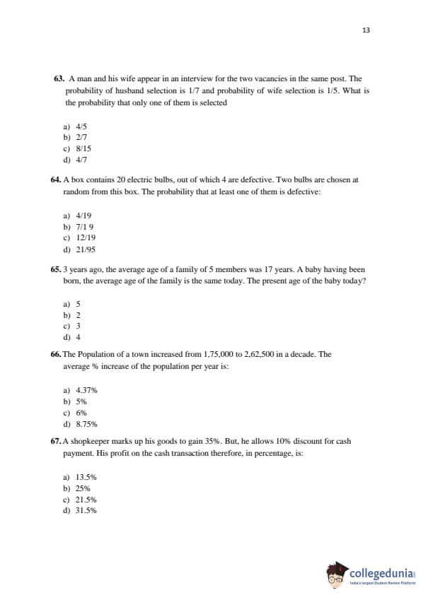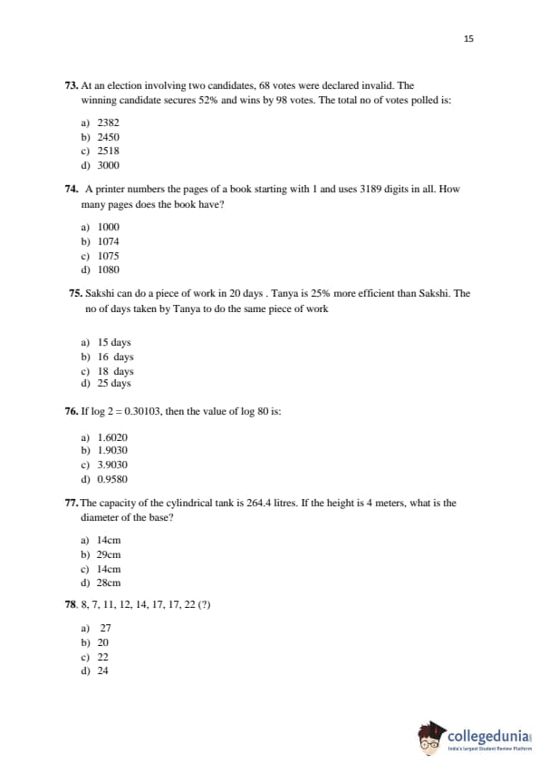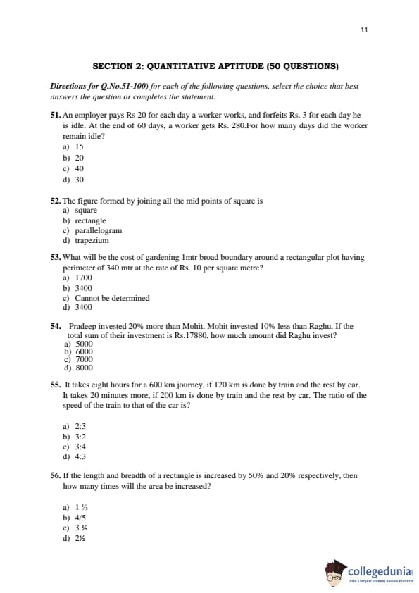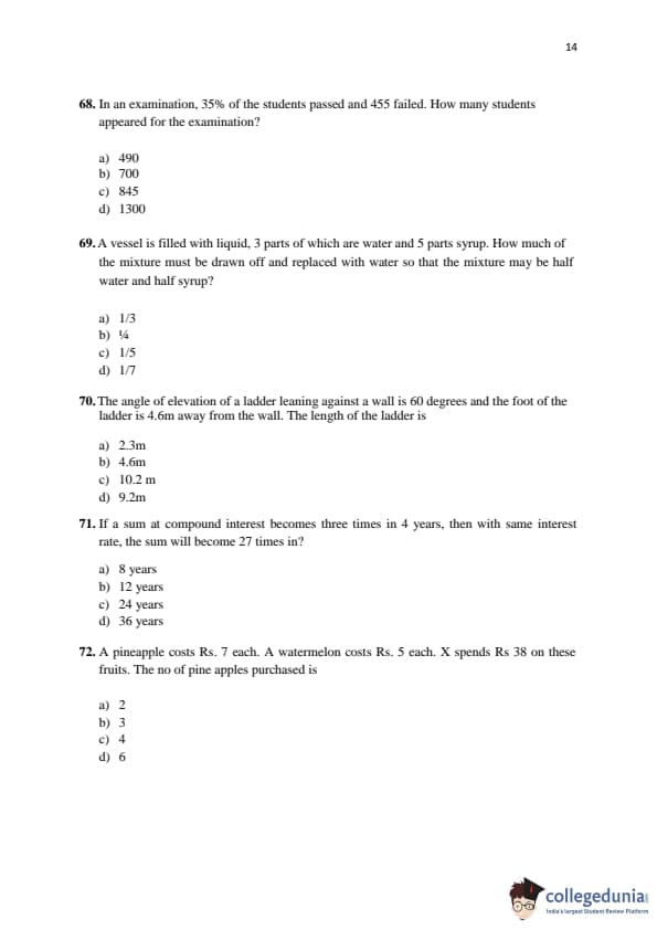 KMAT Kerala 2016 Quantitative Aptitude Question paper with answer key pdf conducted on April 3 is available for download. The exam was successfully organized by Kannur University. The question paper comprised a total of 50 questions.