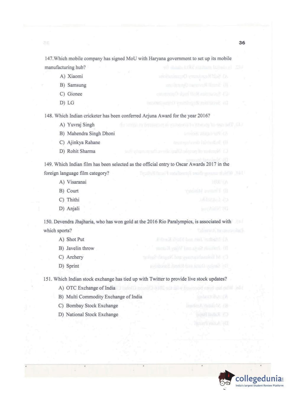 | KMAT Kerala 2017 General Knowledge Question Paper PDF | KMAT Kerala 2017 General Knowledge Answer Key PDF |