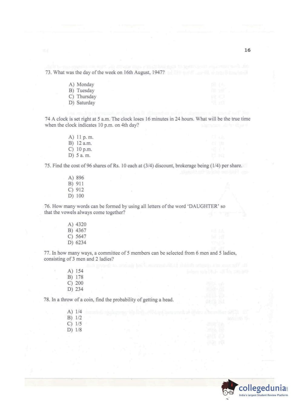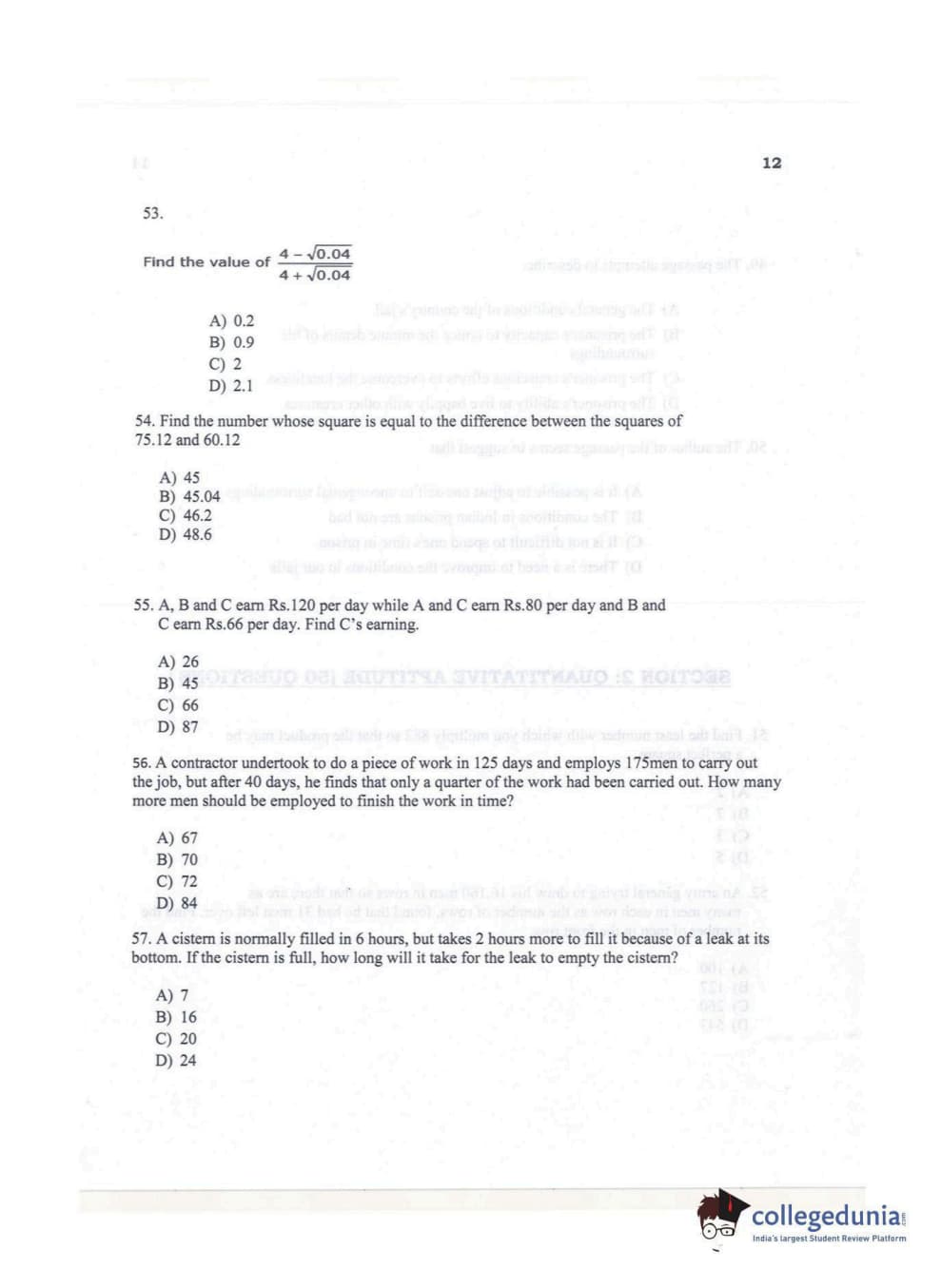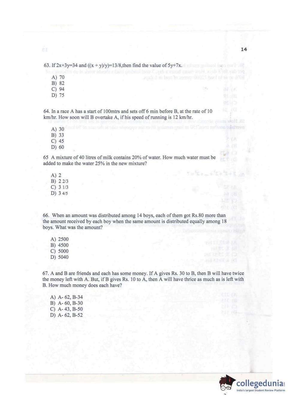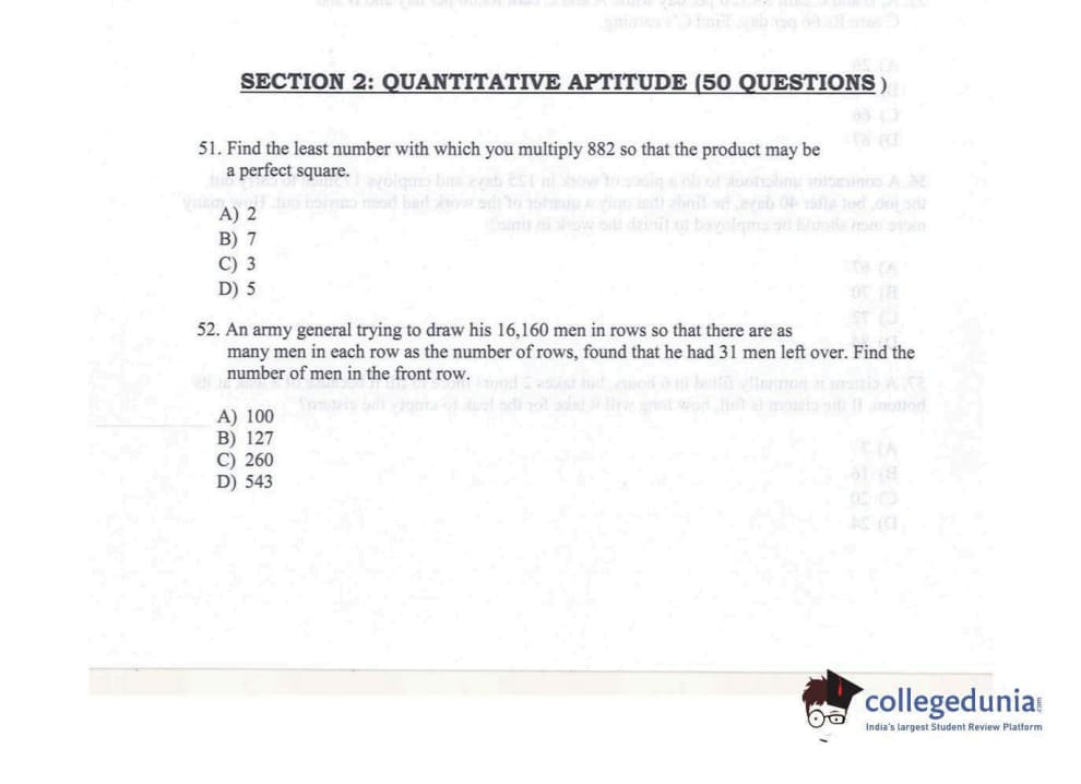 KMAT Kerala 2017 Quantitative Aptitude Question paper with answer key pdf conducted on November 6 is available for download. The exam was successfully organized by Mahatma Gandhi University. The question paper comprised a total of 50 questions.