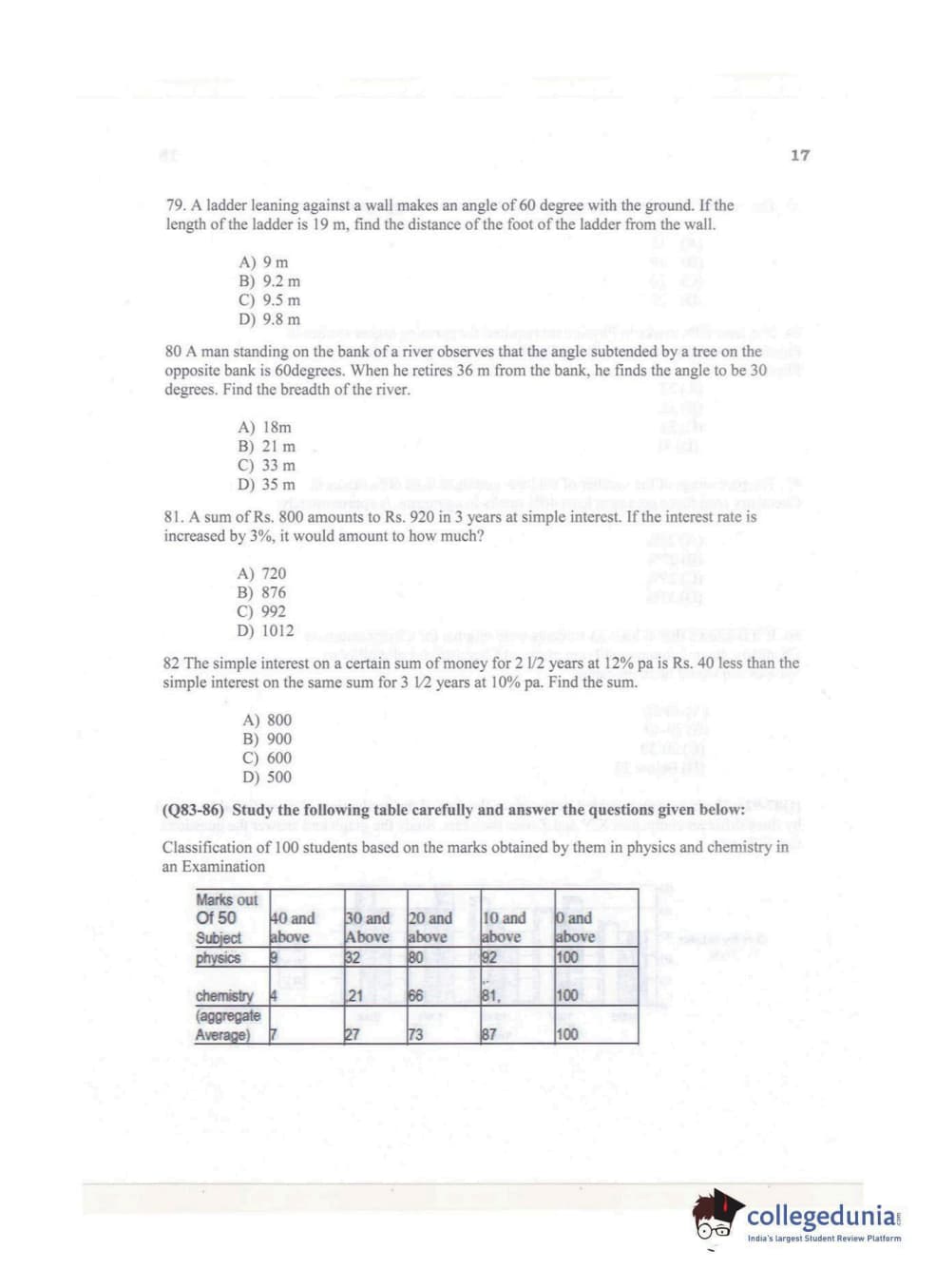 KMAT Kerala 2017 Quantitative Aptitude Question Paper with Answer Key PDFs