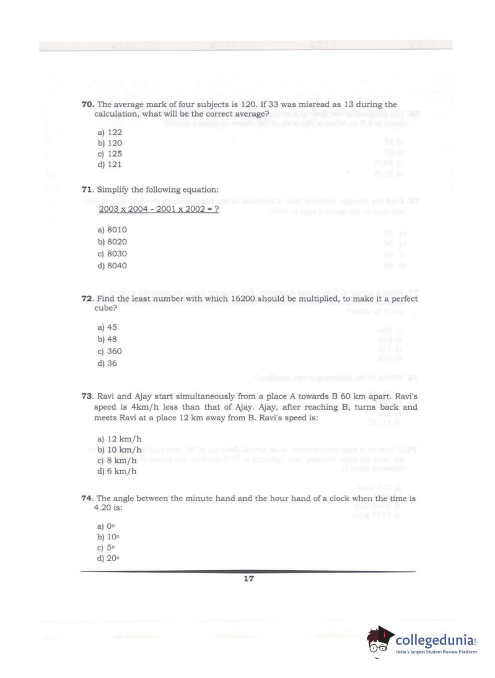 KMAT Kerala 2018 Quantitative Aptitude Question Paper with Answer Key PDFs