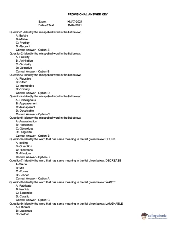 | KMAT Kerala 2021 Question Paper PDF | KMAT Kerala 2021 Answer Key PDF |