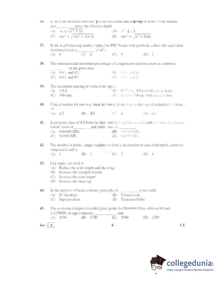TS PGECET 2016 Civil Engineering Question Paper with Answer Key PDFs Afternoon Session