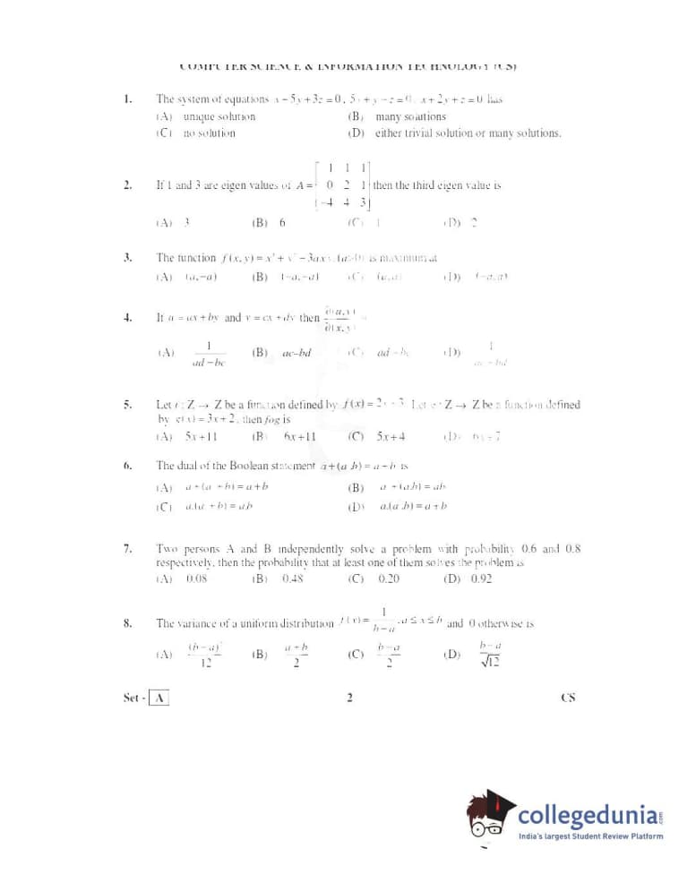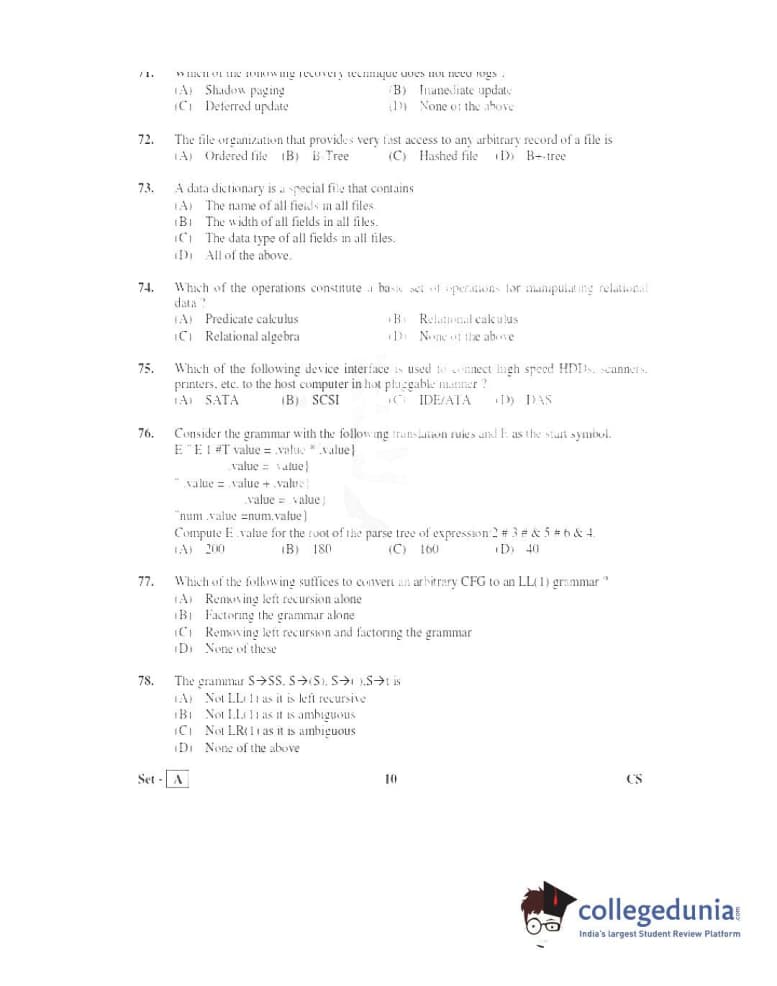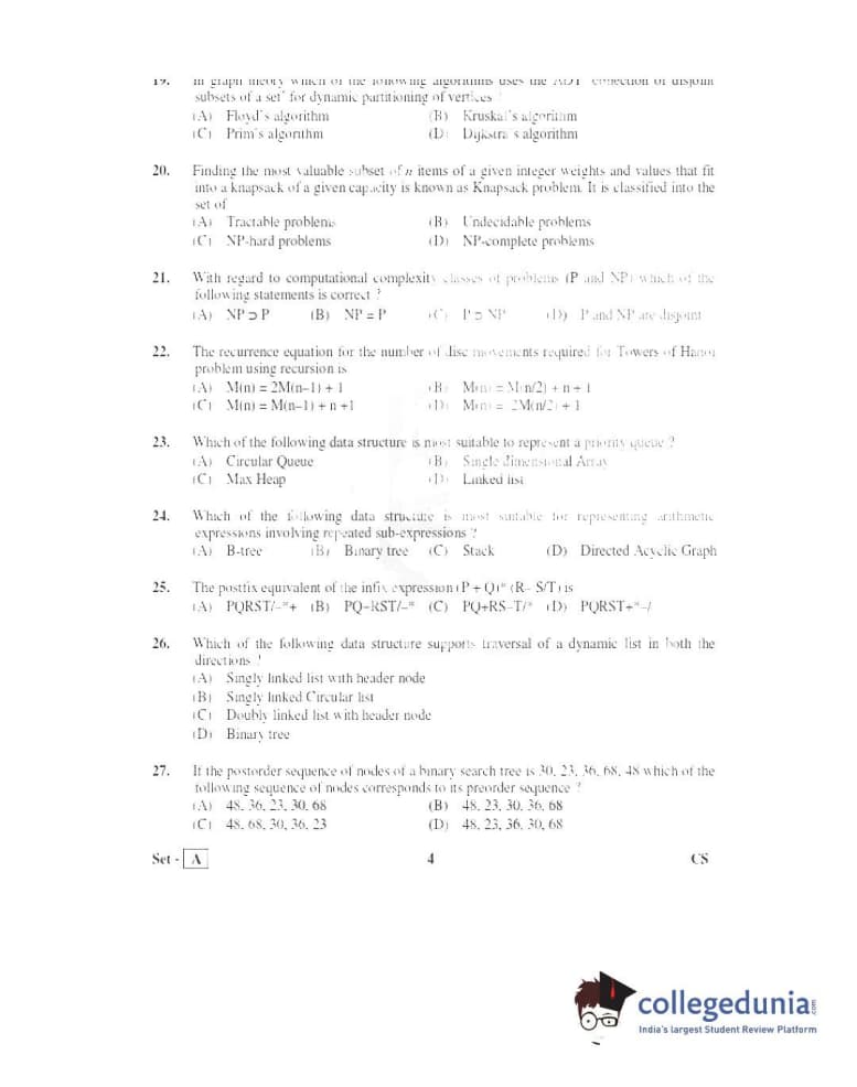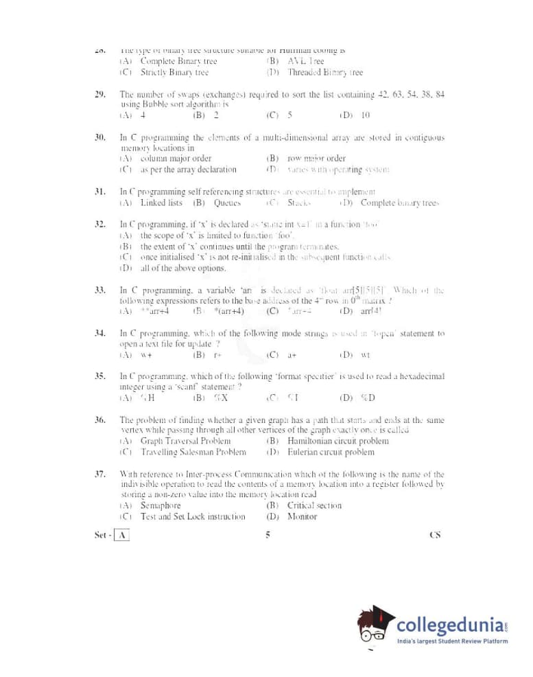 TS PGECET 2016 Computer Science and Information Technology Question Paper with Answer Key PDFs Afternoon Session