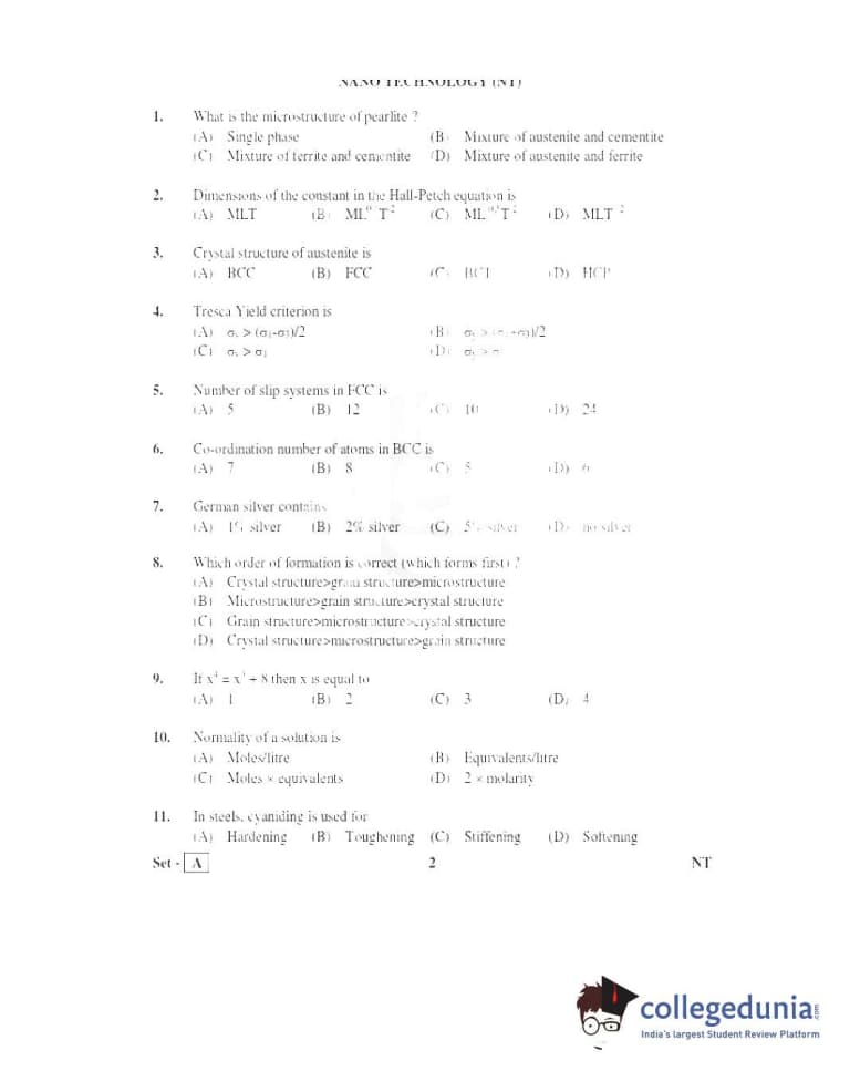 TS PGECET 2016 Nano Technology Question Paper with Answer Key PDFs Afternoon Session