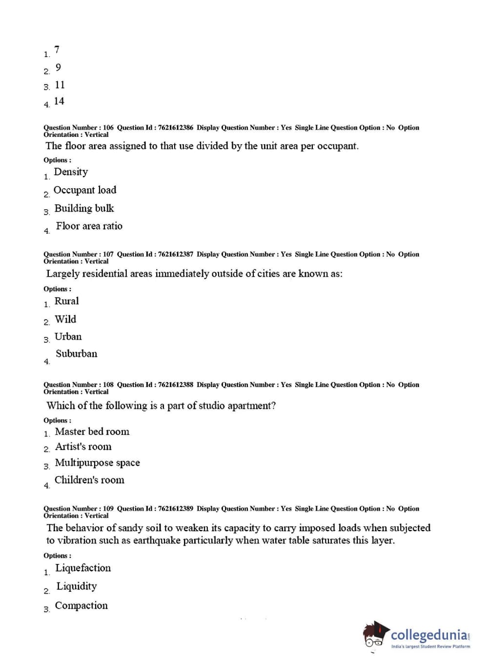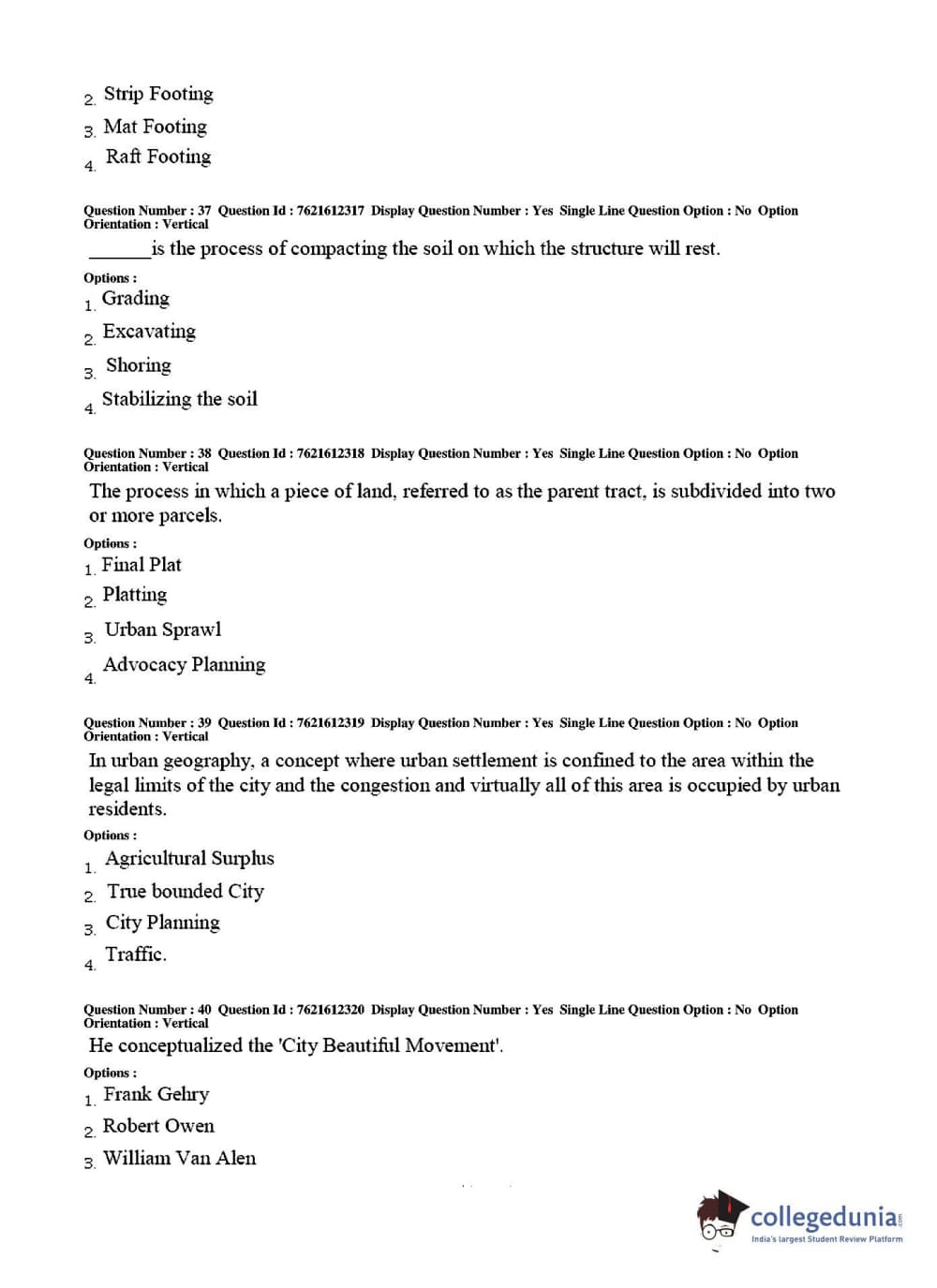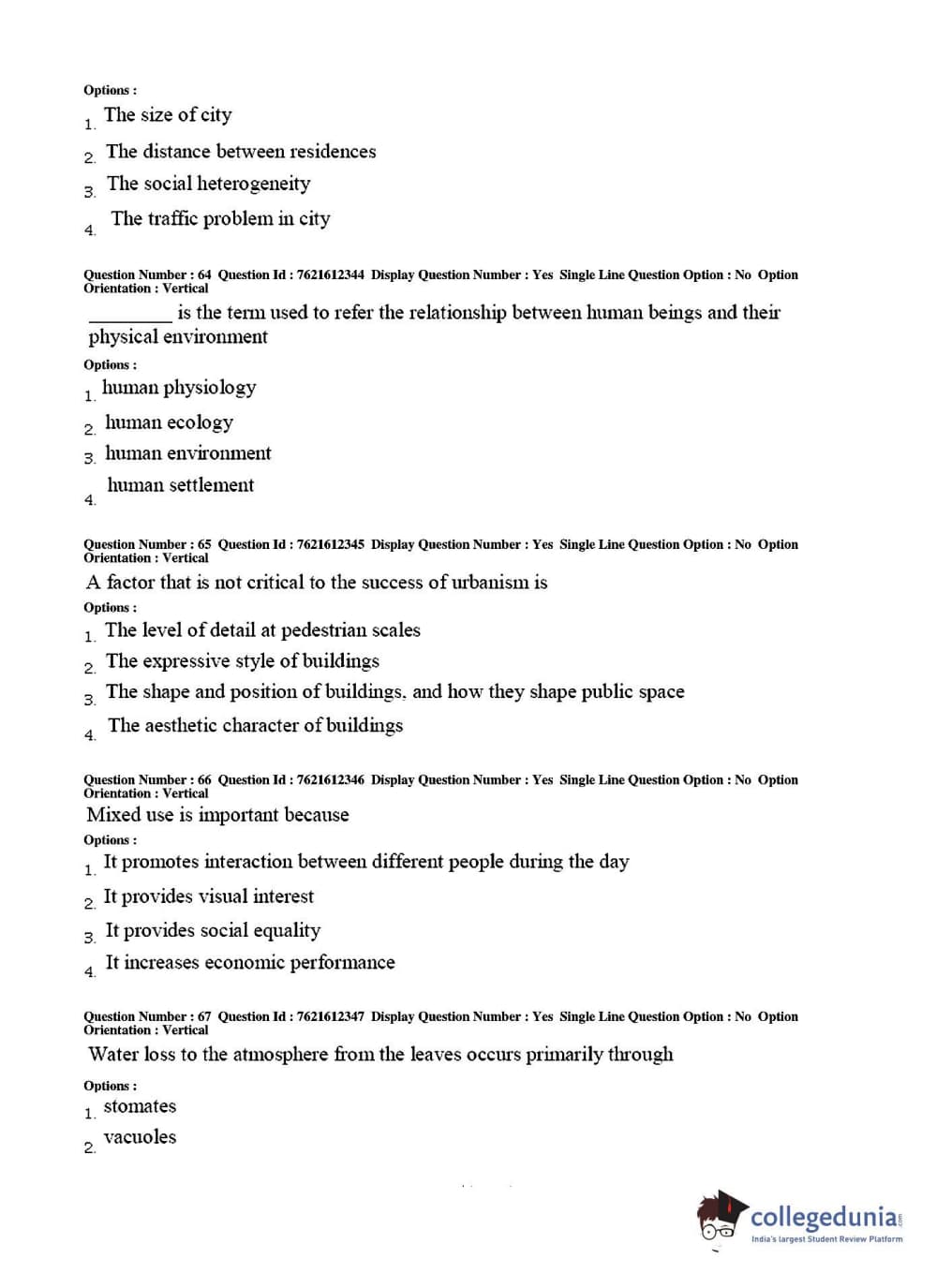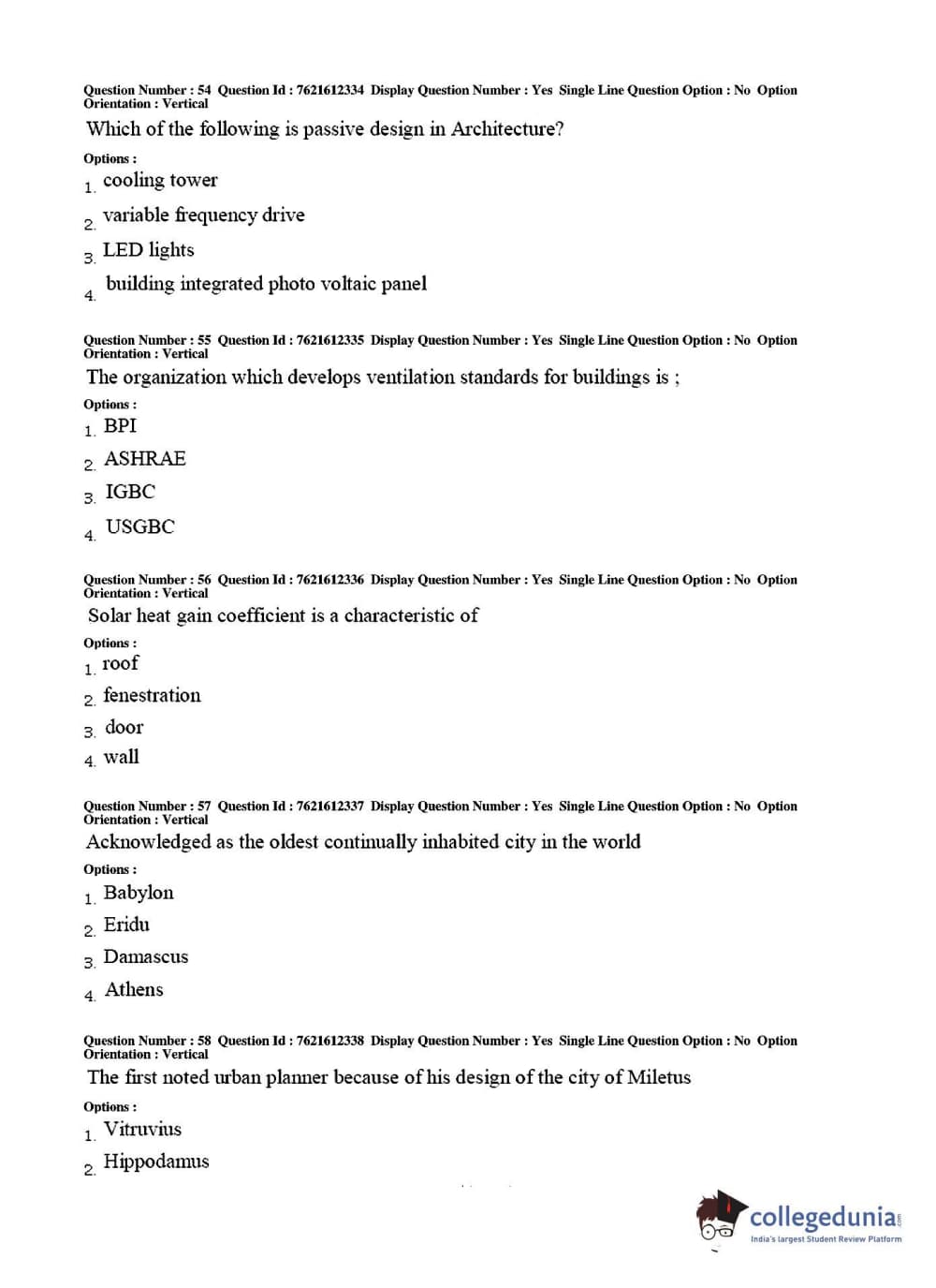 TS PGECET 2017 Architecture and Planning Question Paper with Answer Key PDFs for Afternoon Session