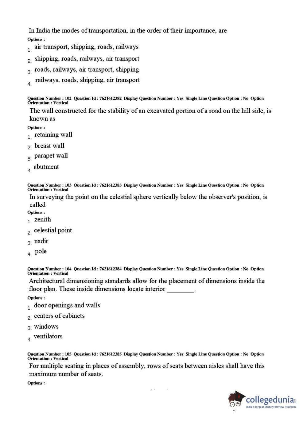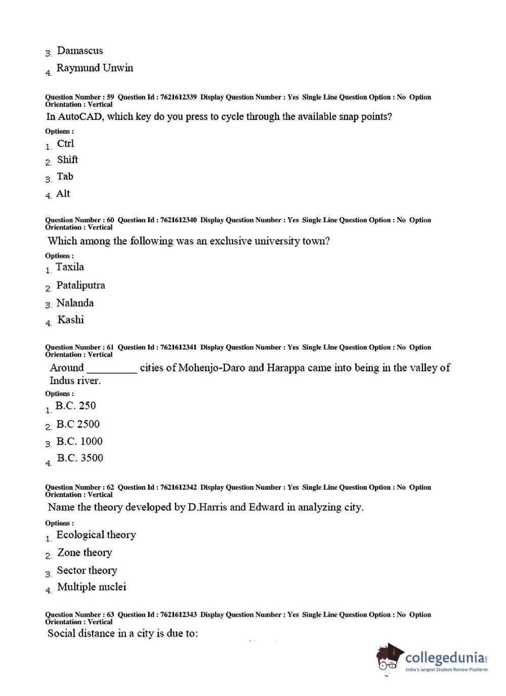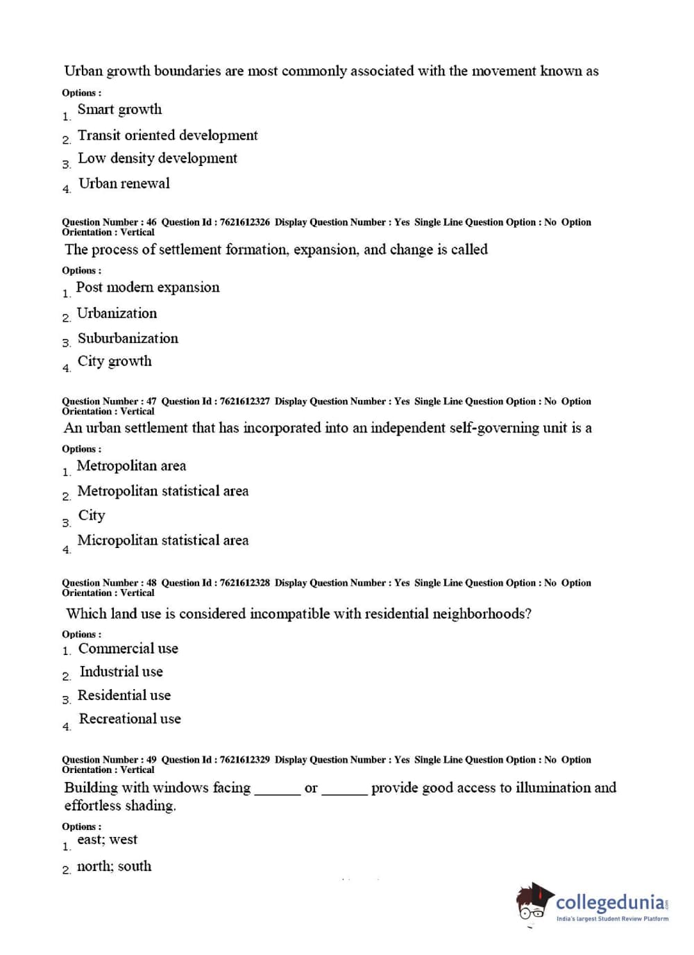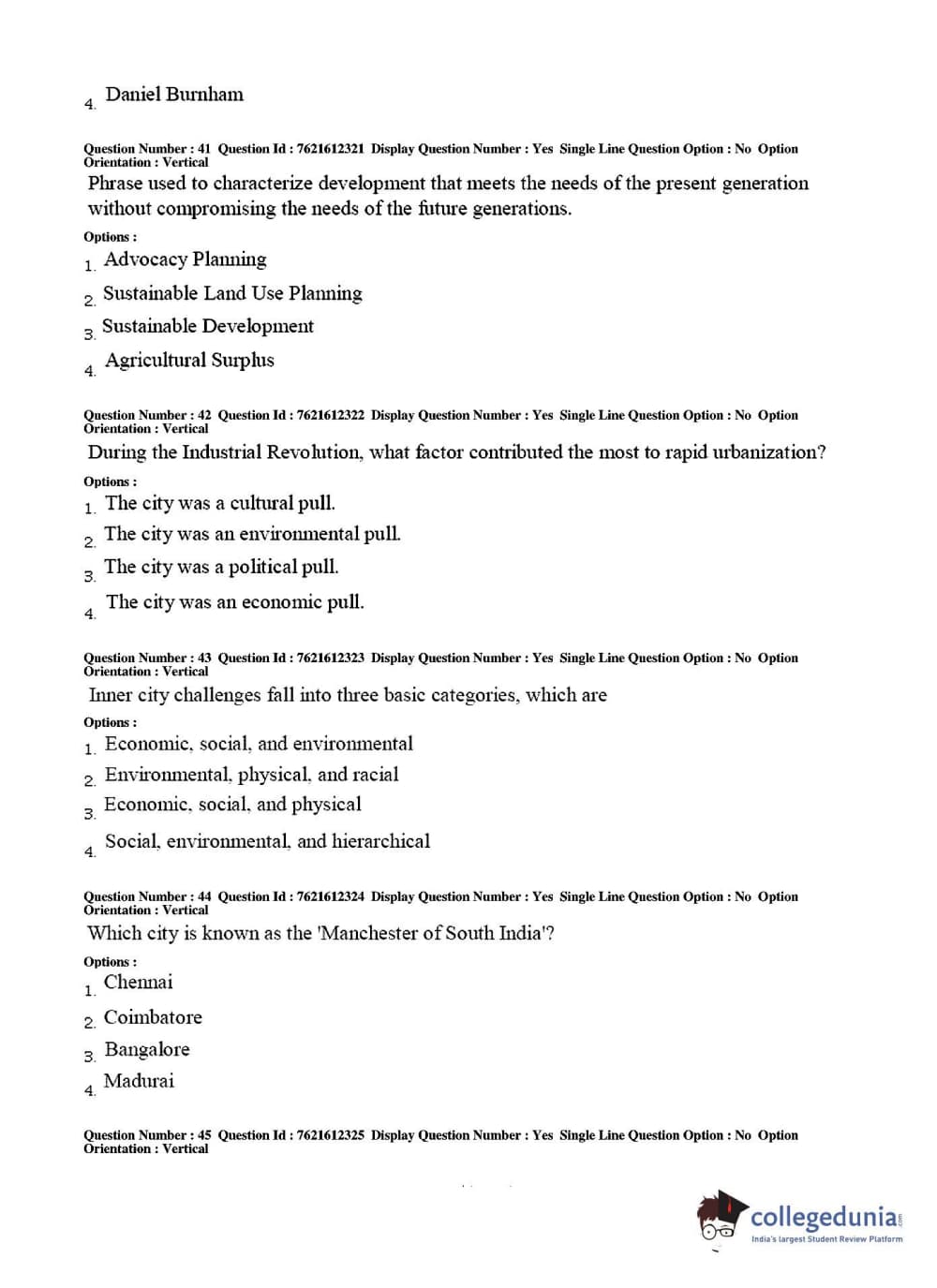 TS PGECET 2017 Architecture and Planning Question Paper with Answer Key PDFs for Afternoon Session