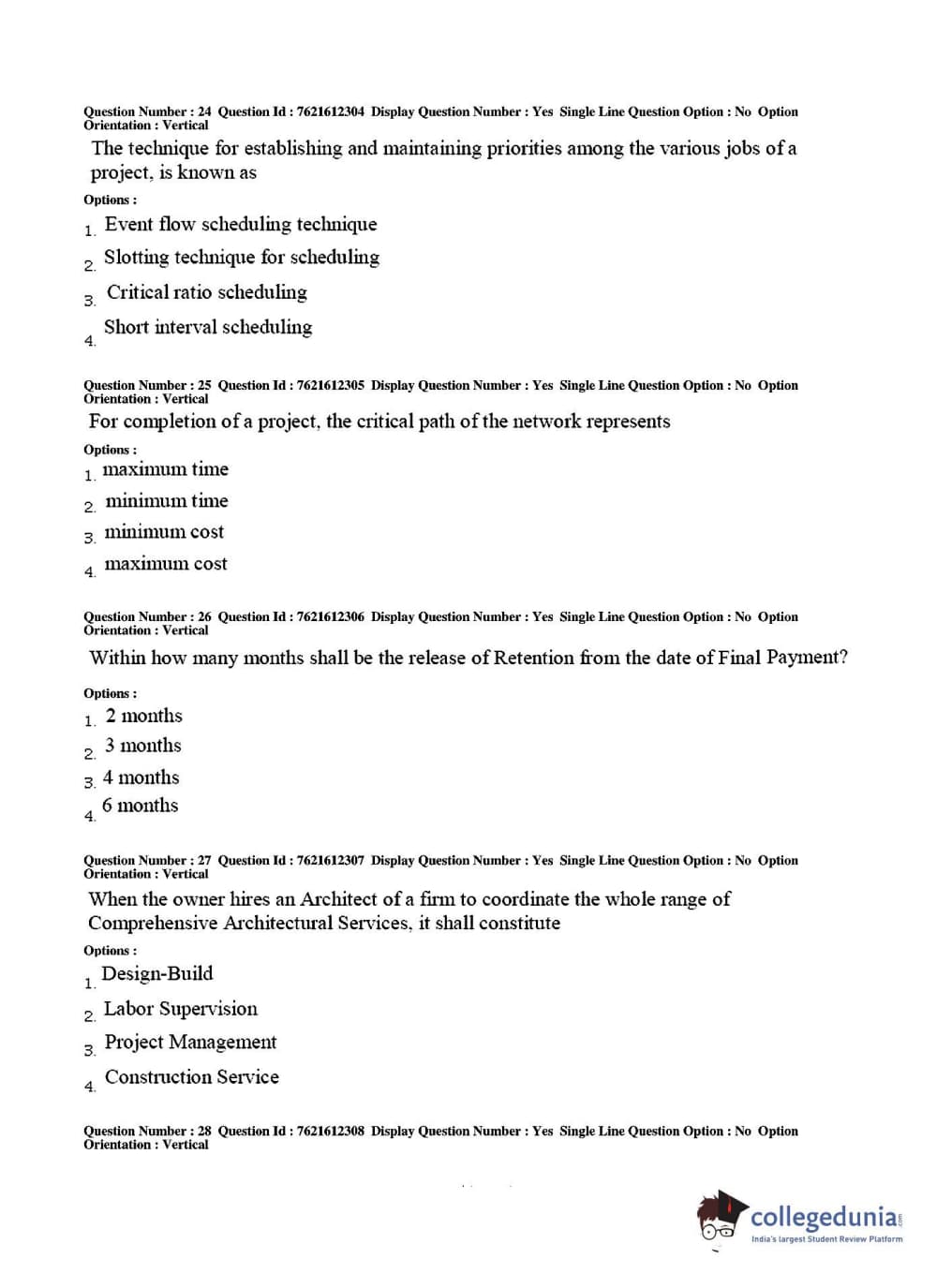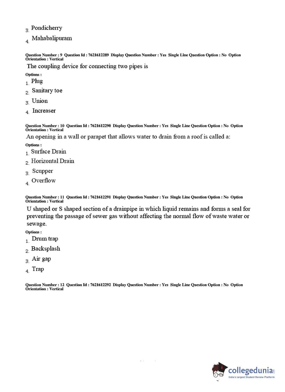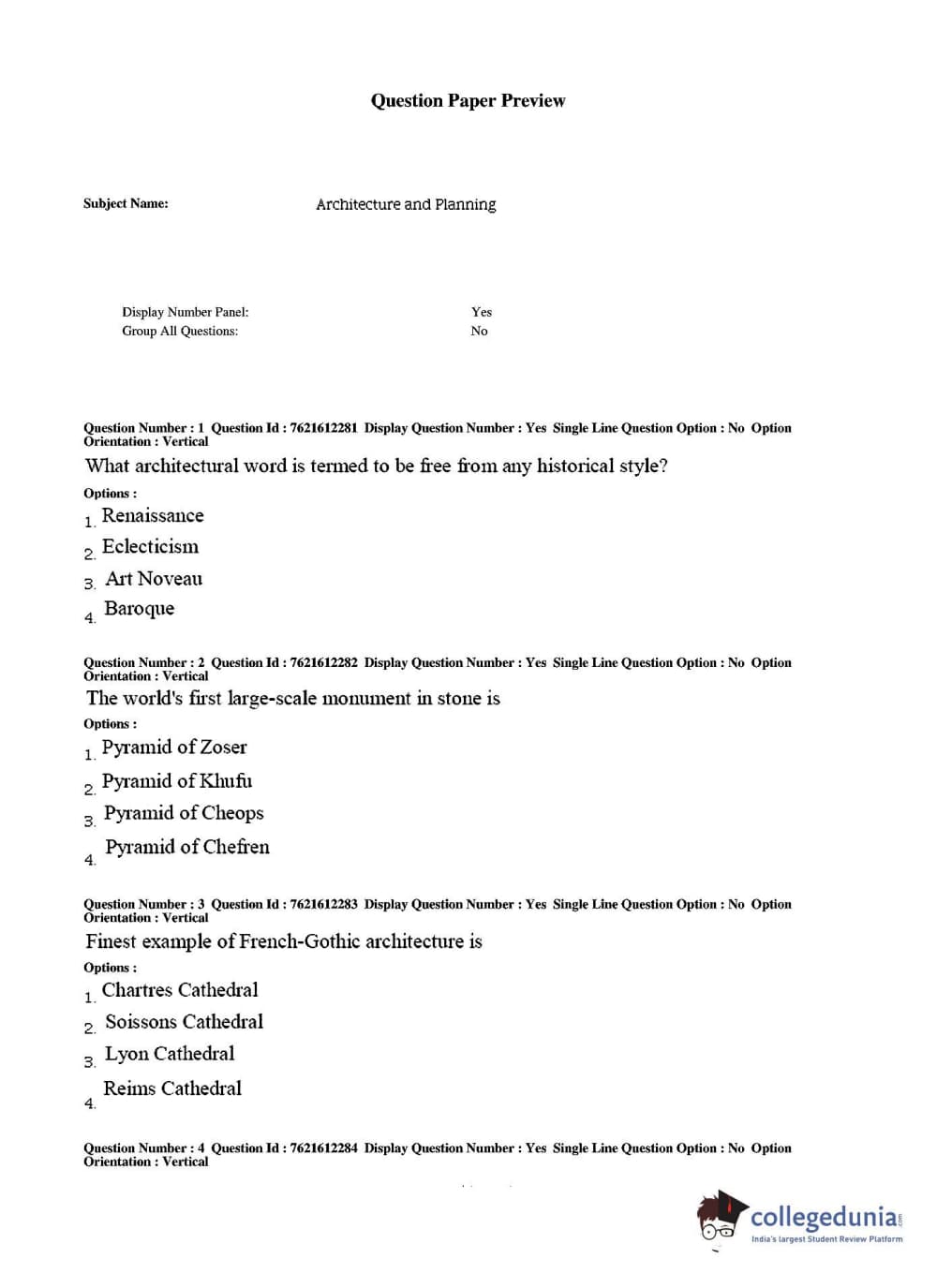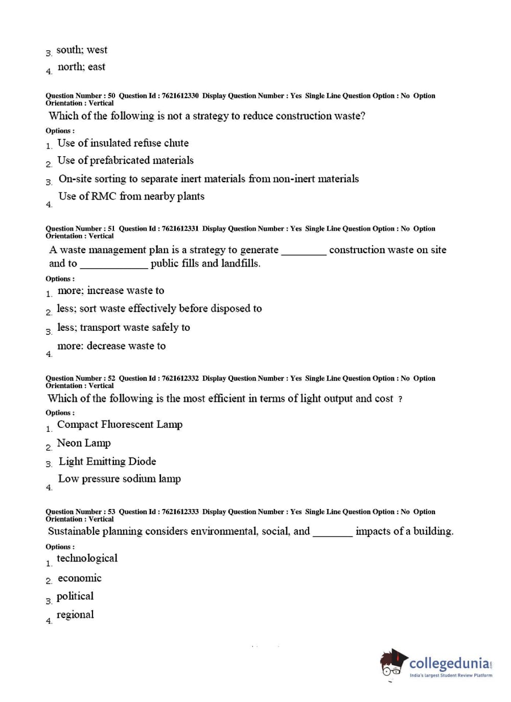 TS PGECET 2017 Architecture and Planning Question Paper with Answer Key PDFs for Afternoon Session