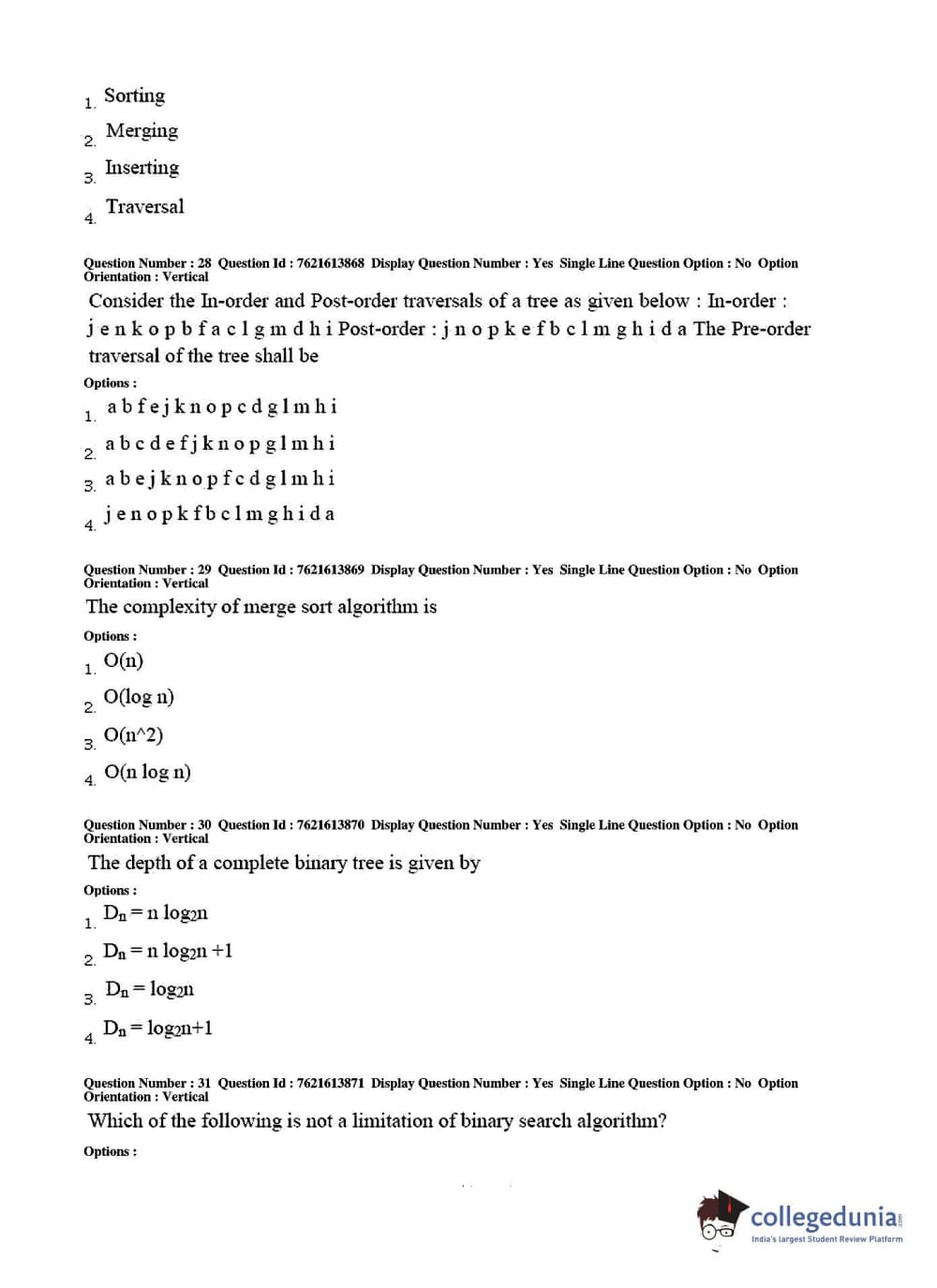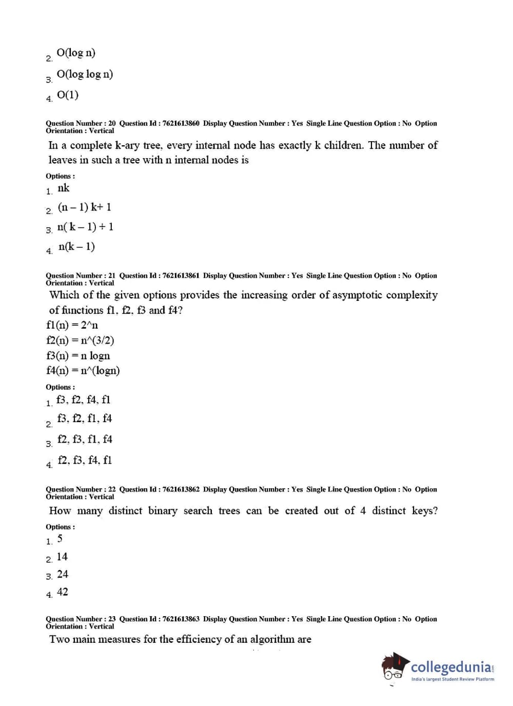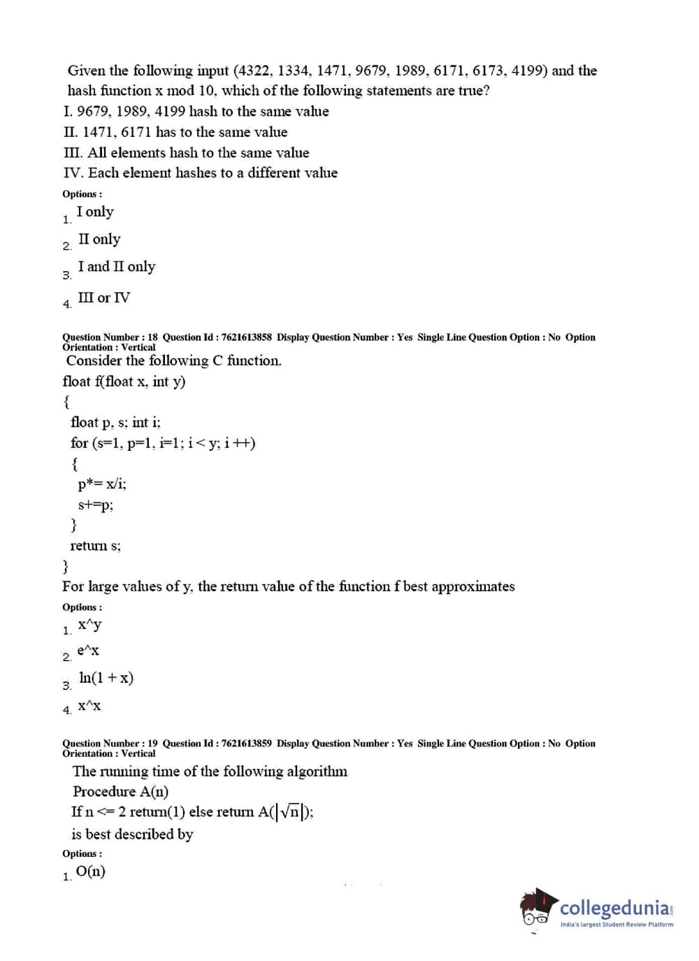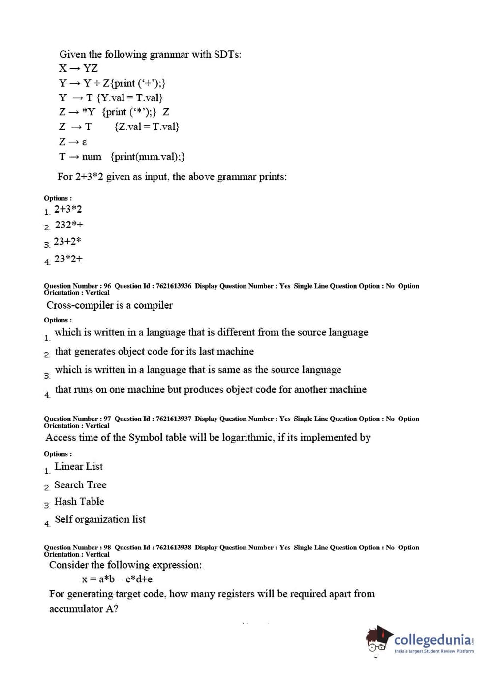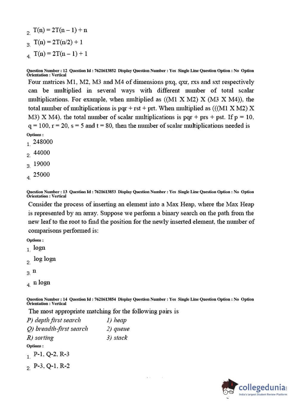 TS PGECET 2017 Computer Science and Information Technology Question Paper with Answer Key PDFs for Afternoon Session