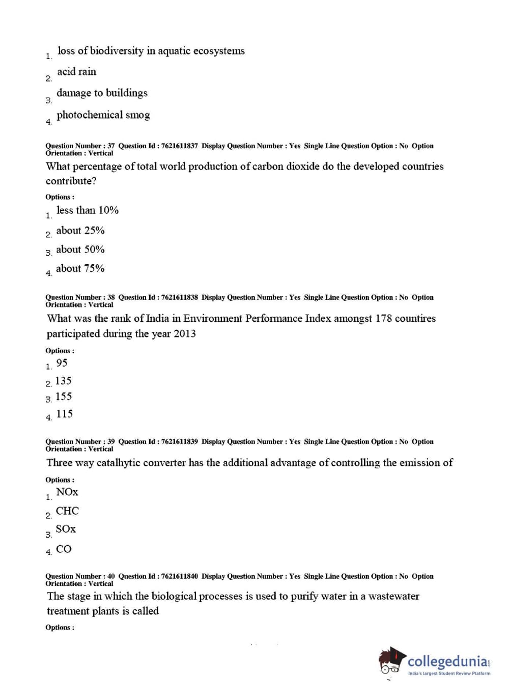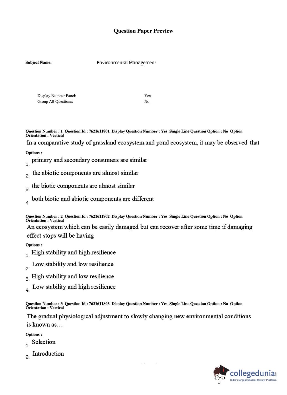 TS PGECET 2017 Environmental Management Question Paper with Answer Key PDFs for Forenoon Session