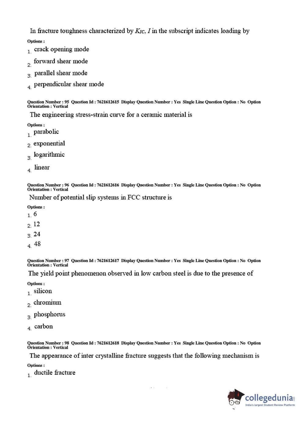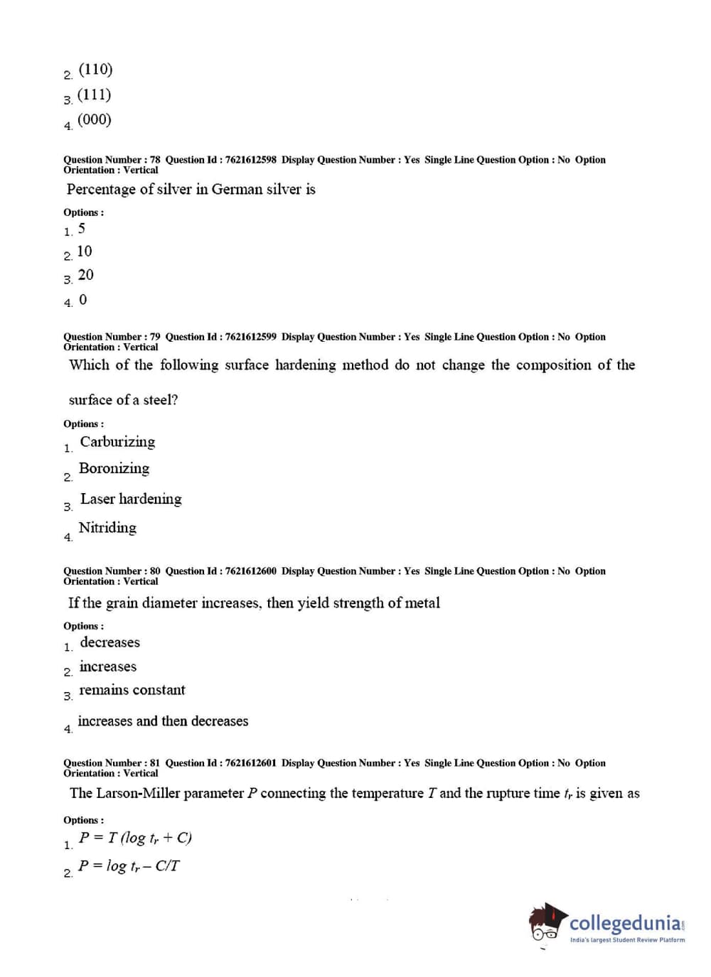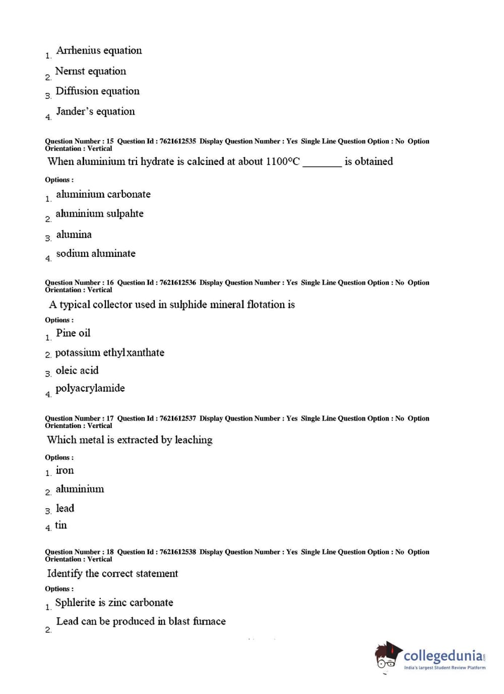 TS PGECET 2017 Metallurgical Engineering Question Paper with Answer Key PDFs for Afternoon Session