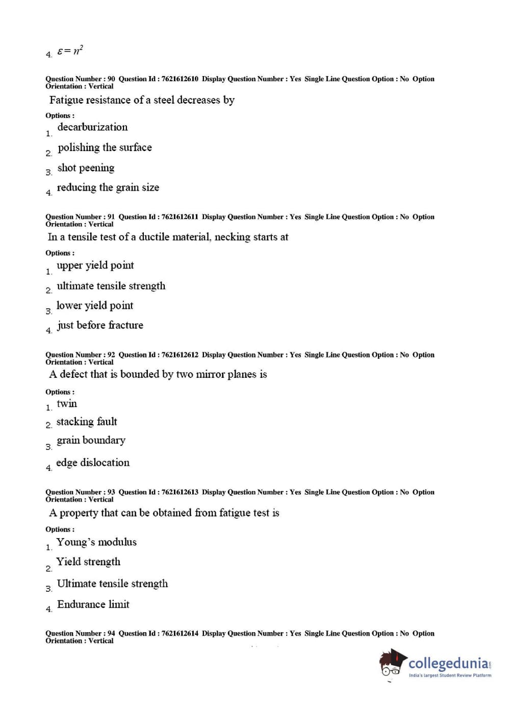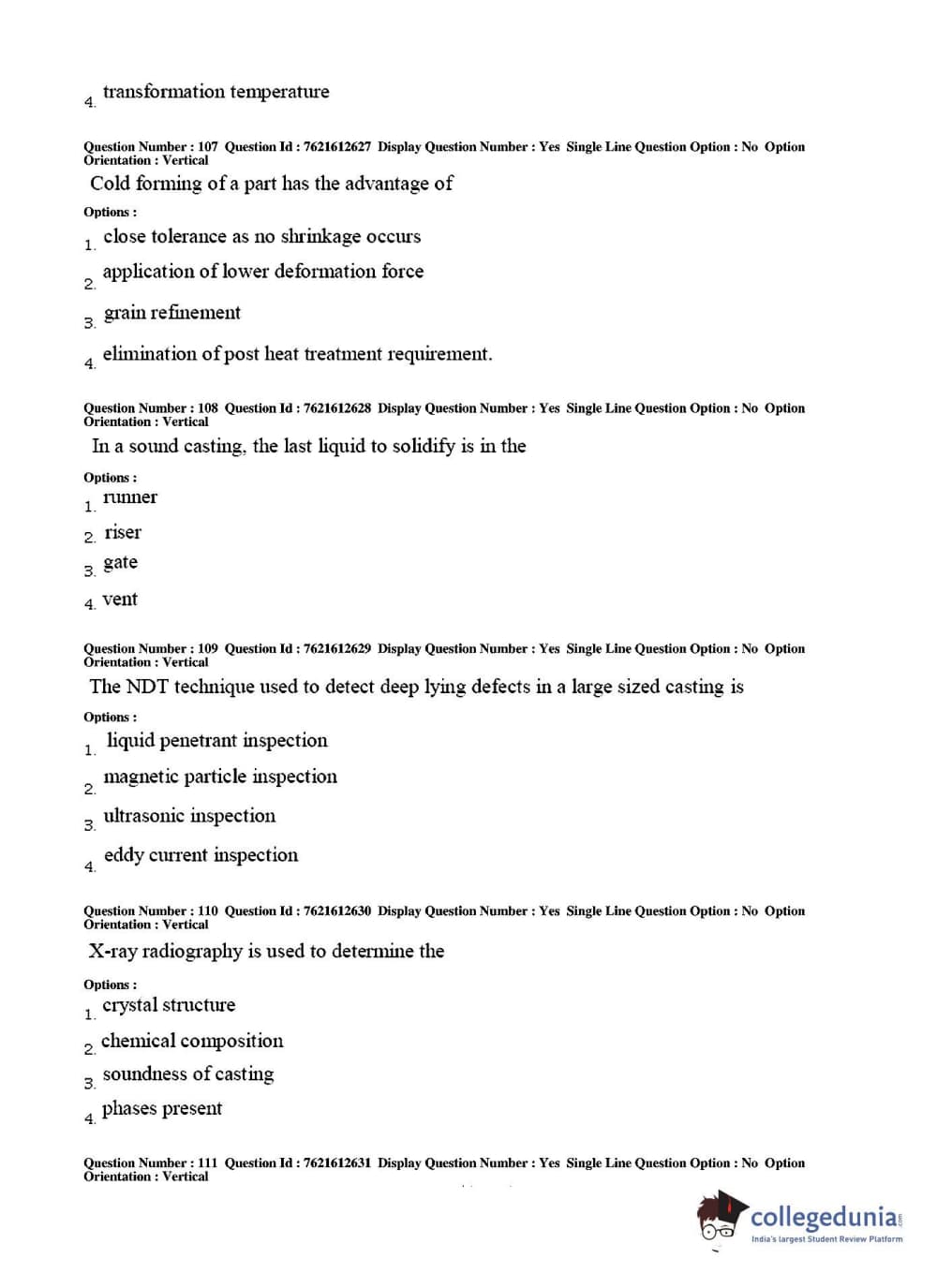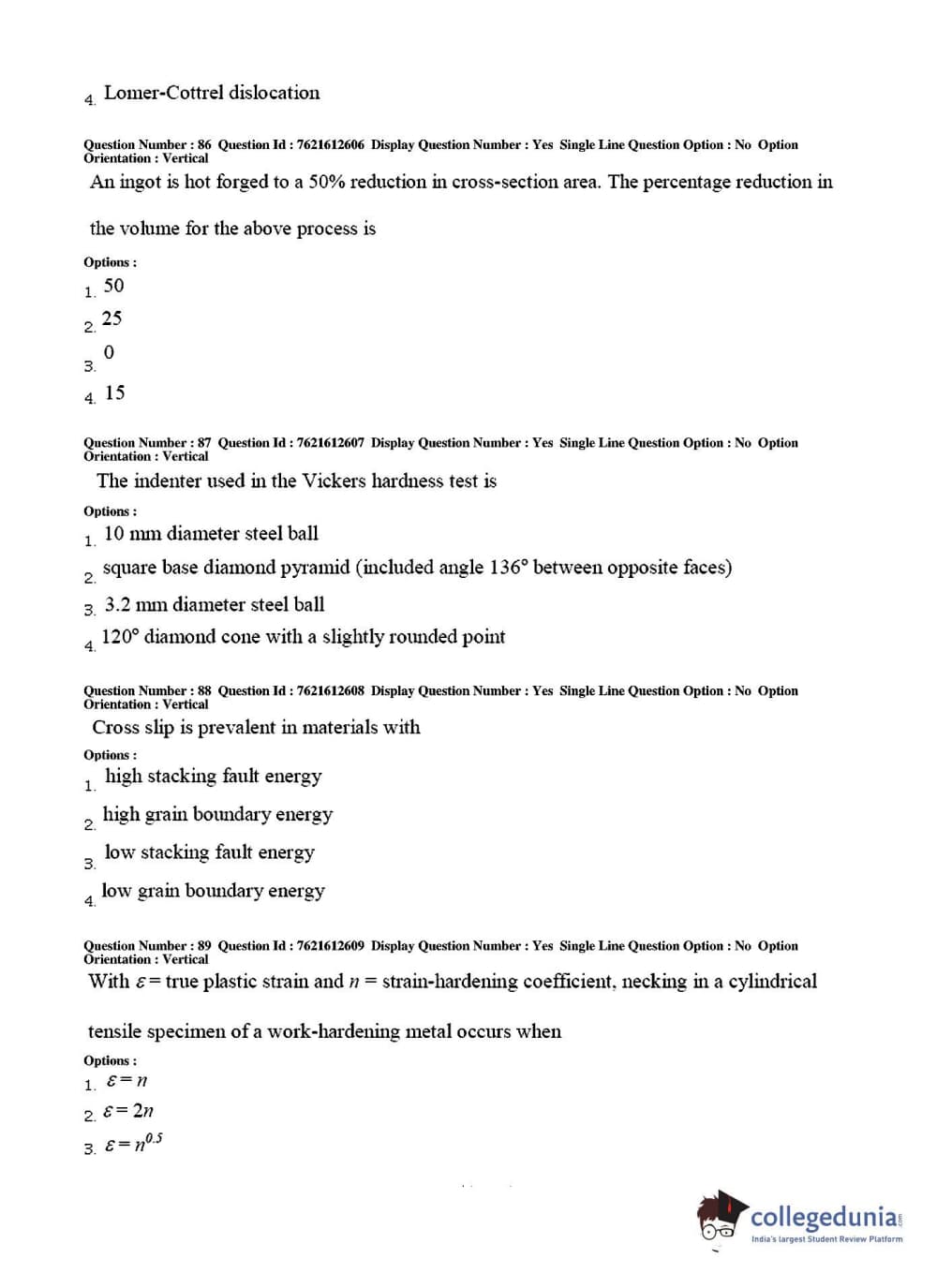 TS PGECET 2017 Metallurgical Engineering Question Paper with Answer Key PDFs for Afternoon Session