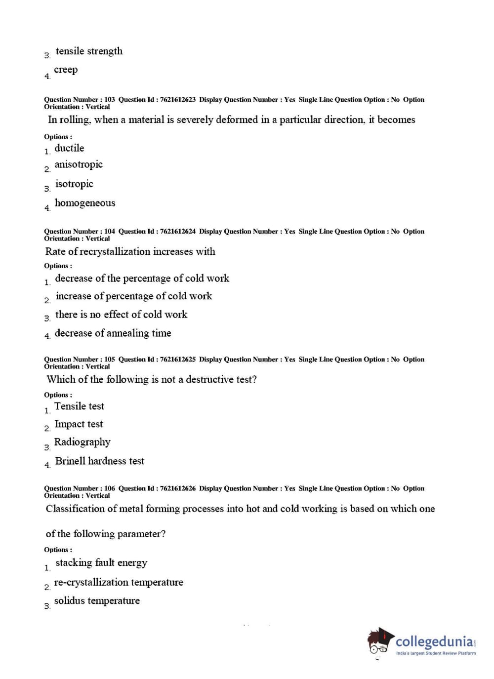 TS PGECET 2017 Metallurgical Engineering Question paper with answer key pdf conducted on May 30. 2017 in Afternoon Session 2 PM to 4 PM is available for download. The exam was successfully organized by Osmania University. The question paper comprised a total of 120 questions.