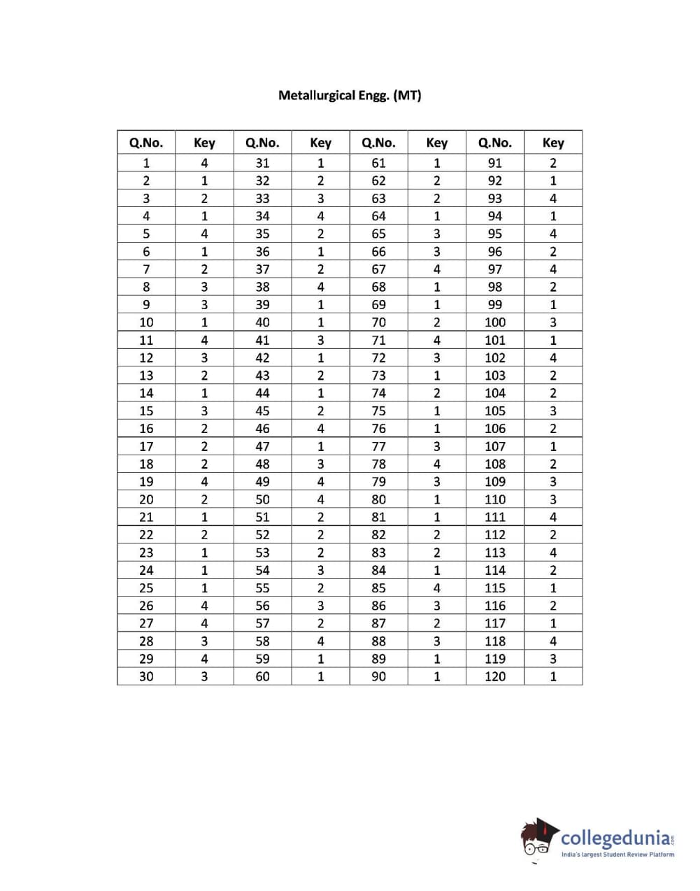 | TS PGECET 2017 Metallurgical Engineering Question Paper PDF | TS PGECET 2017 Metallurgical Engineering Answer Key PDF |