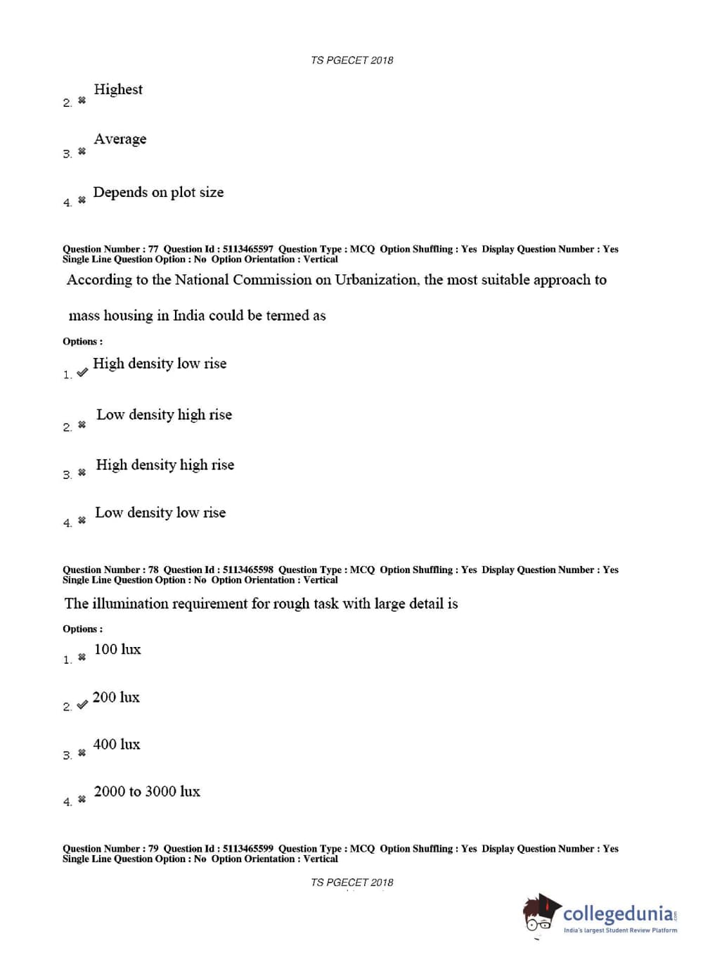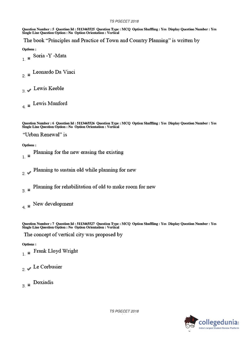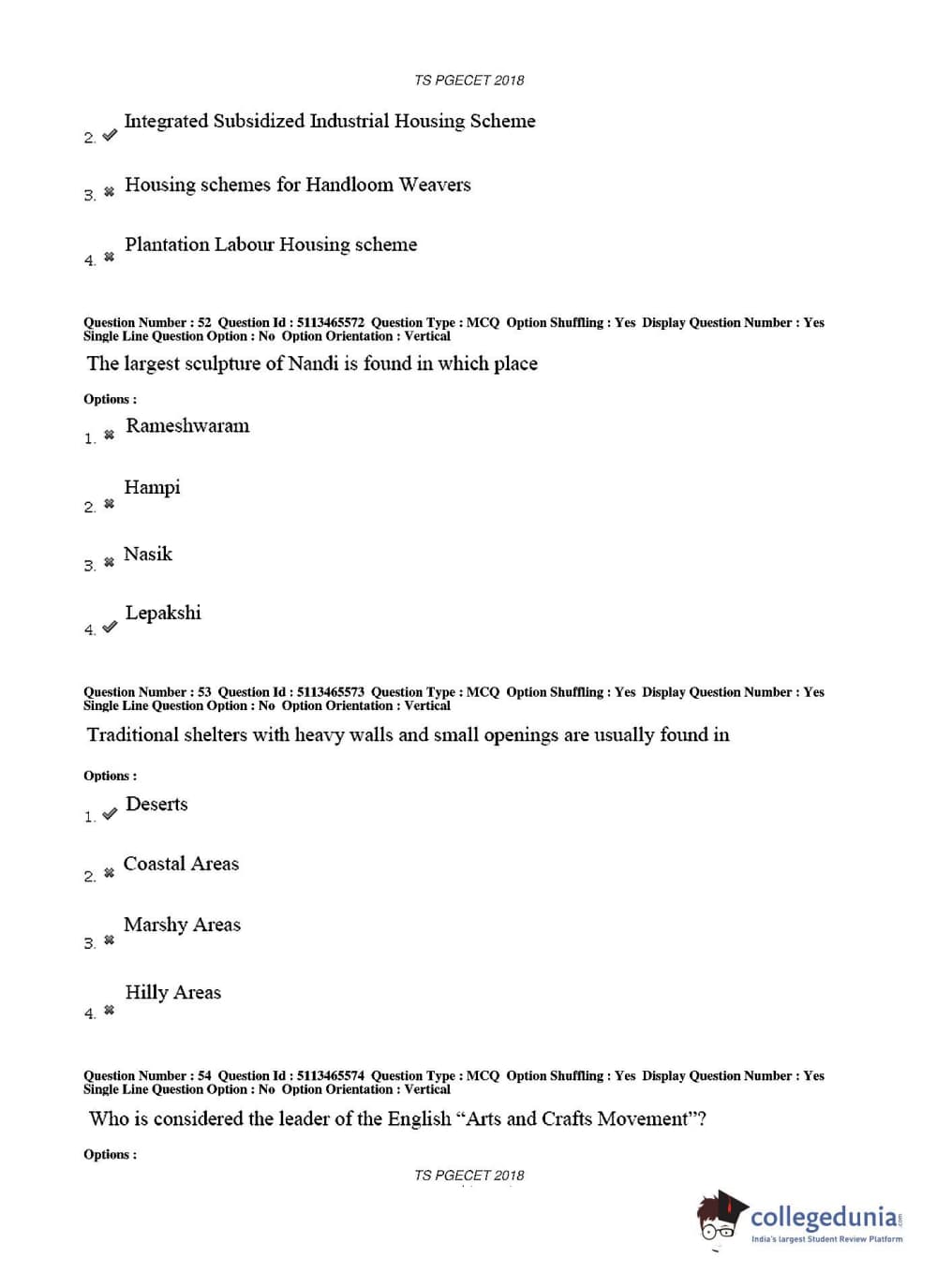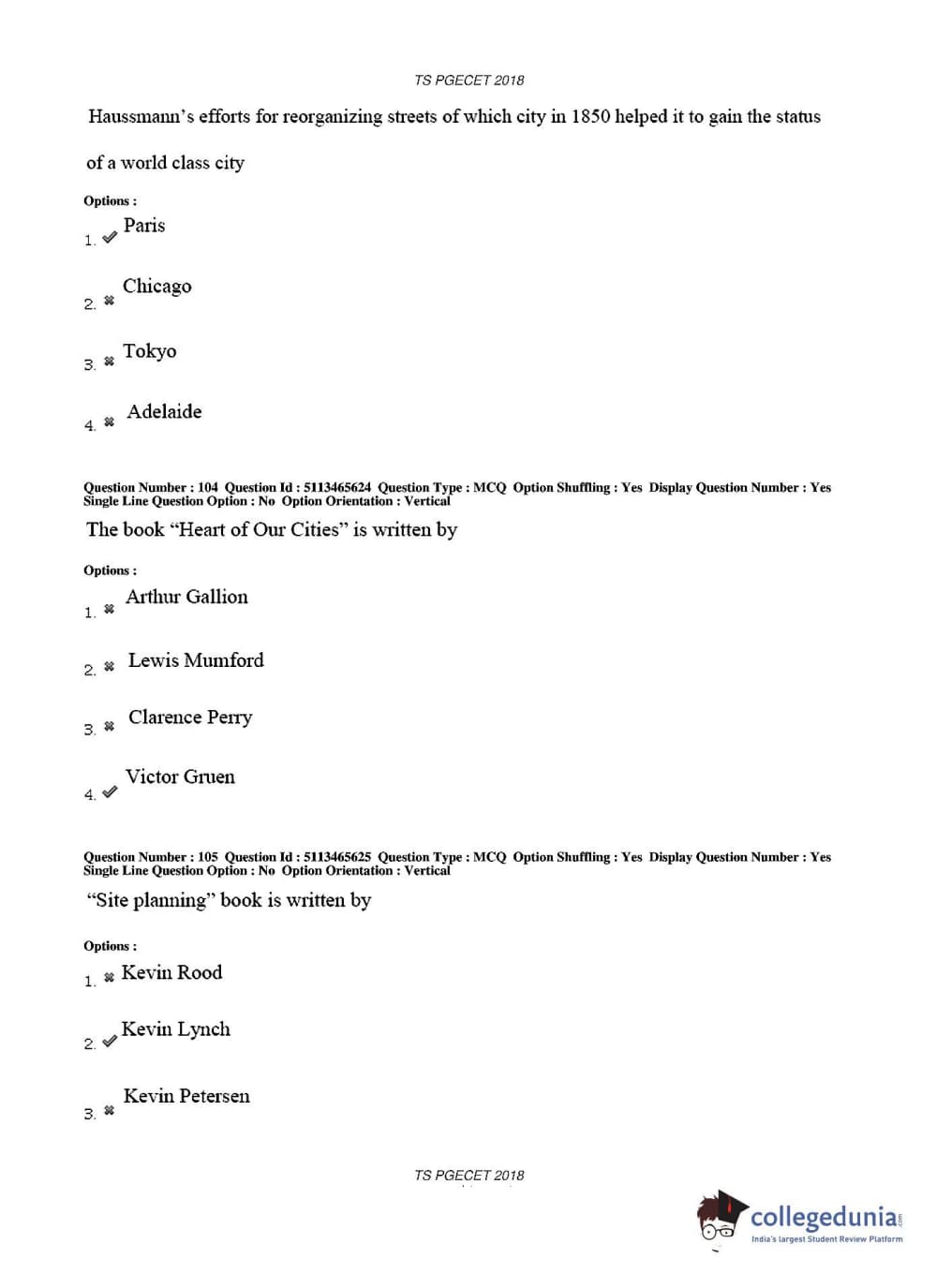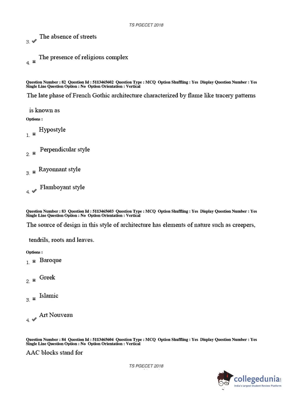 TS PGECET 2018 Architecture and Planning Question Paper with Answer Key PDF for Afternoon Session