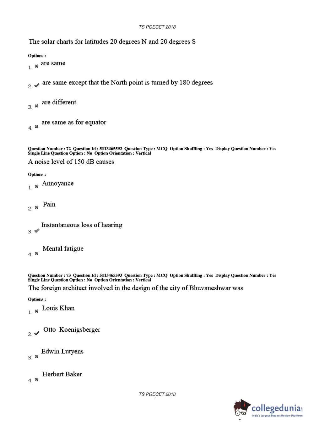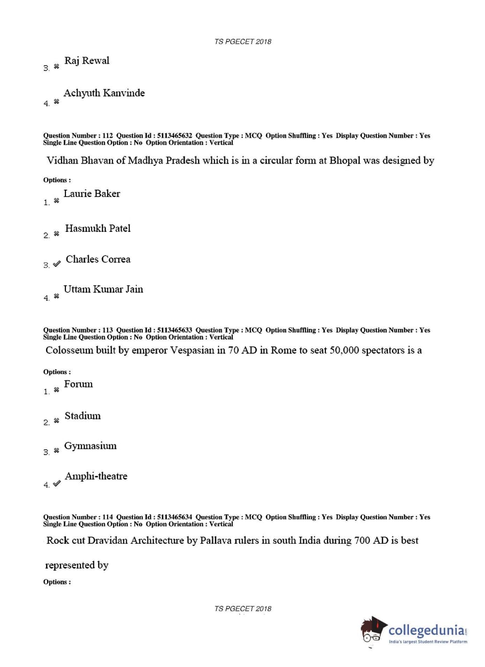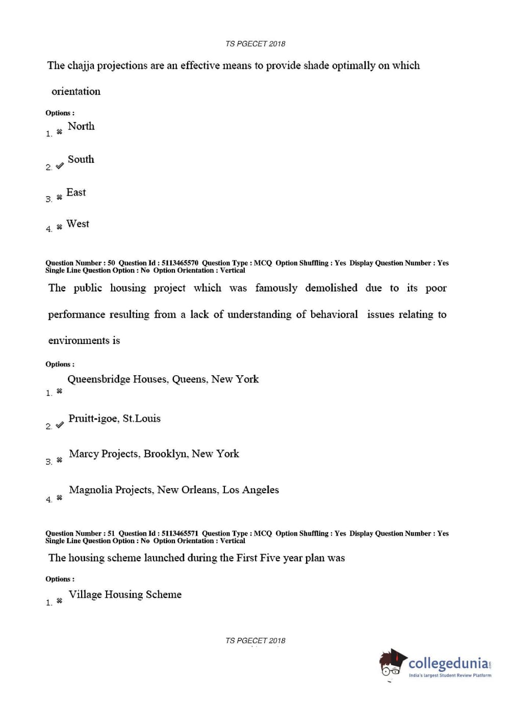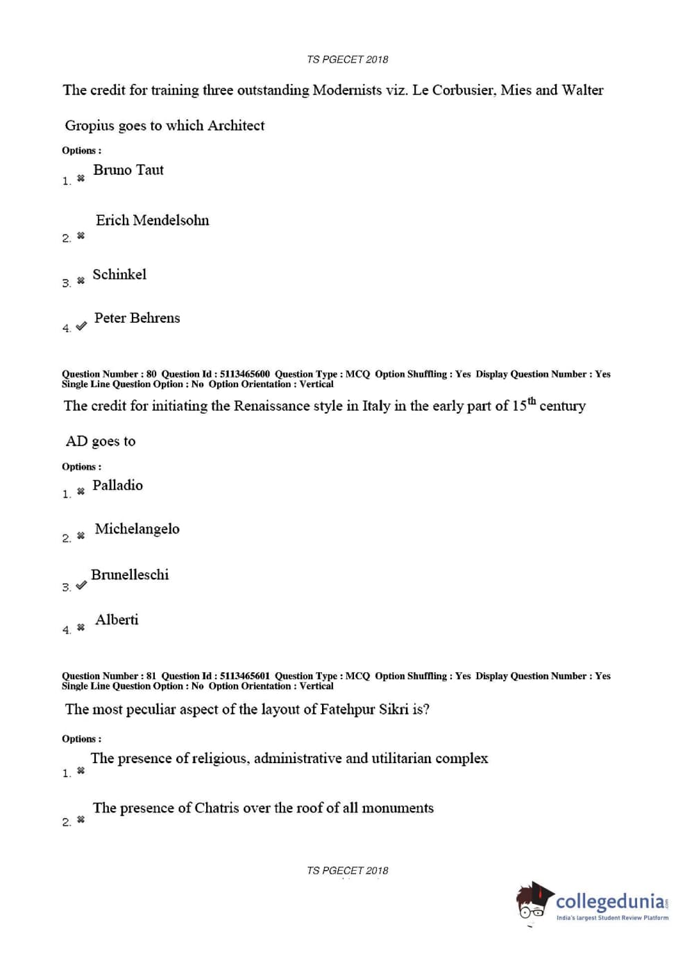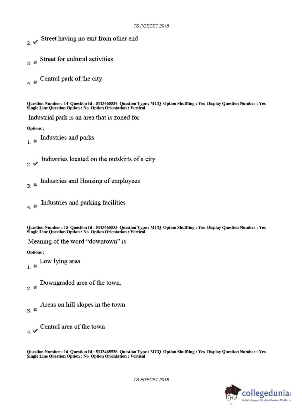 TS PGECET 2018 Architecture and Planning Question Paper with Answer Key PDF for Afternoon Session