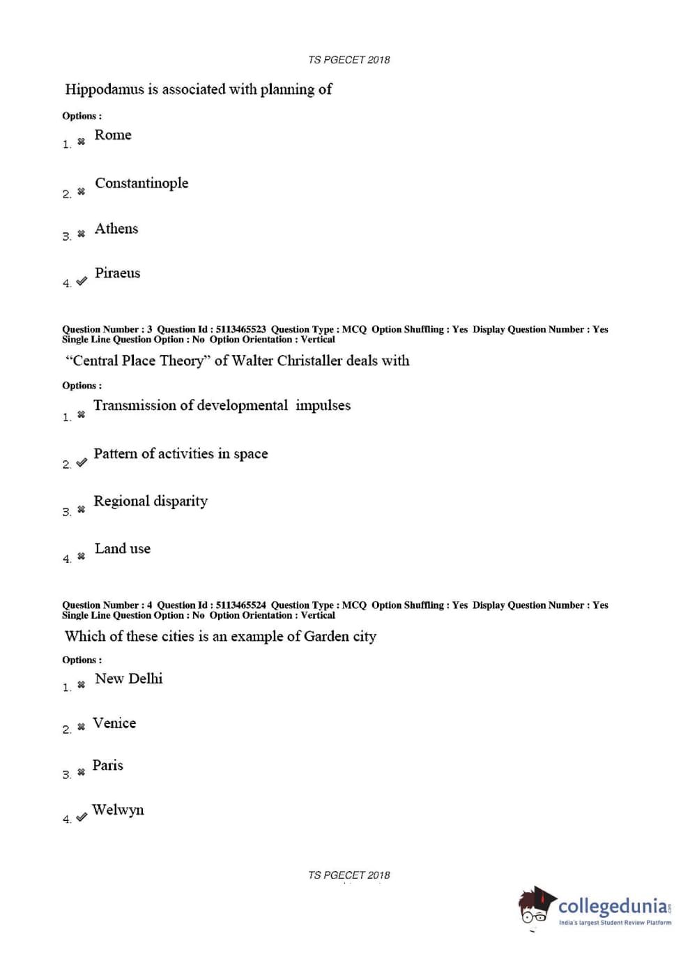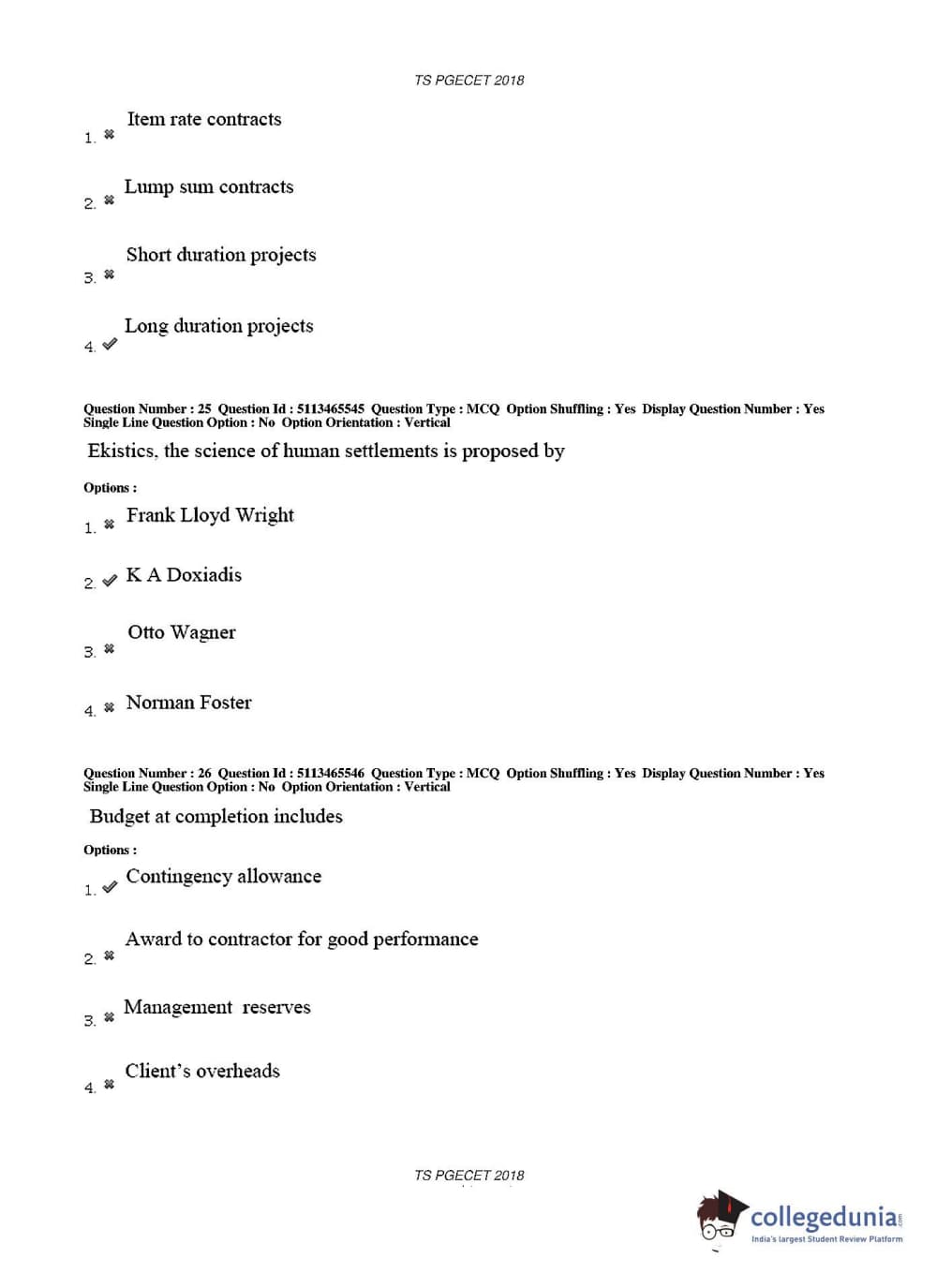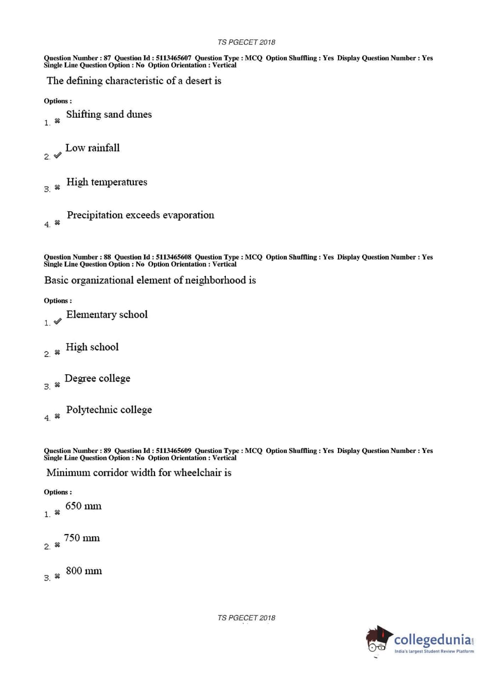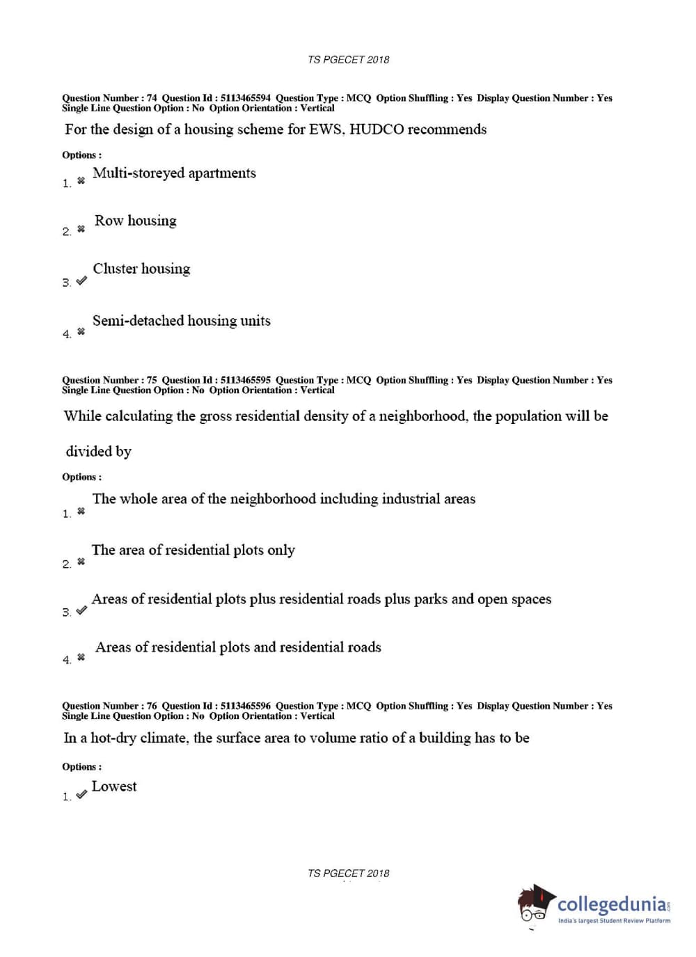 TS PGECET 2018 Architecture and Planning Question Paper with Answer Key PDF for Afternoon Session