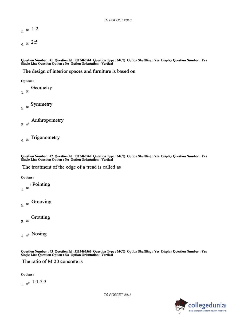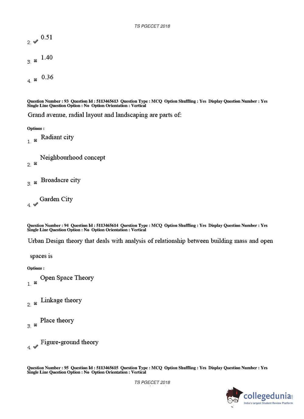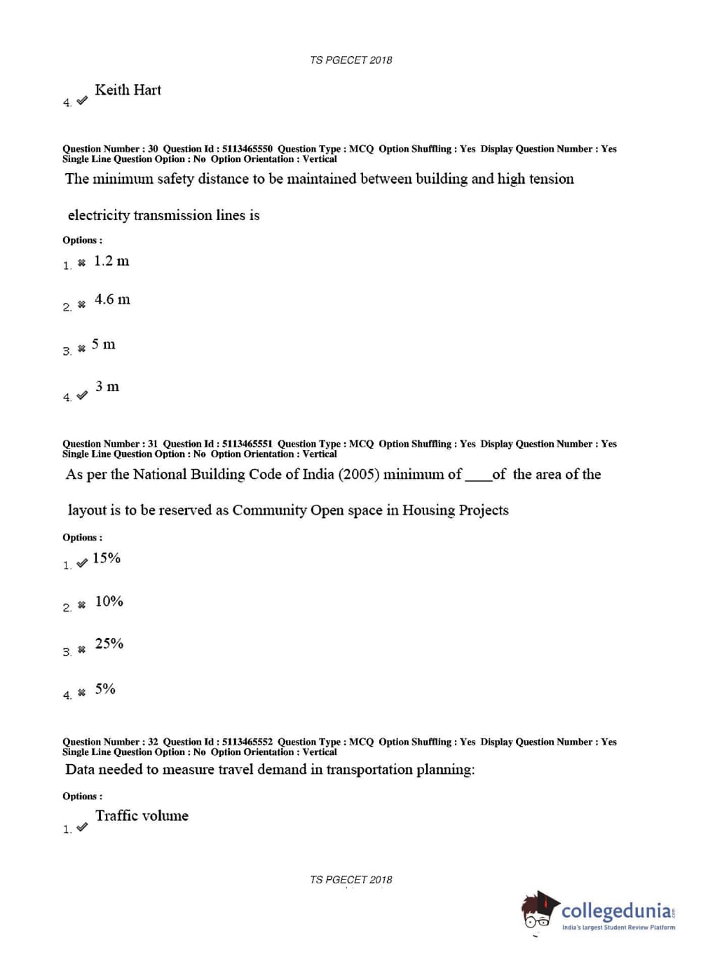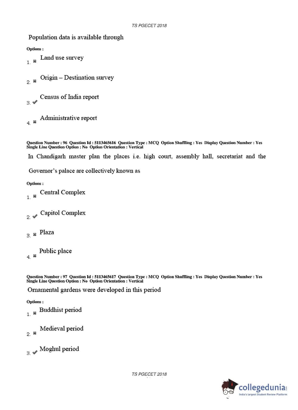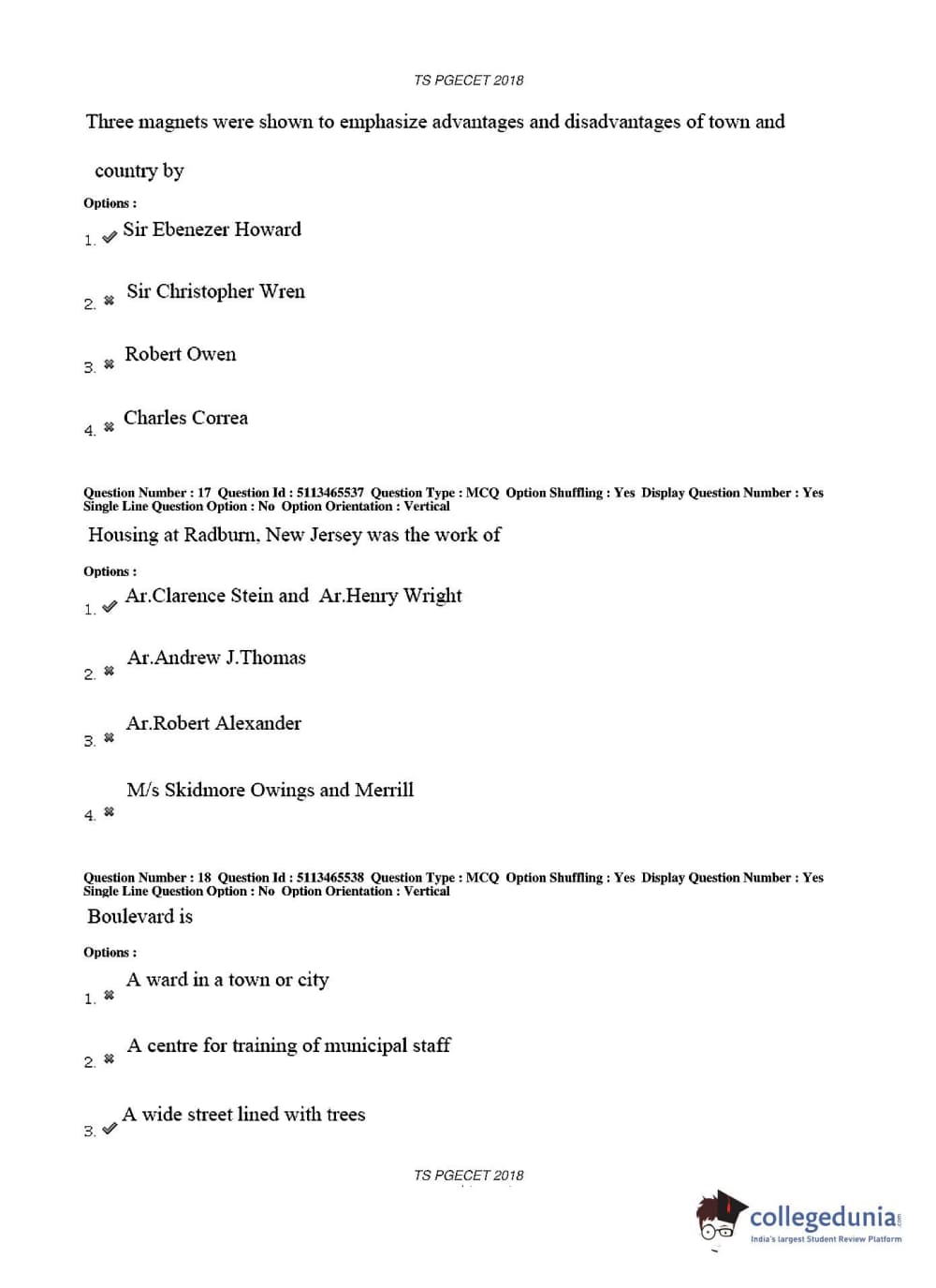 TS PGECET 2018 Architecture and Planning Question Paper with Answer Key PDF for Afternoon Session