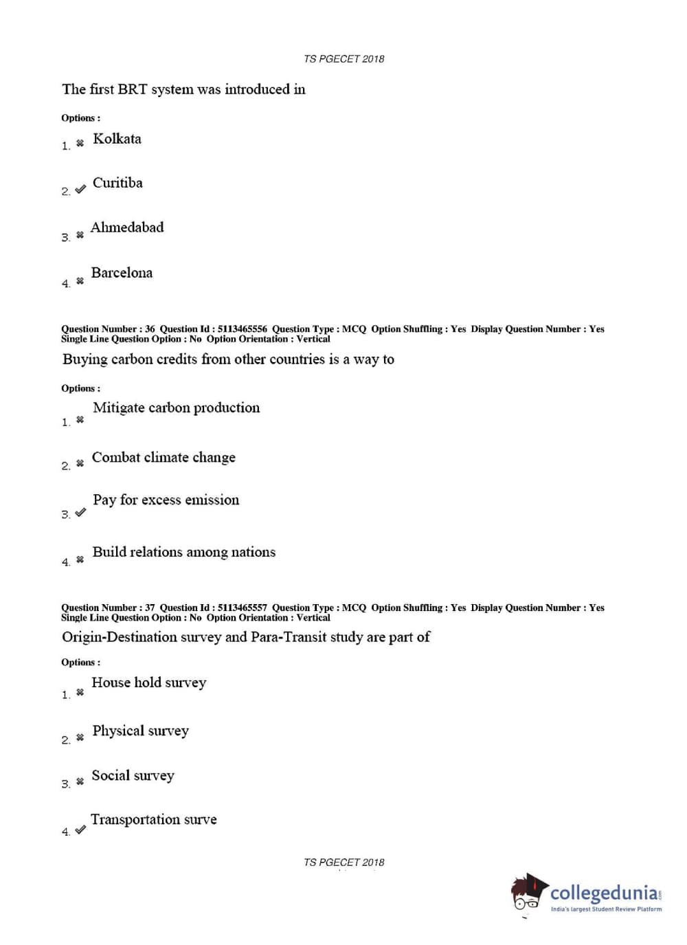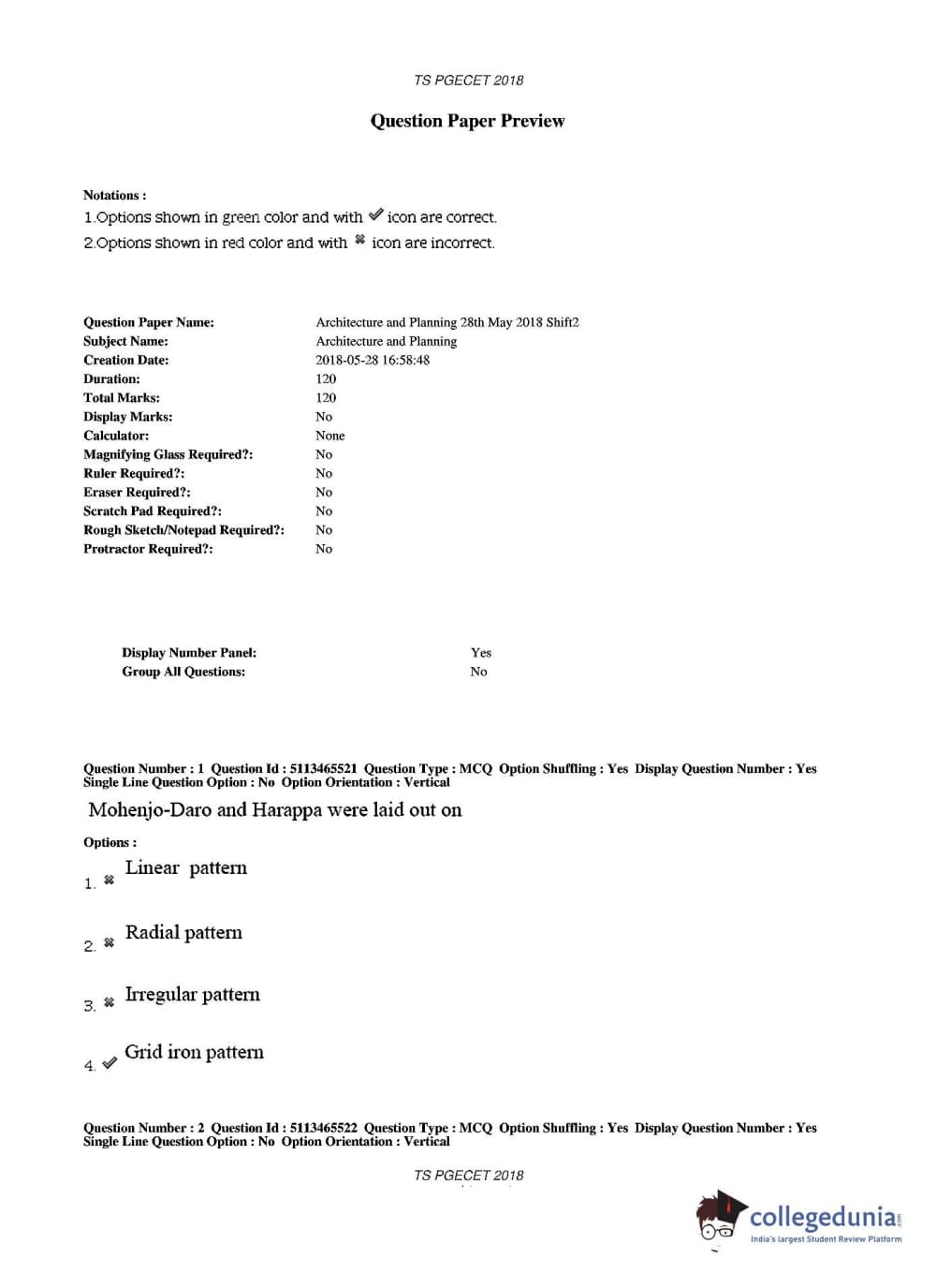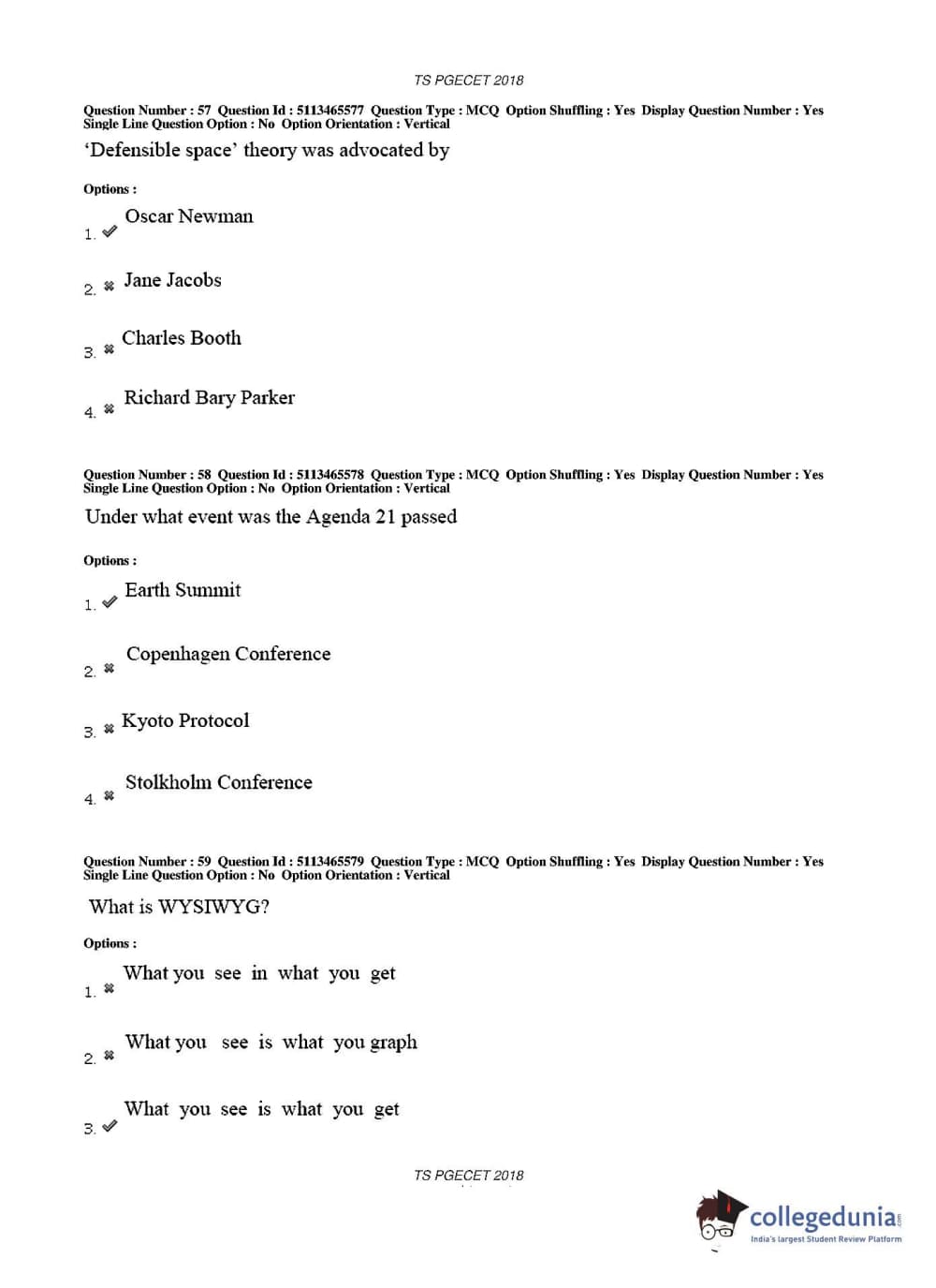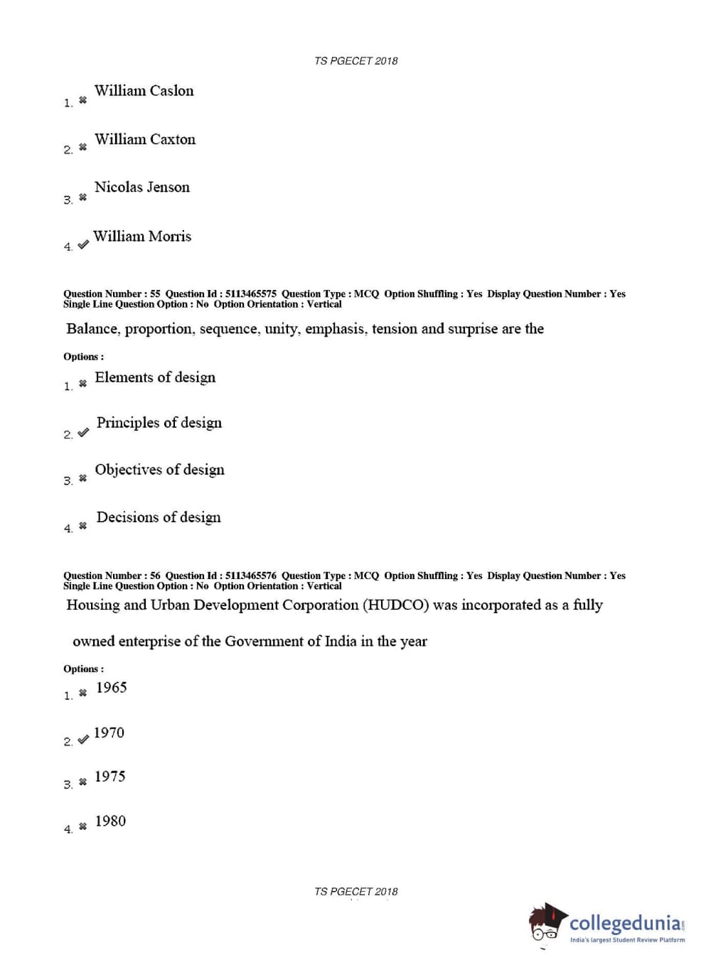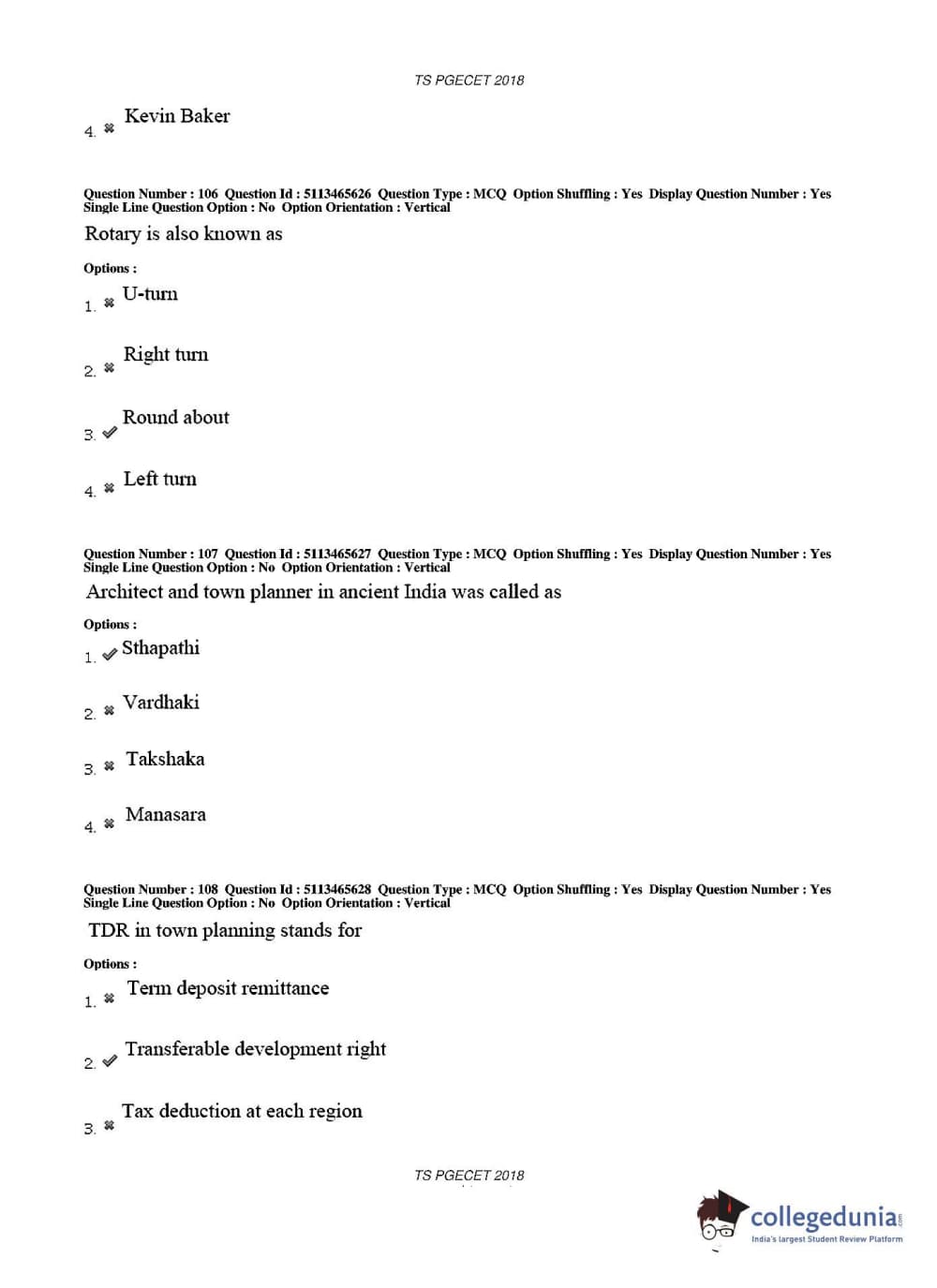 TS PGECET 2018 Architecture and Planning Question Paper with Answer Key PDF for Afternoon Session
