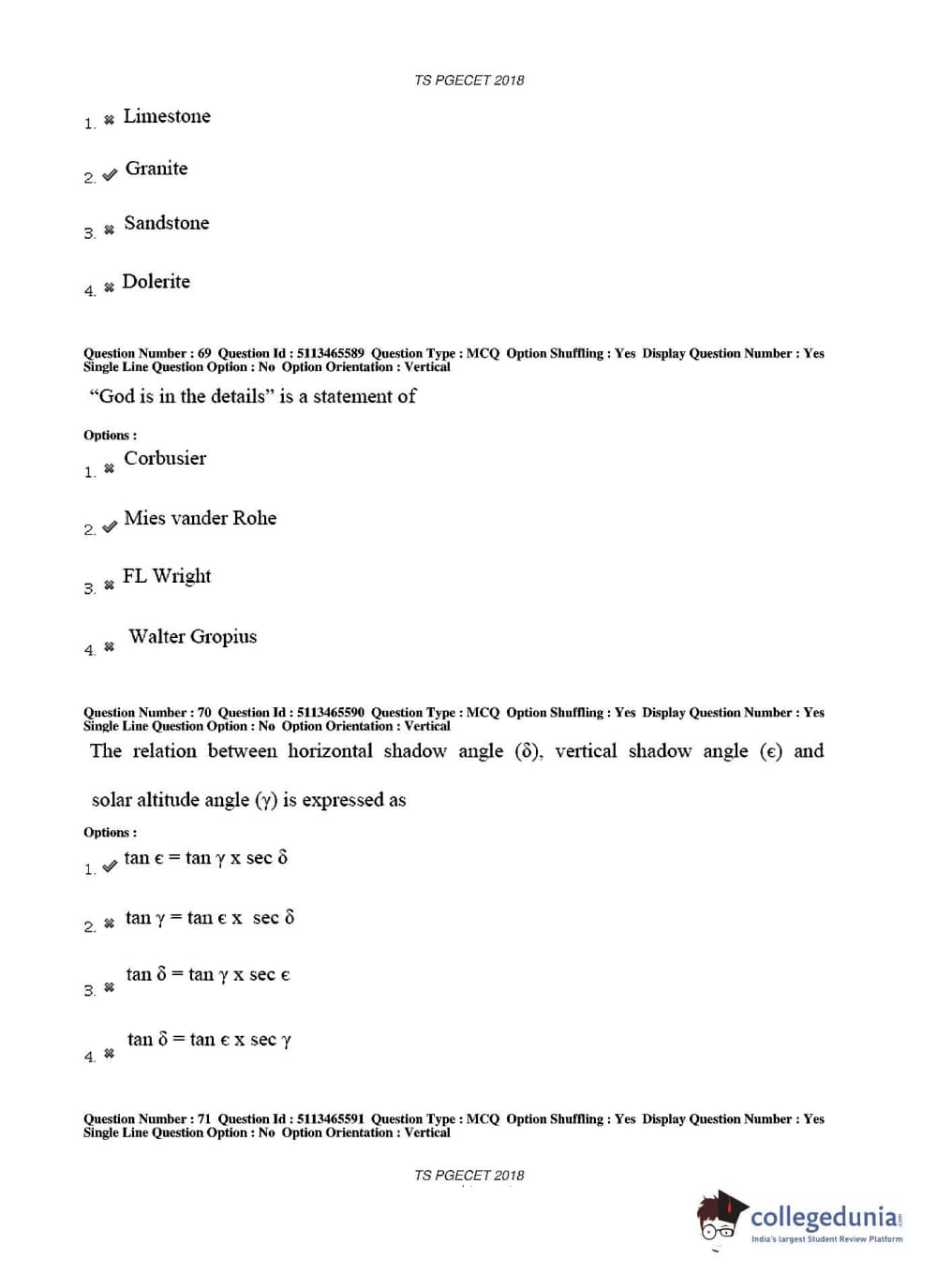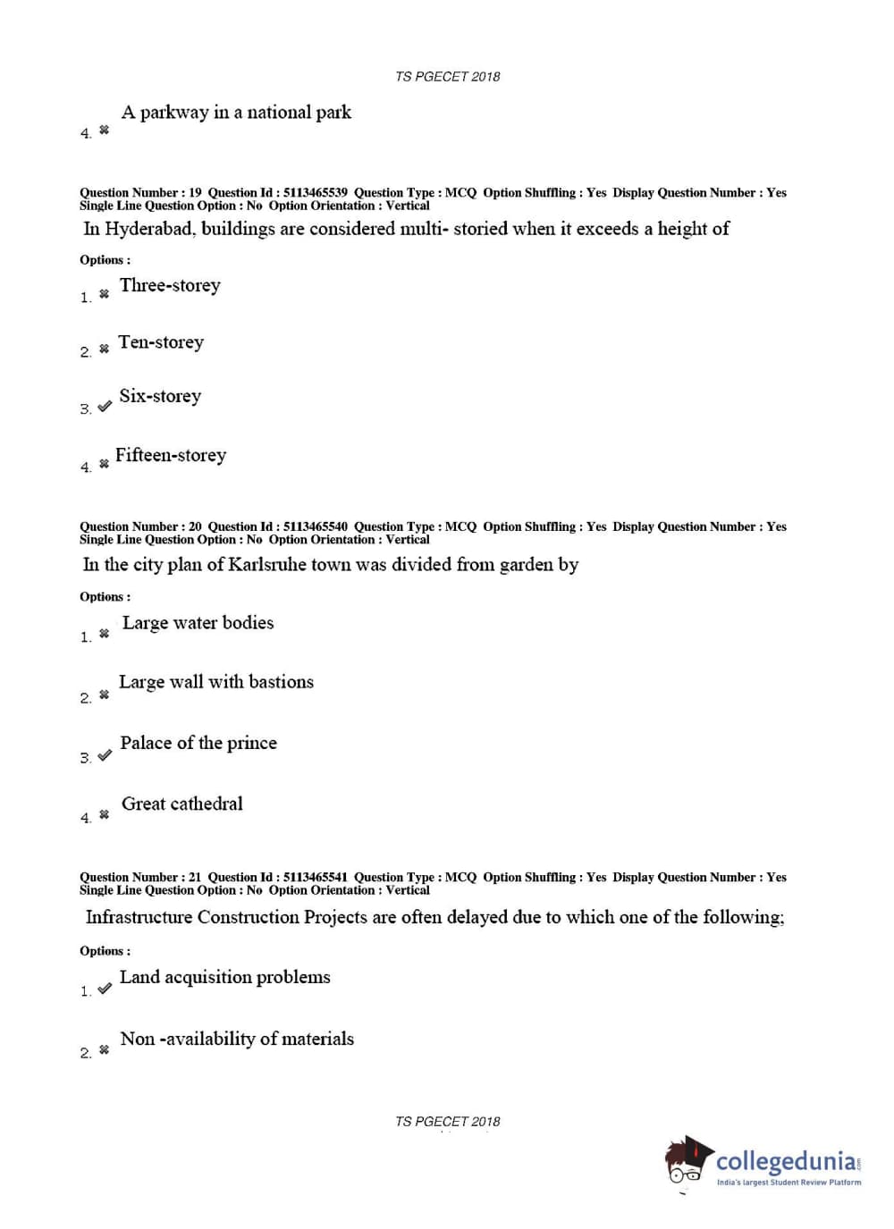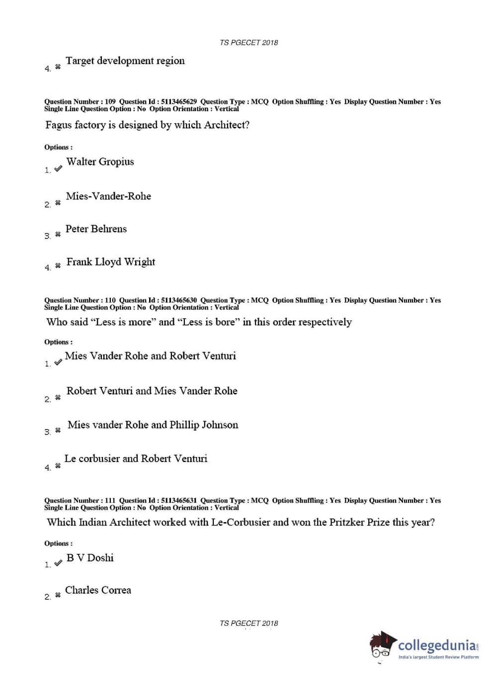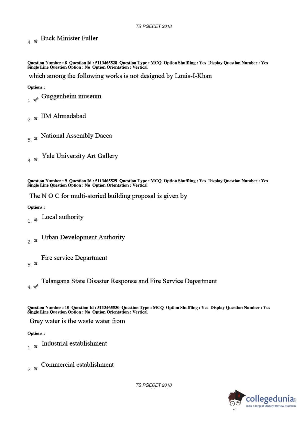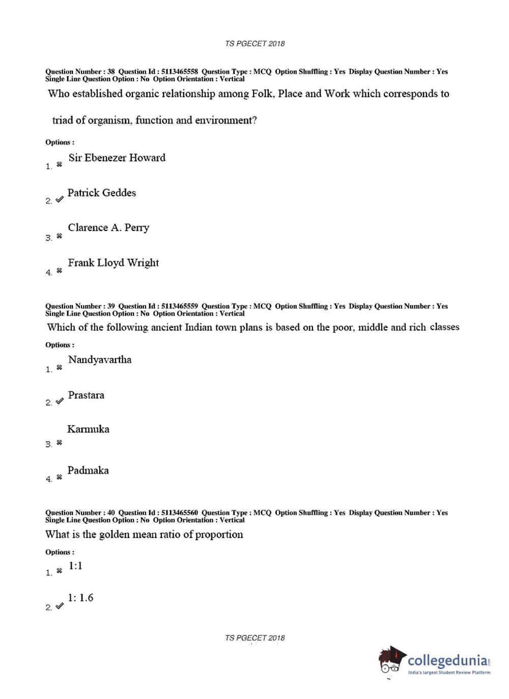 | TS PGECET 2018 Architecture and Planning Question Paper PDF | TS PGECET 2018 Architecture and Planning Answer Key PDF |