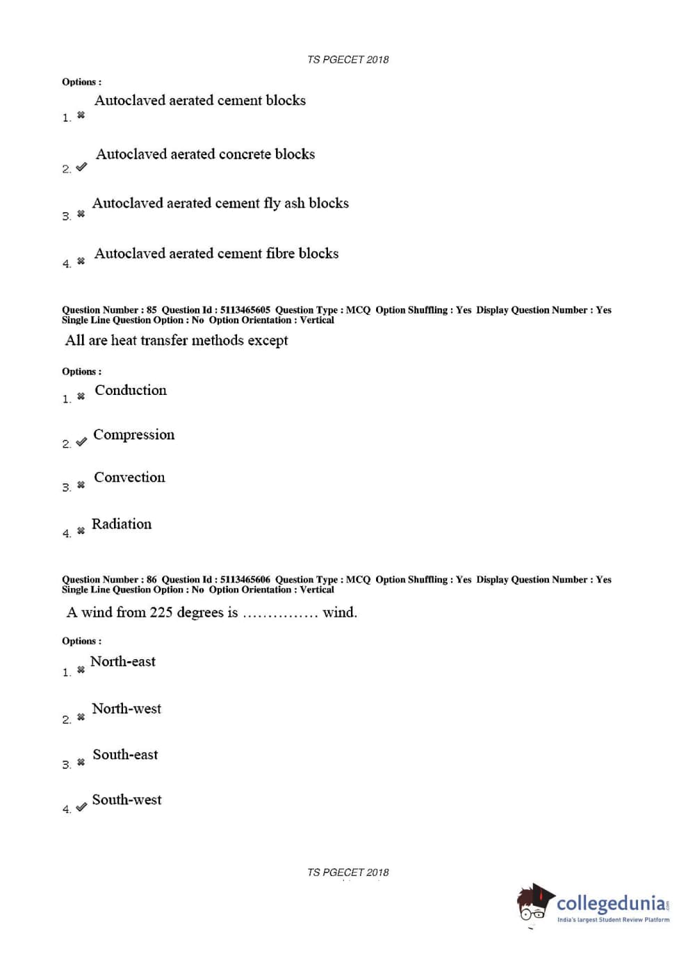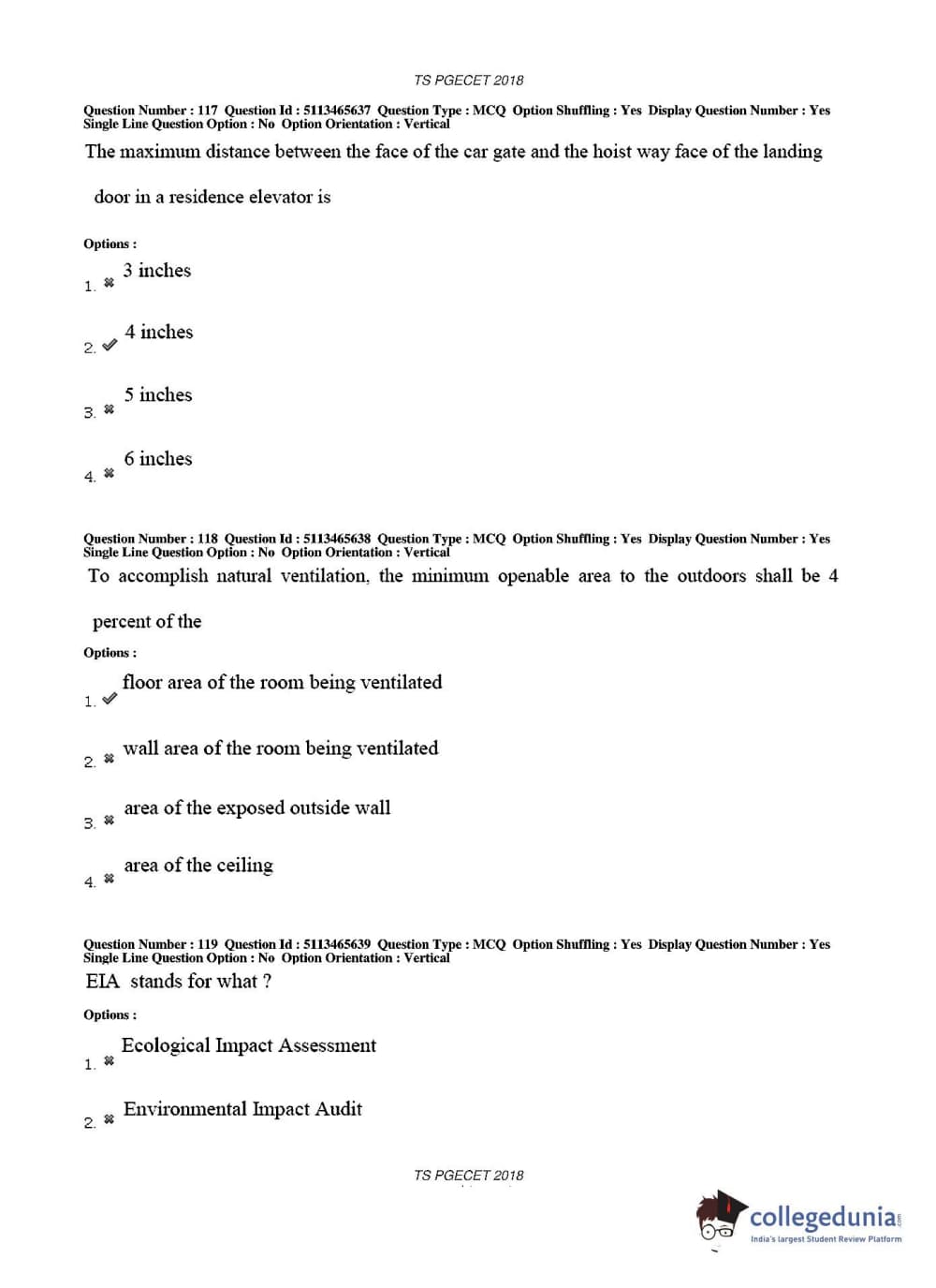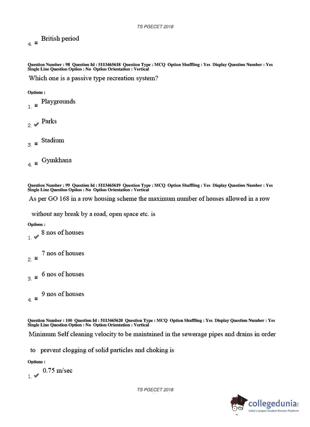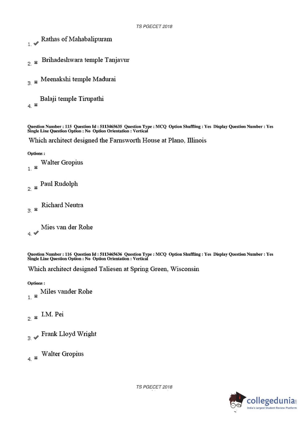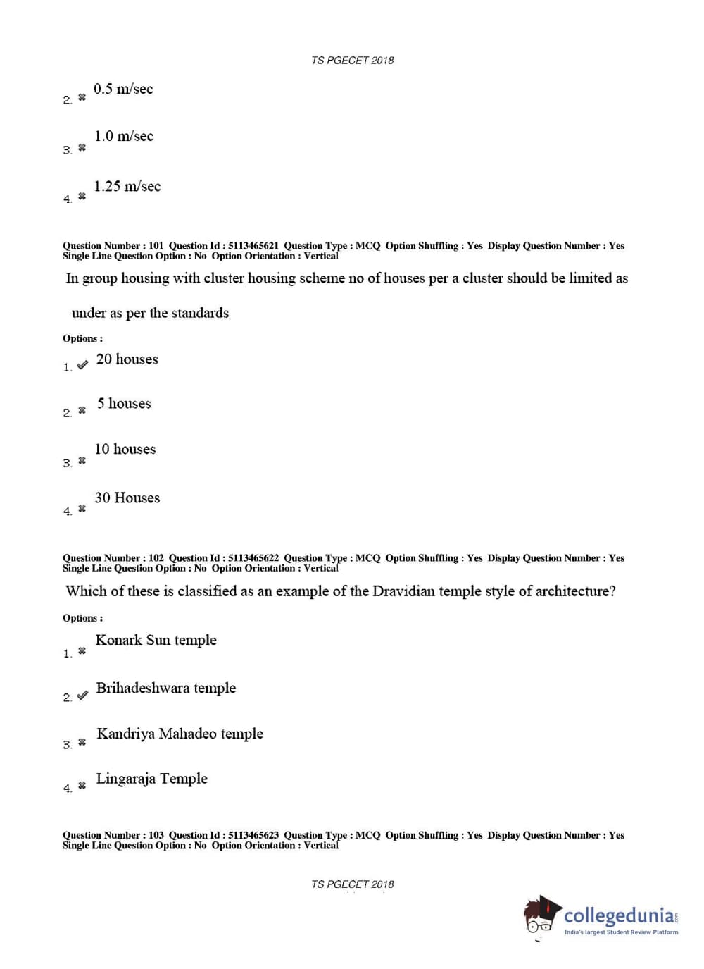 | TS PGECET 2018 Architecture and Planning Question Paper PDF | TS PGECET 2018 Architecture and Planning Answer Key PDF |