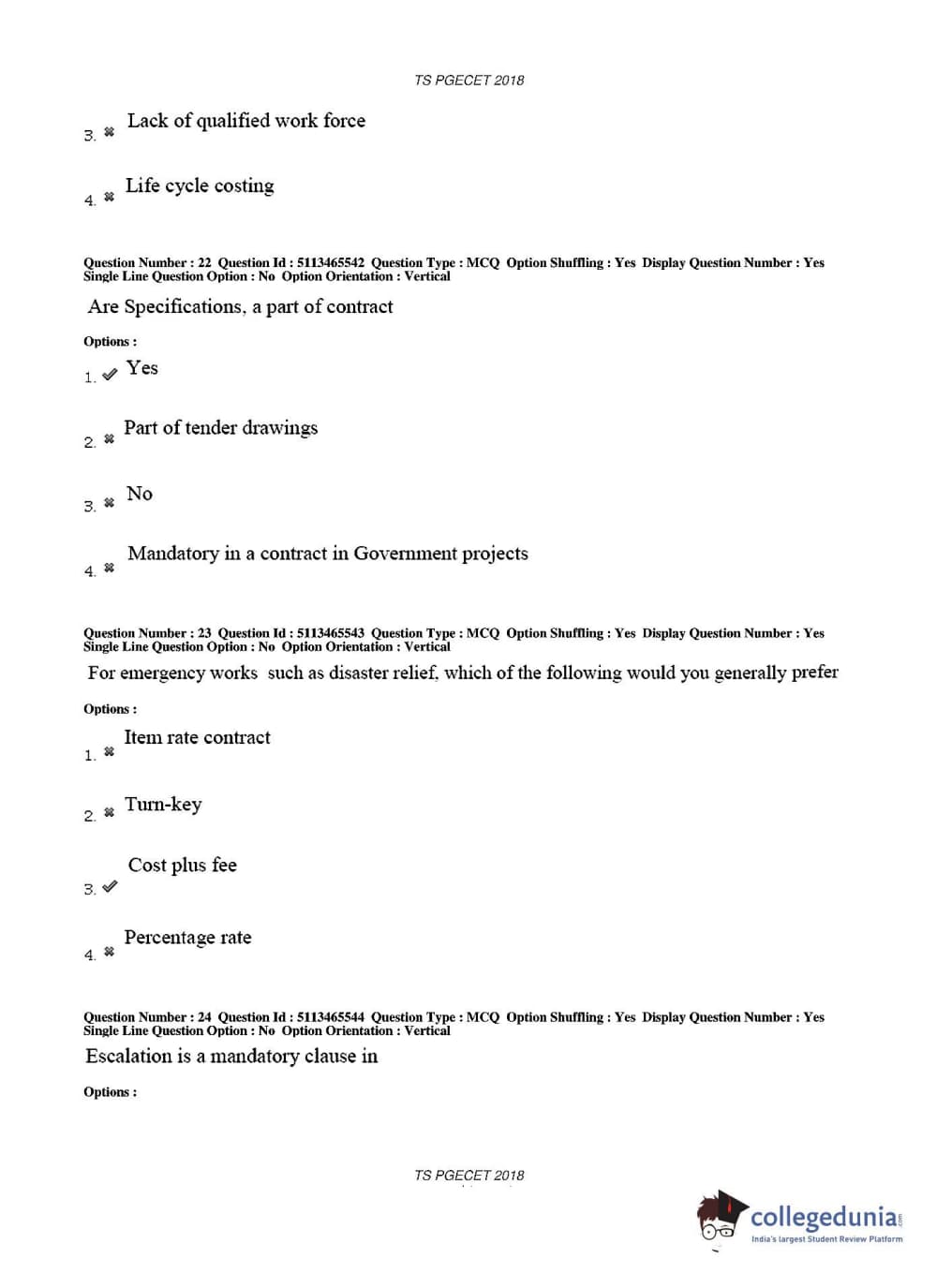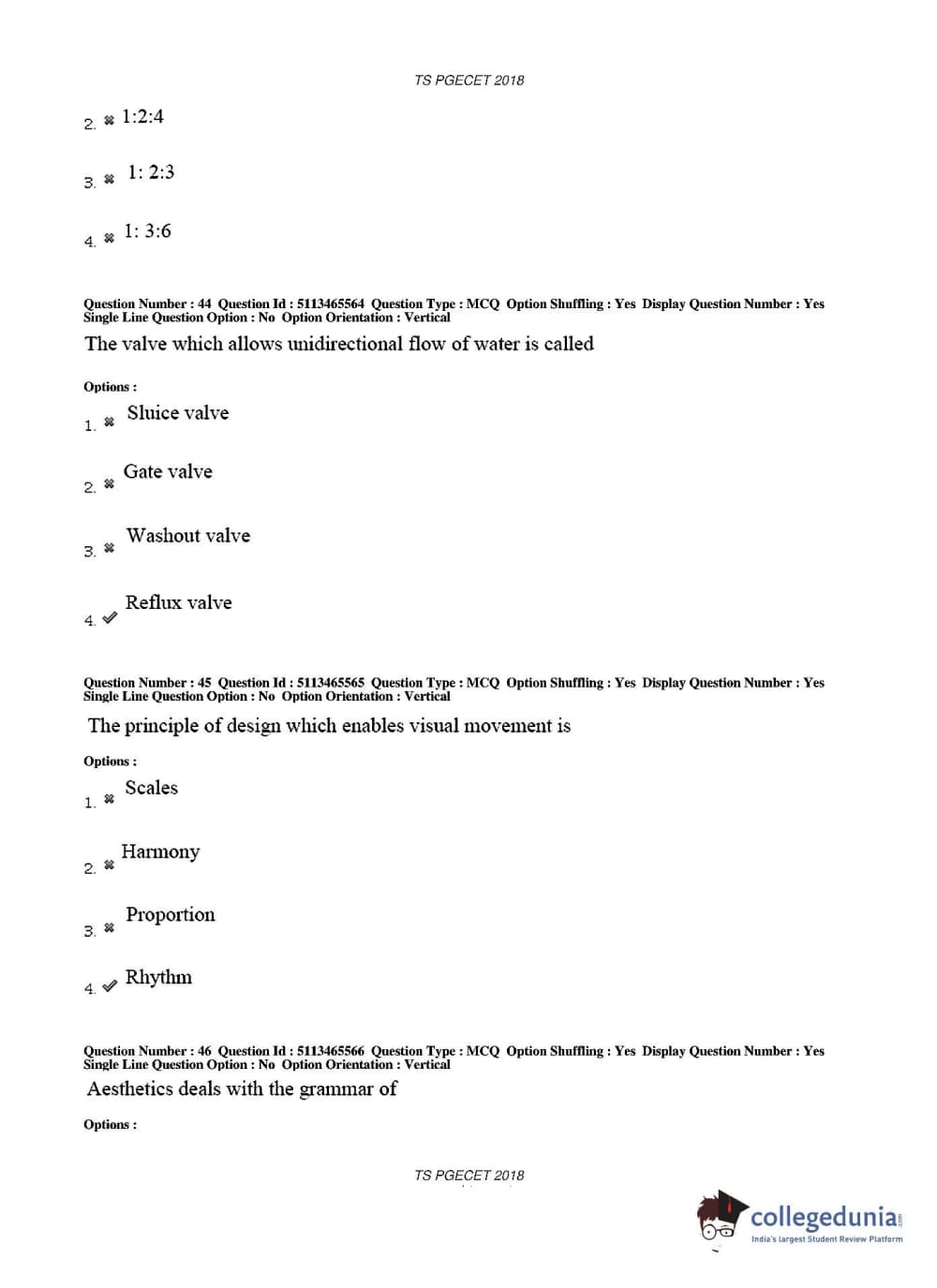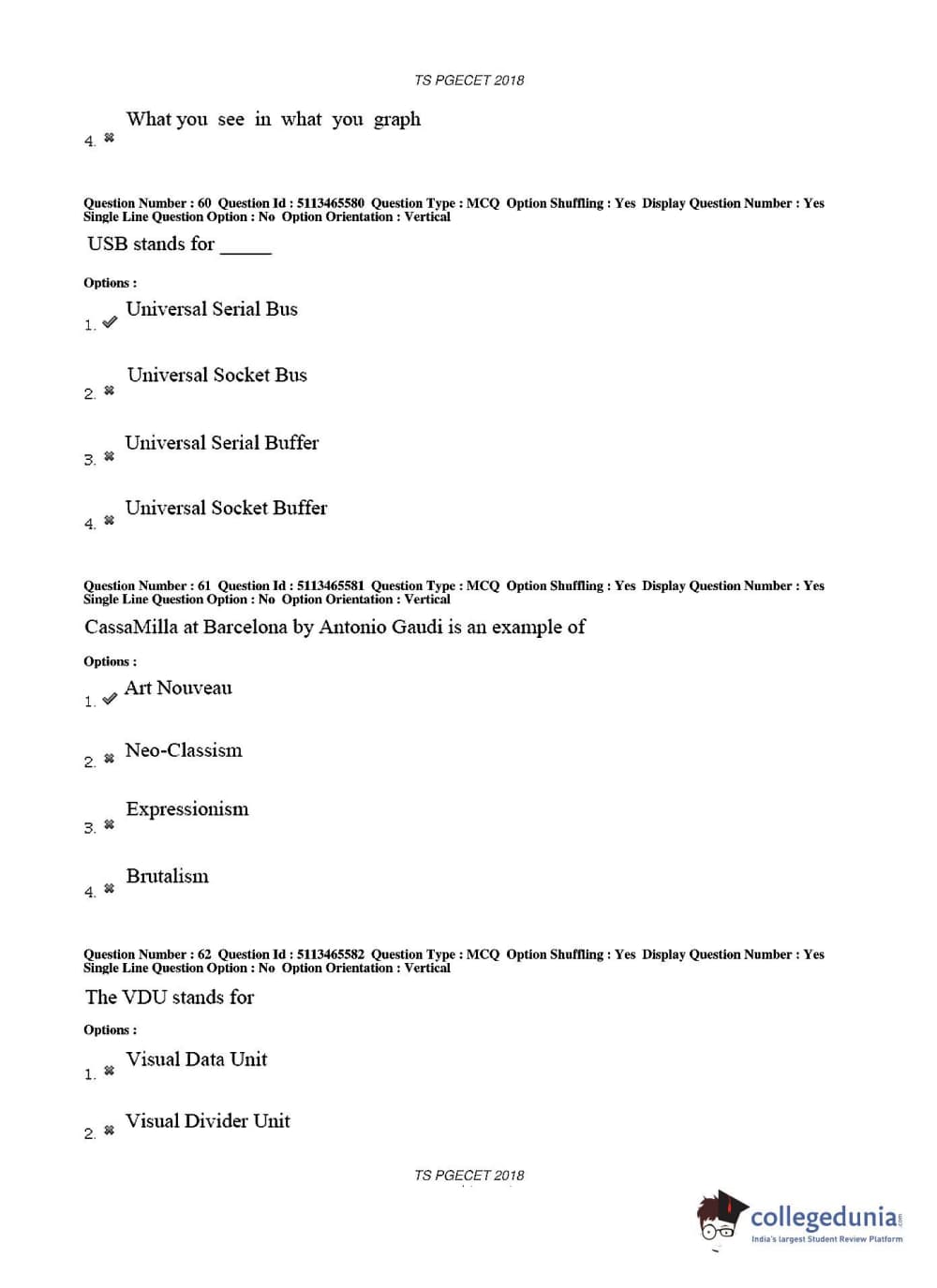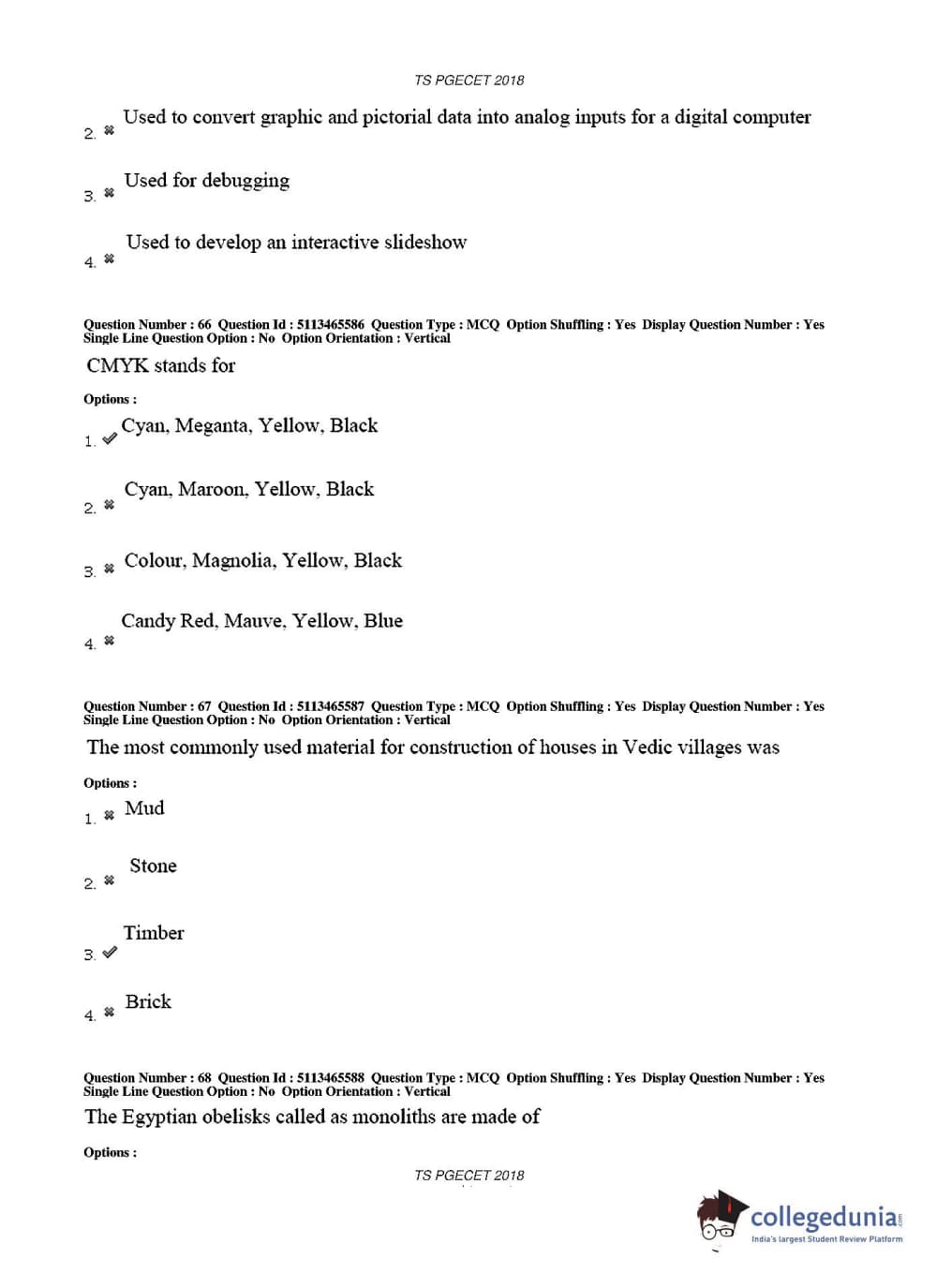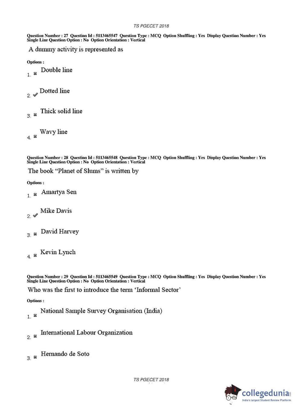 | TS PGECET 2018 Architecture and Planning Question Paper PDF | TS PGECET 2018 Architecture and Planning Answer Key PDF |