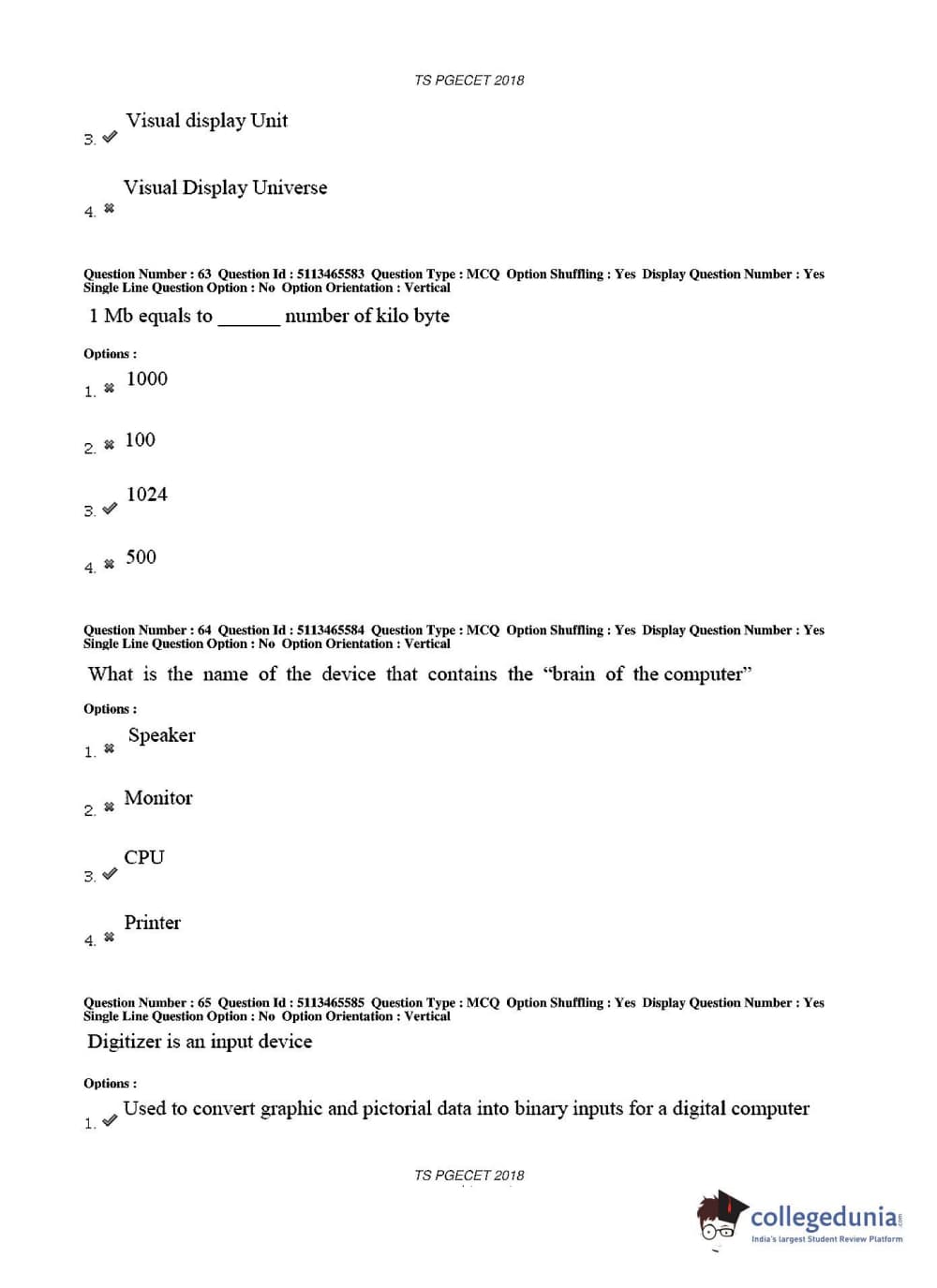 TS PGECET 2018 Architecture and Planning Question paper with answer key pdf conducted on May 28, 2018 in Afternoon Session 2 PM to 4 PM is available for download. The exam was successfully organized by Osmania University. The question paper comprised a total of 120 questions.