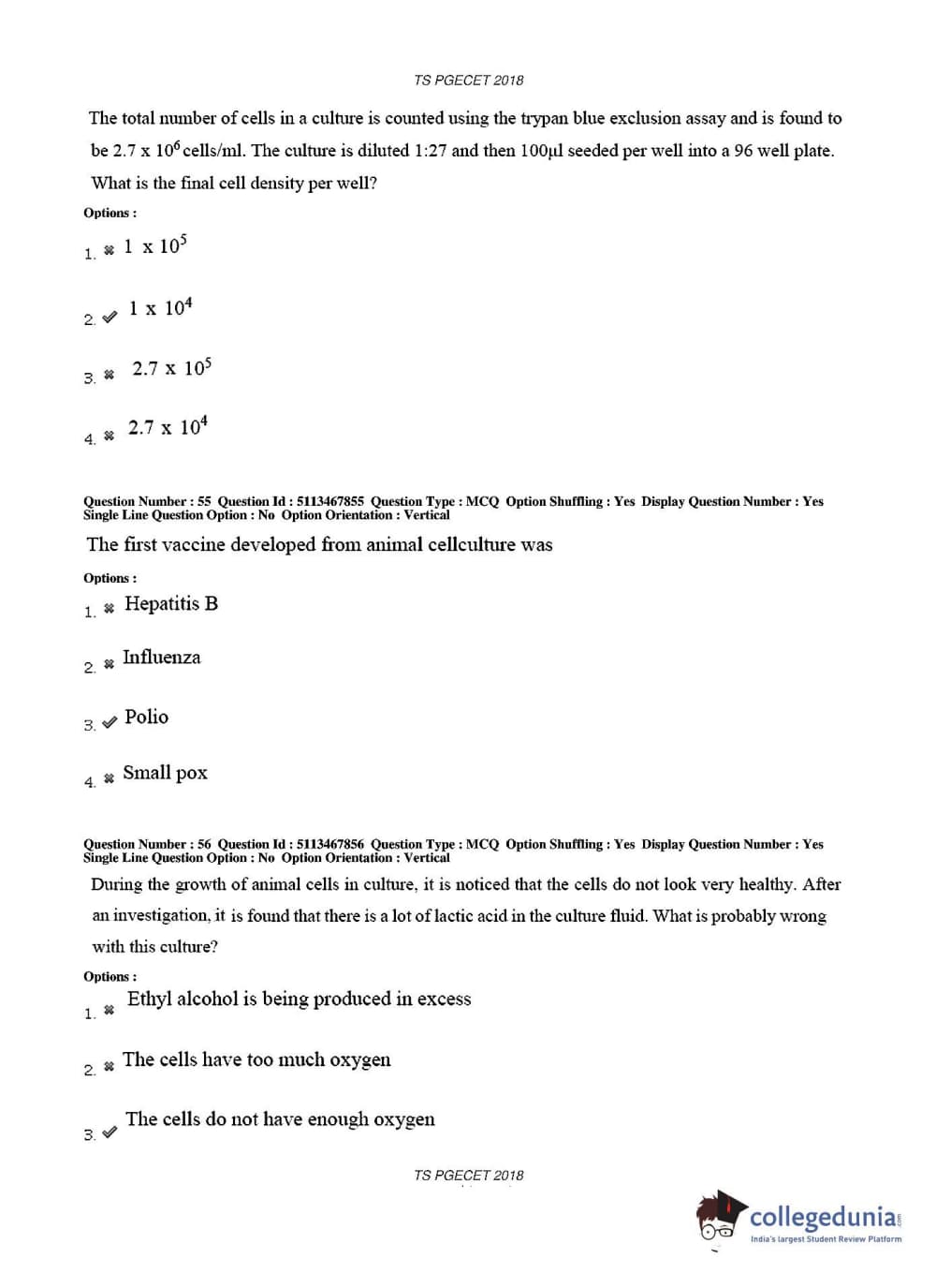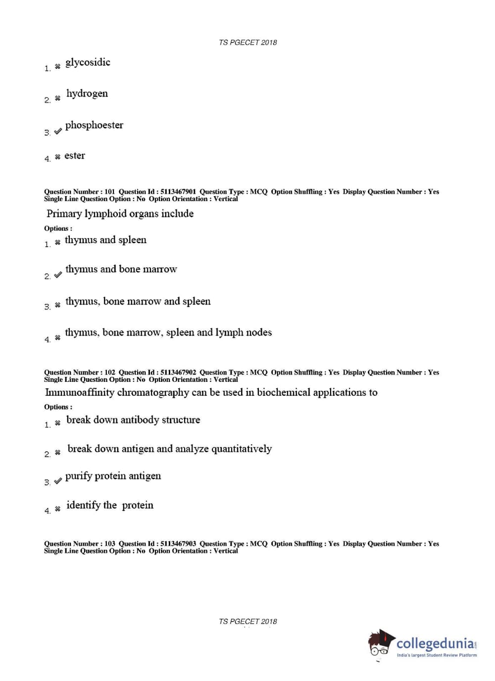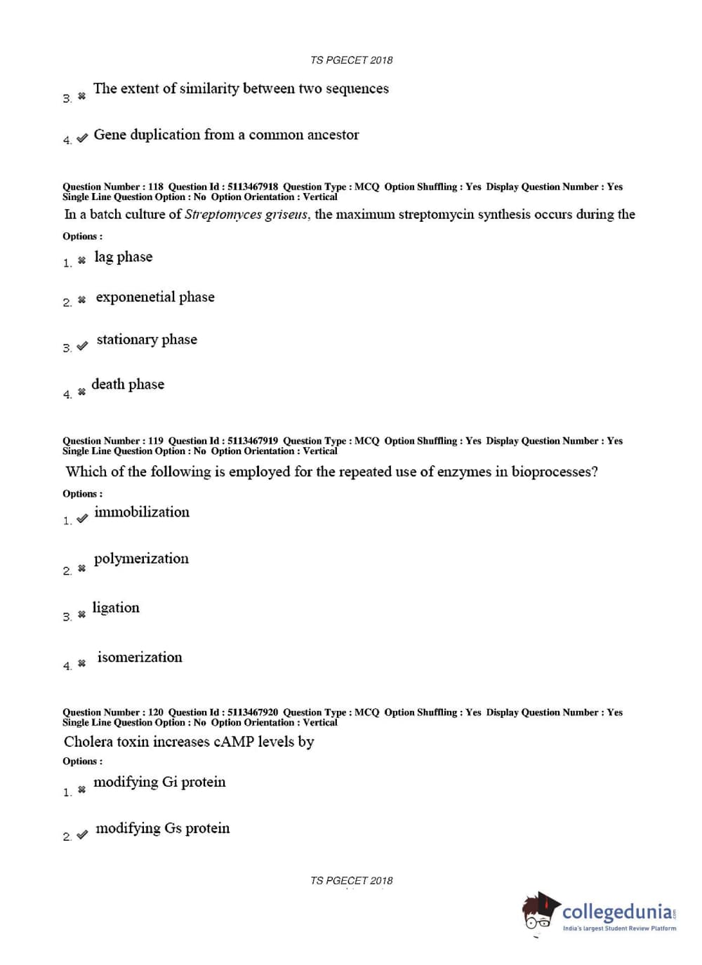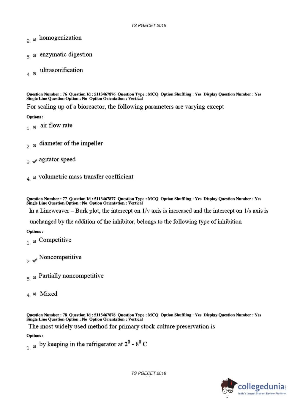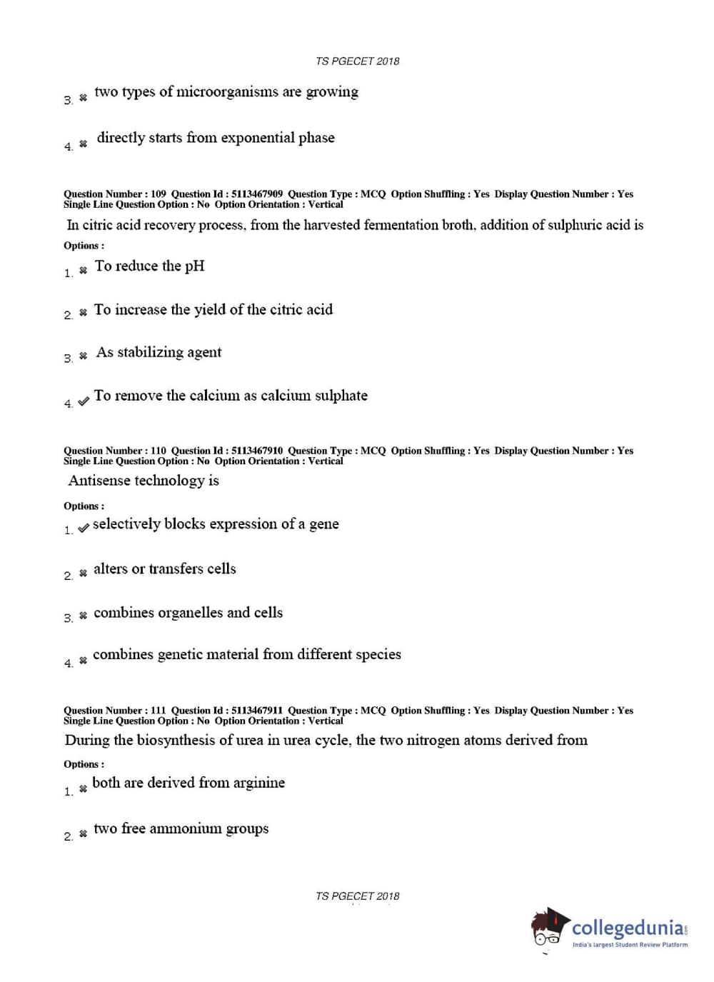 TS PGECET 2018 Biotechnology Question Paper with Answer Key PDFs for Forenoon Session