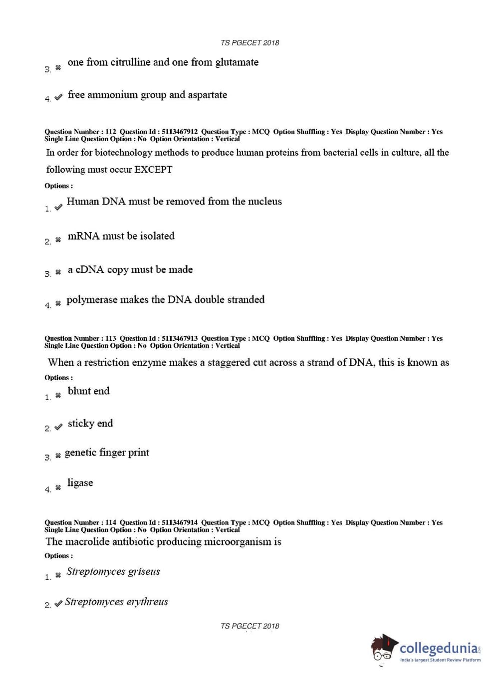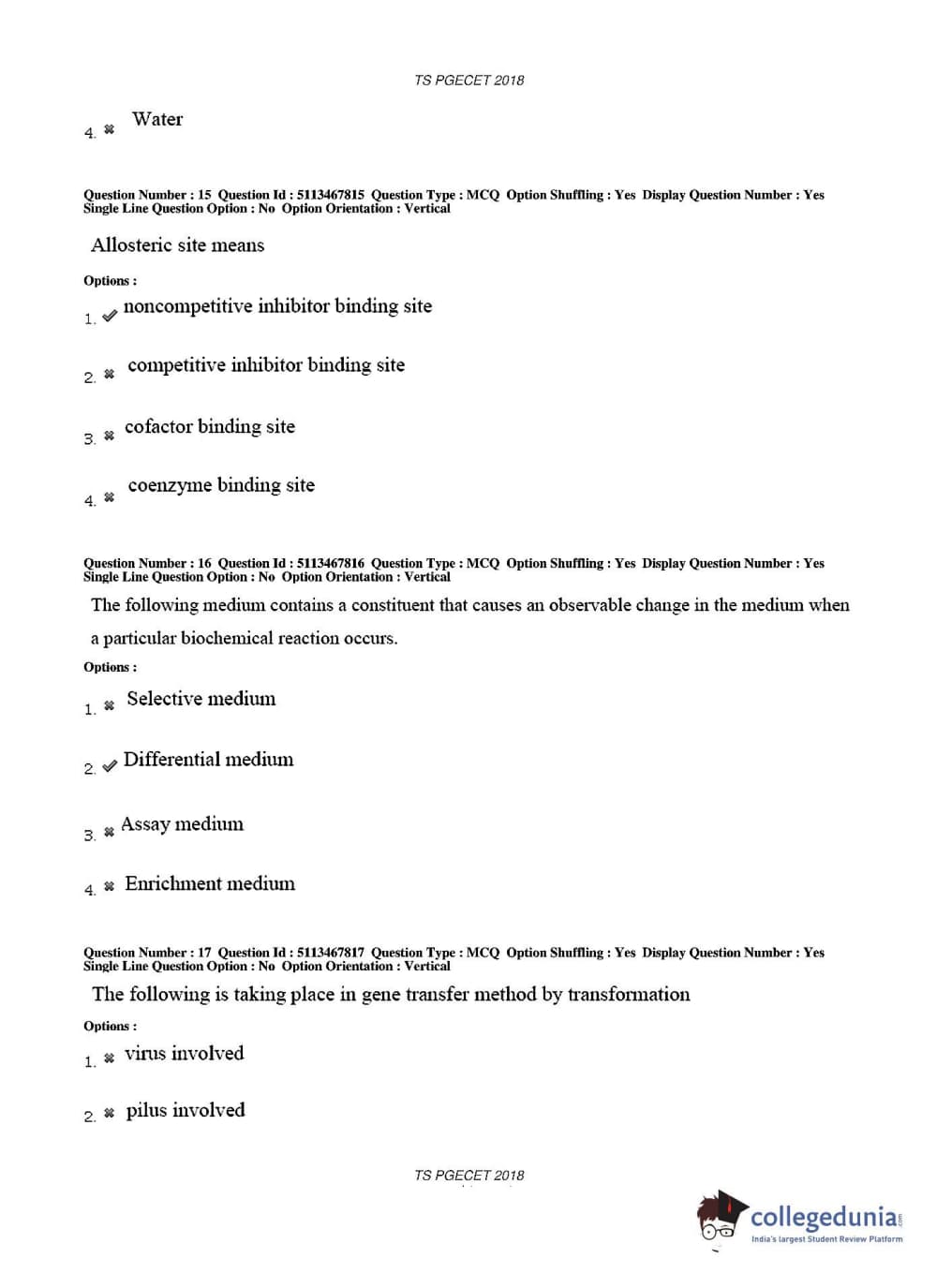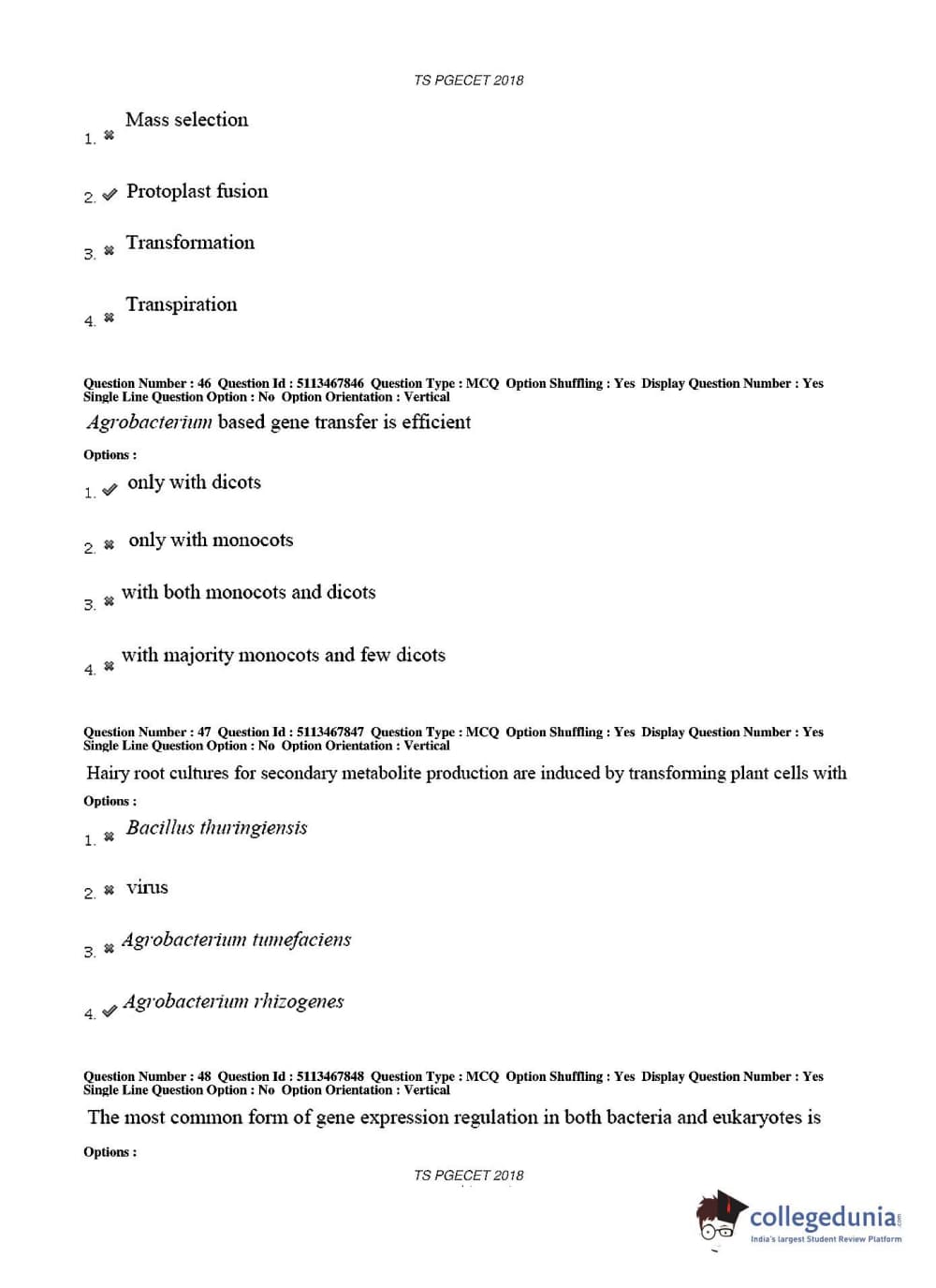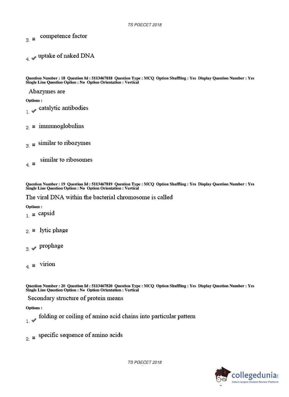 TS PGECET 2018 Biotechnology Question Paper with Answer Key PDFs for Forenoon Session