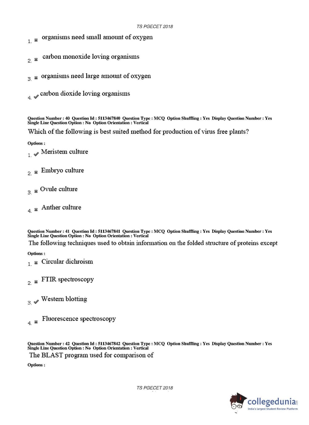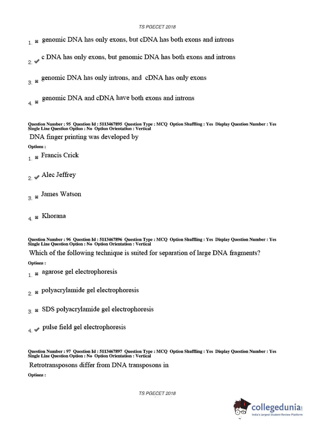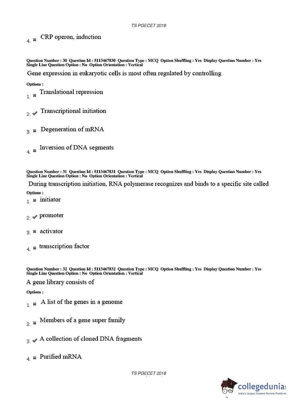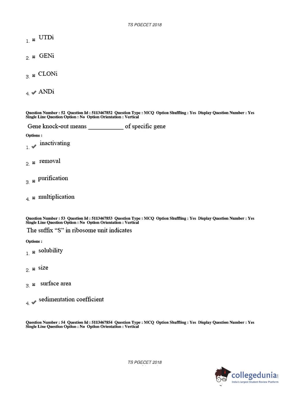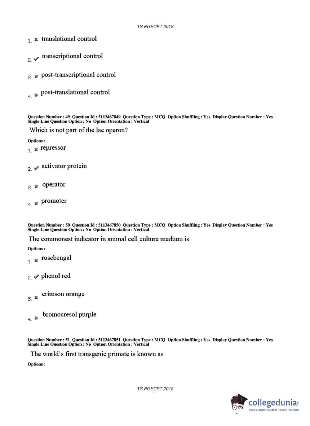TS PGECET 2018 Biotechnology Question Paper with Answer Key PDFs for Forenoon Session